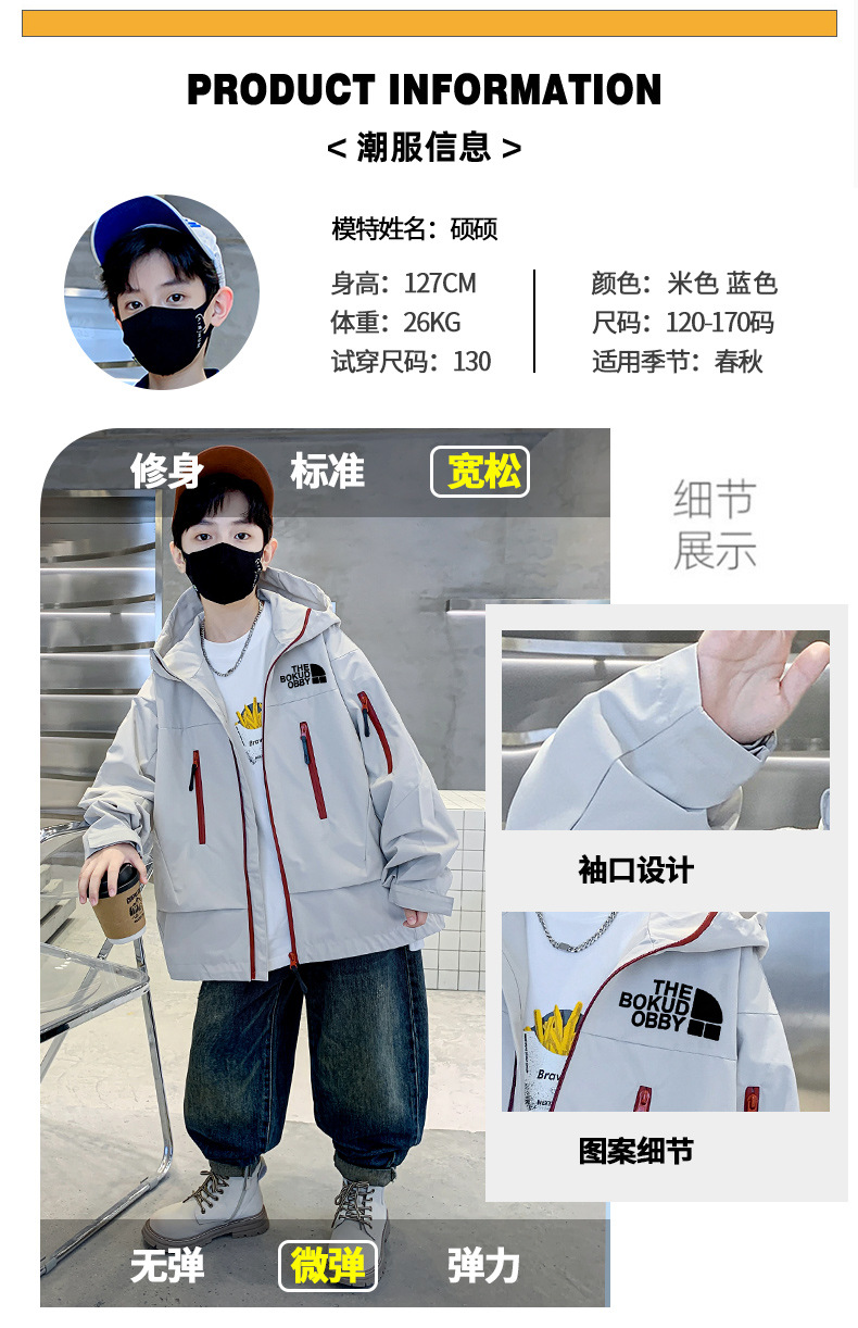 소년 코트 2024 새로운 도착 코트 가을 코트 대형 어린이 코트 야외 가을 후드 코트 재킷 봄과 가을스토어 가기