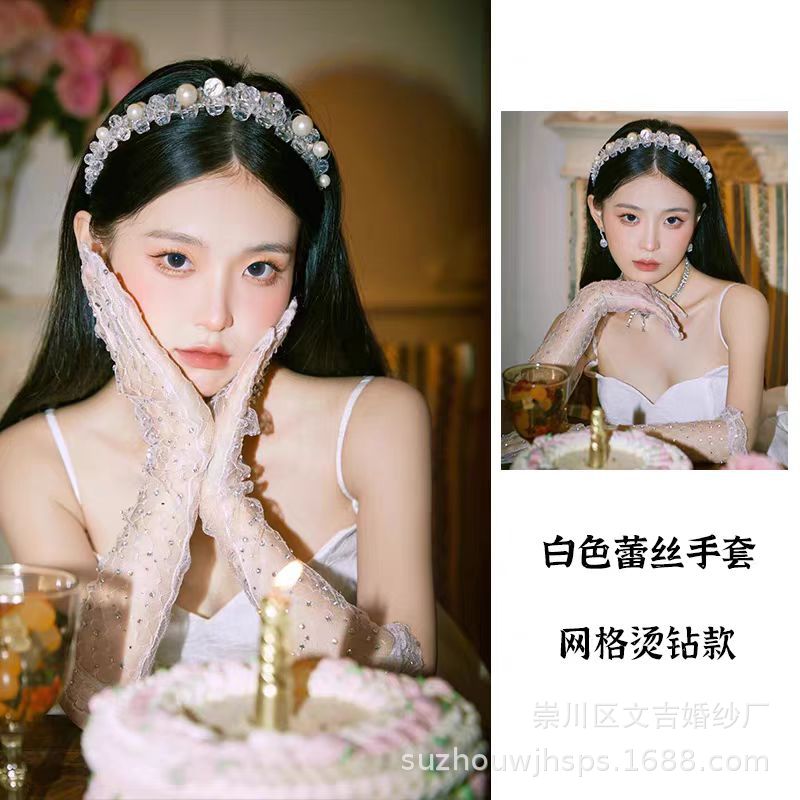 어린이 원피스 레이스 장갑 루스 뮤직 박스 공주 생일 라인석 꽃 어린이 공연 사진 장갑 거품 단어