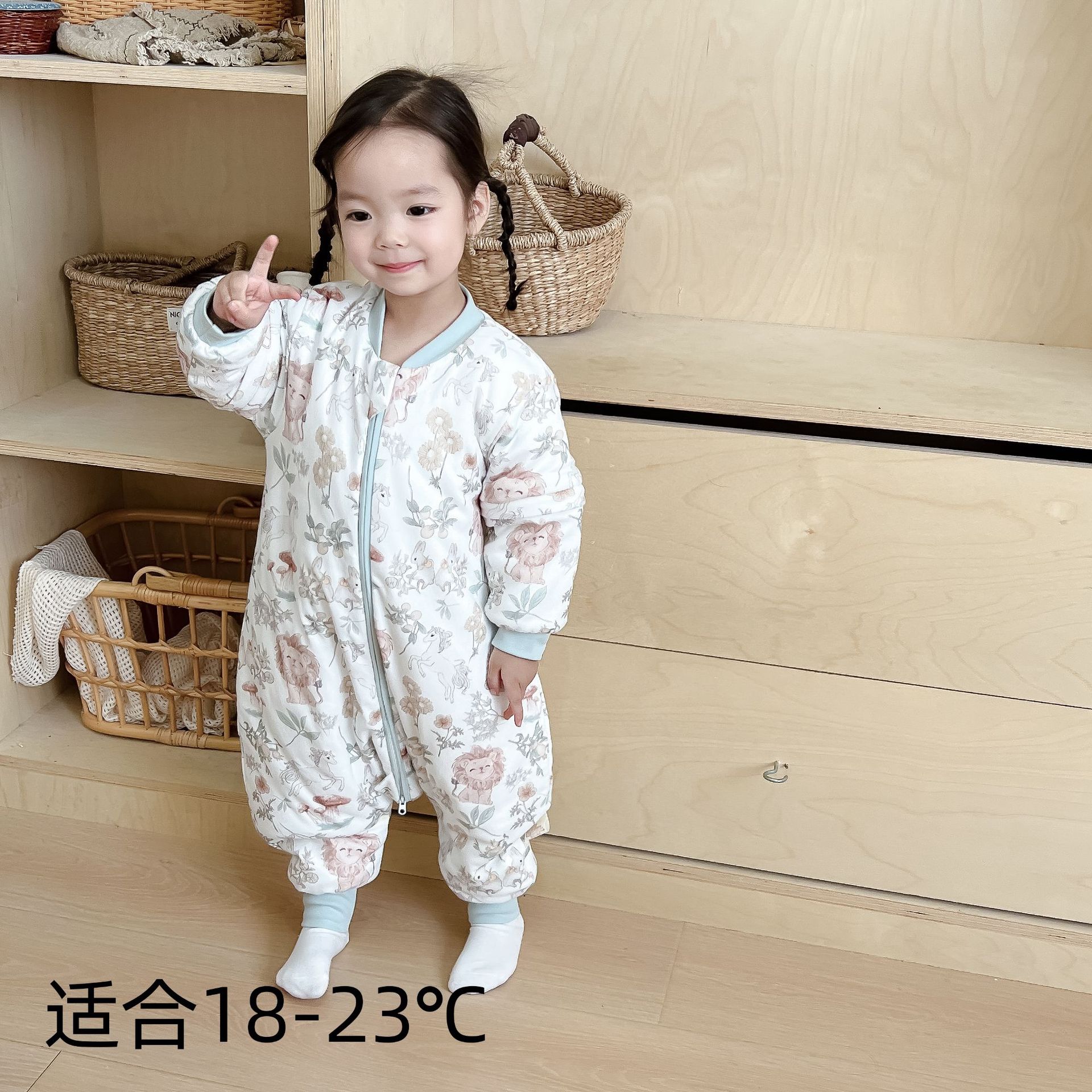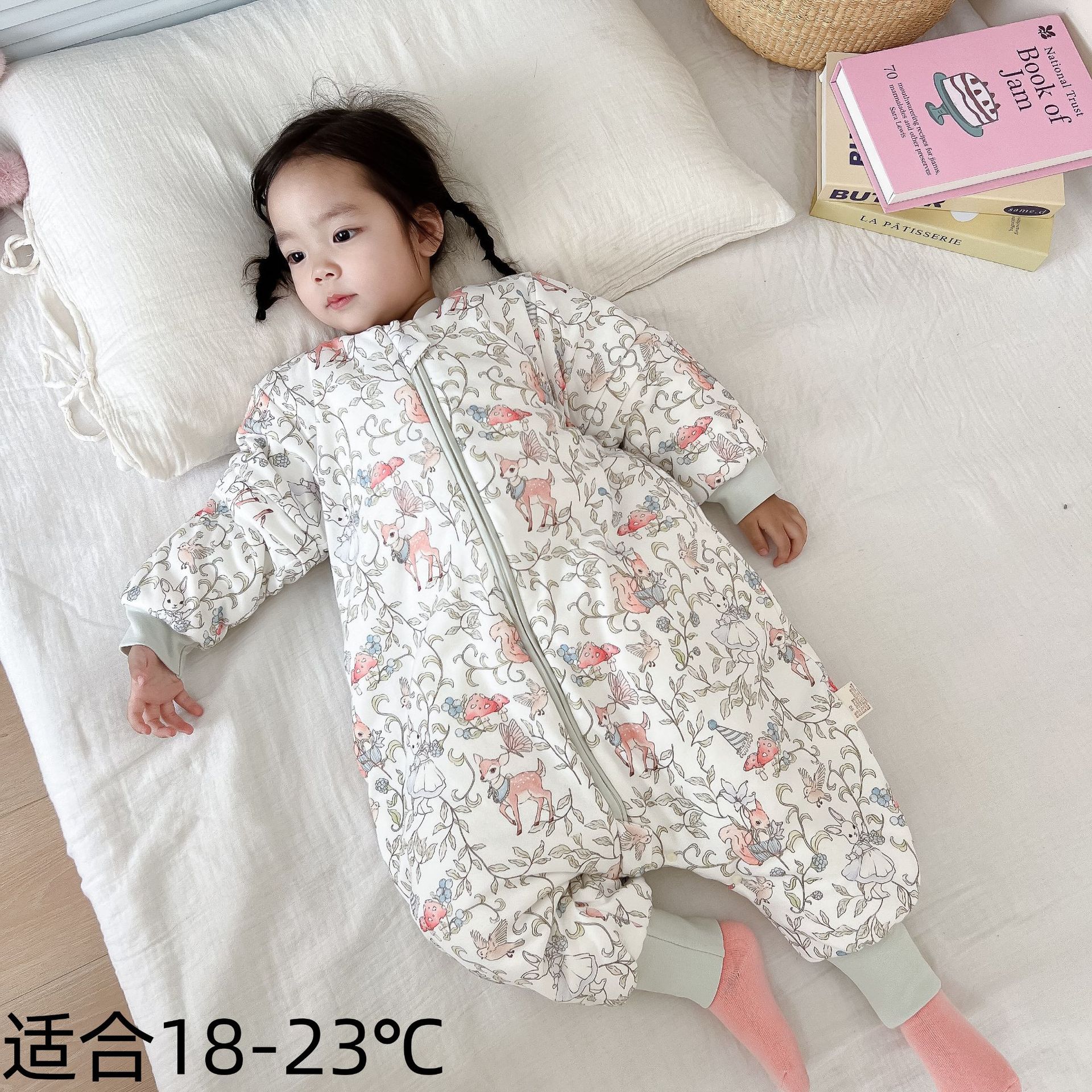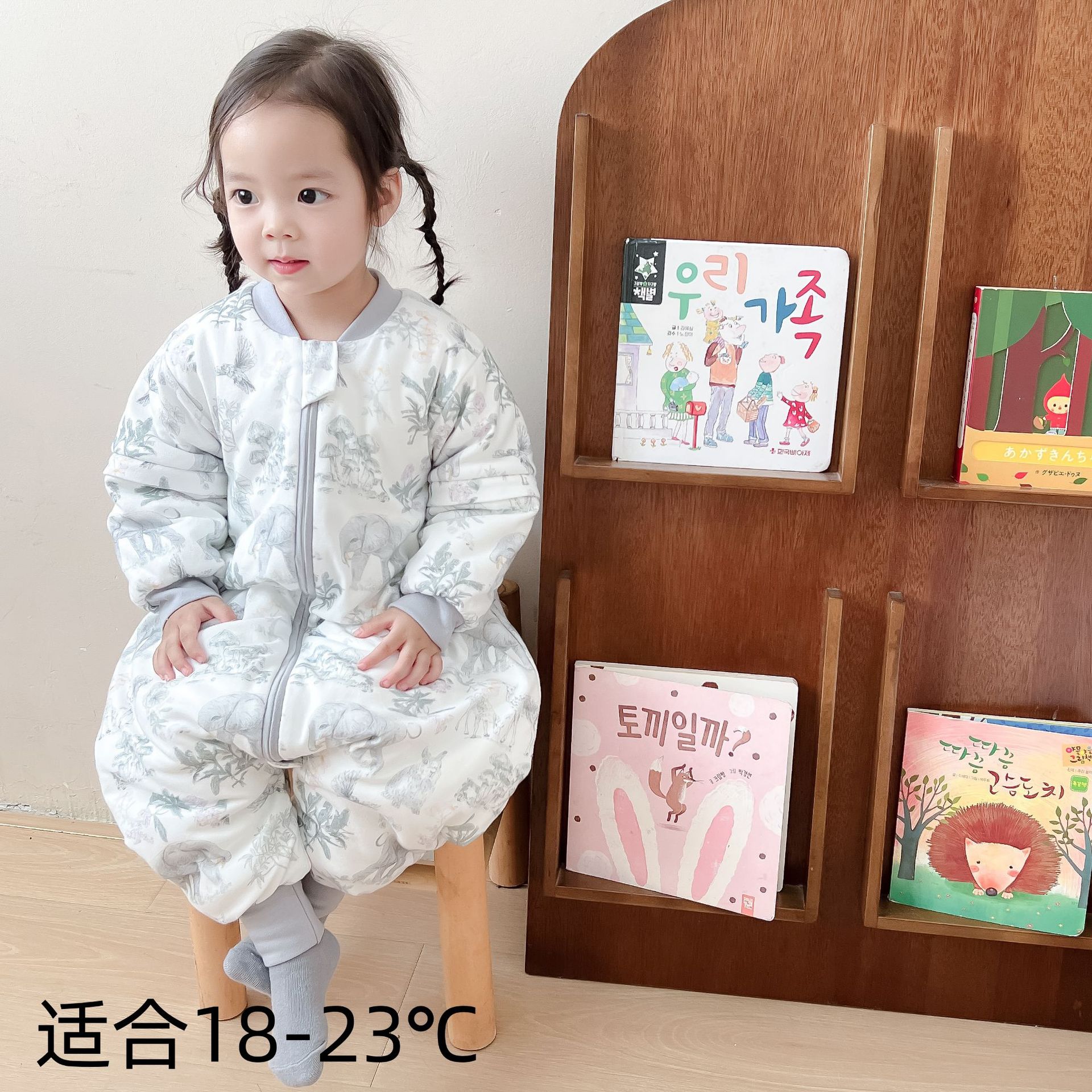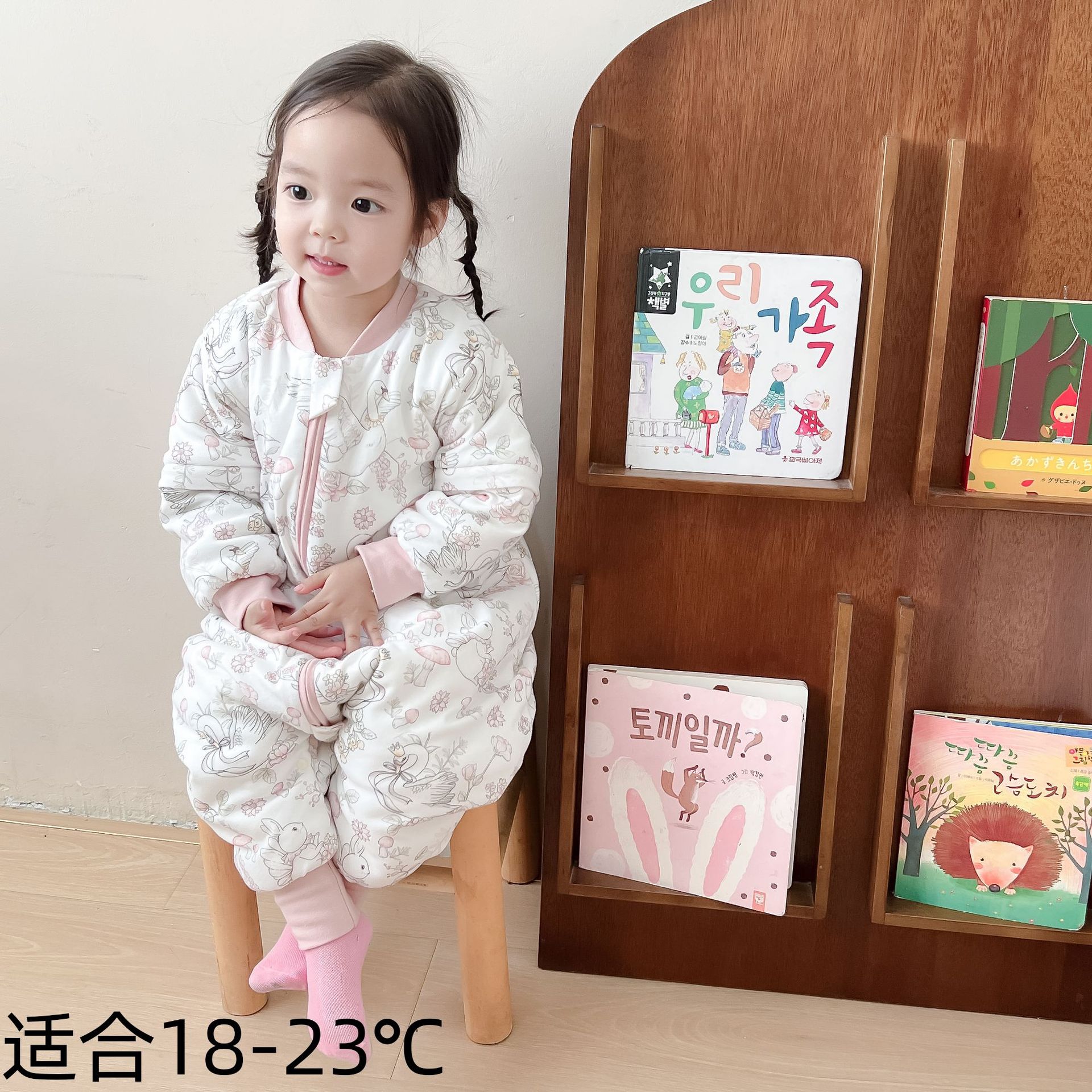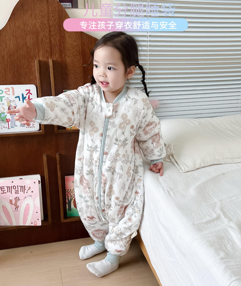 어린이 가을 슬리핑 백 퓨어 코튼 클래스 반쯤 열린 다리 클립 코튼 패딩 크리퍼 슬리핑 백 분리 가능한 슬리브 킥 방지 퀼트 소년 소녀를위한스토어 가기