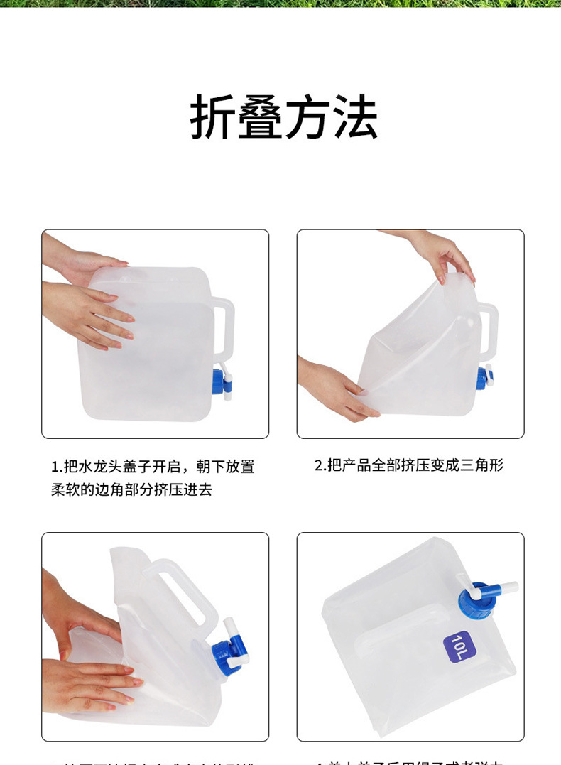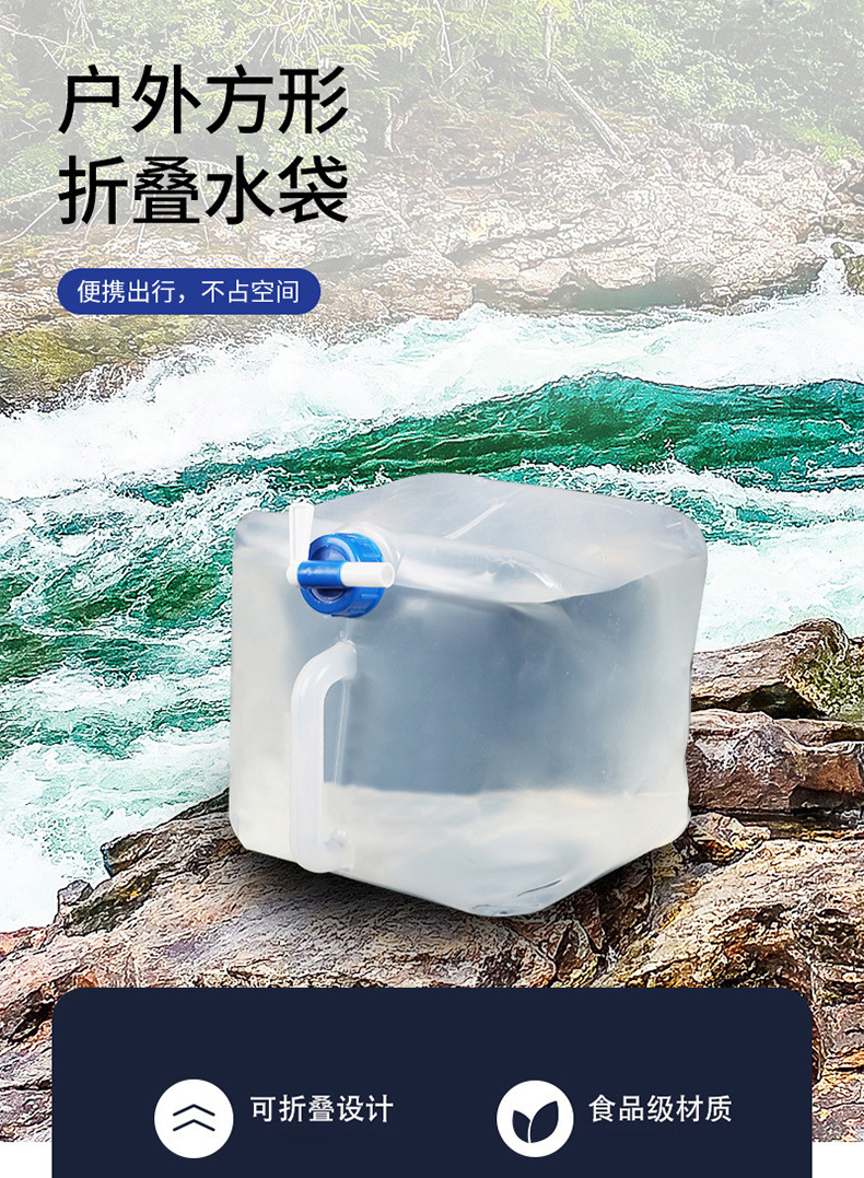 두꺼운 식품 등급 야외 등급 접이식 특수 물 저장 가방 휴대용 자동차 대용량 투명 플라스틱 물 저장 가방스토어 가기