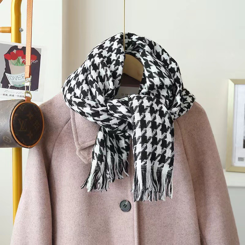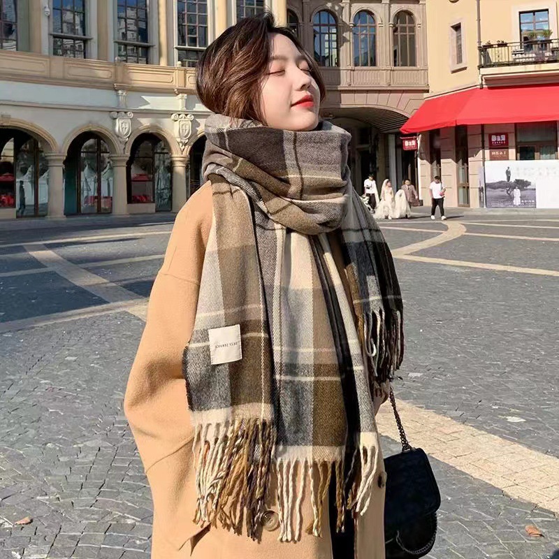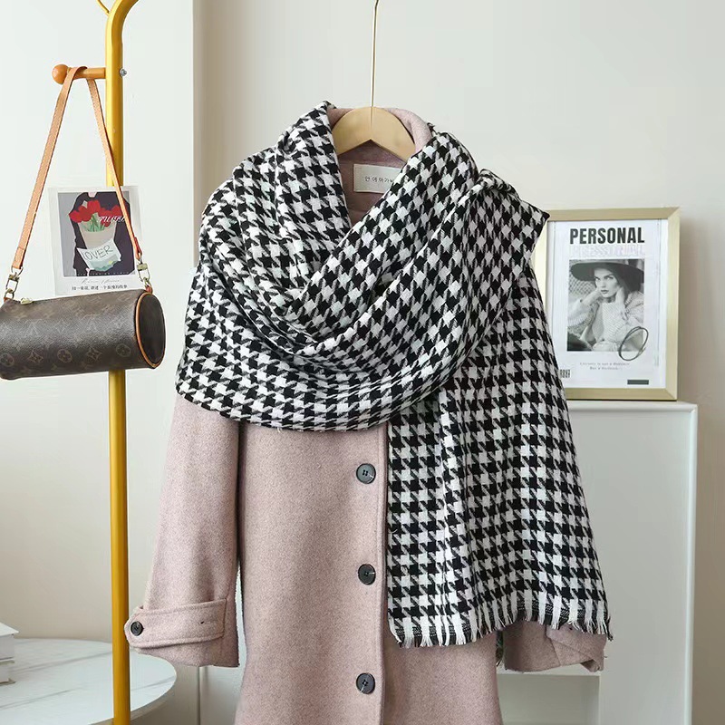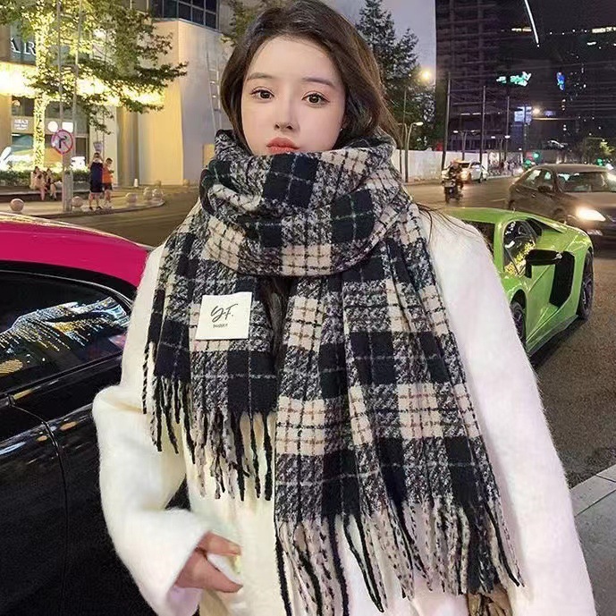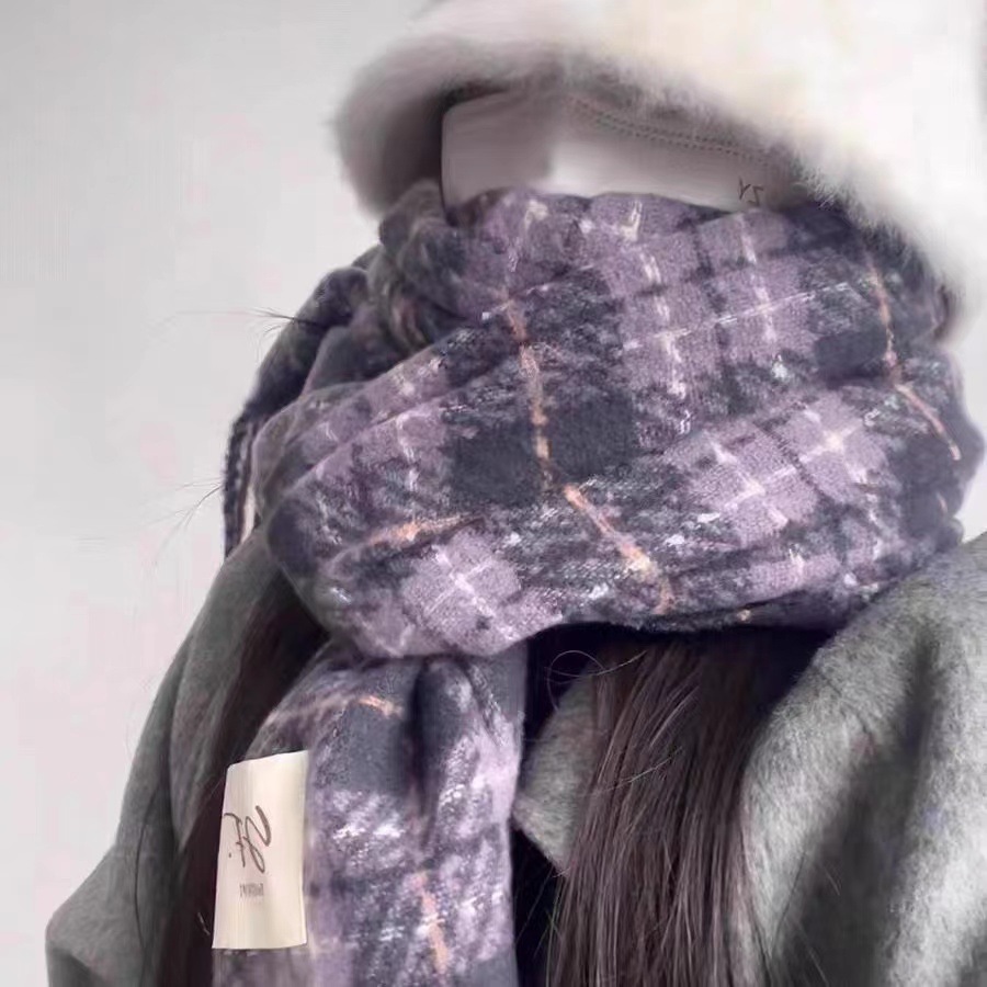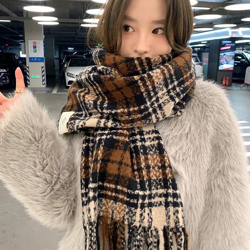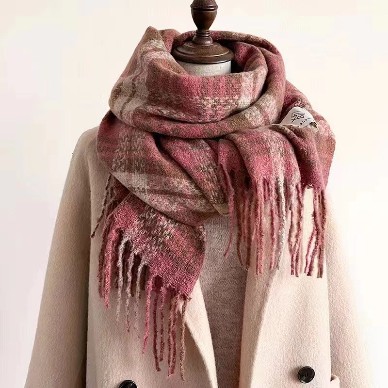 새로운 격자 모양의 두꺼운 여성의 한국 스타일 분위기 따뜻한 드라이 로즈 파우더 가을과 겨울 화이트 부드러운 술 목도리 스카프스토어 가기