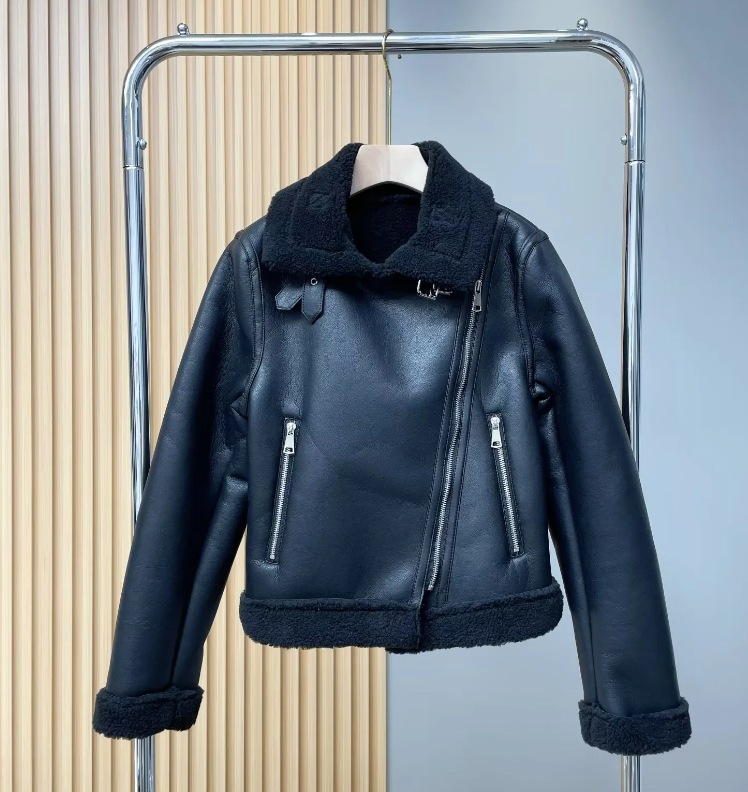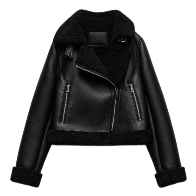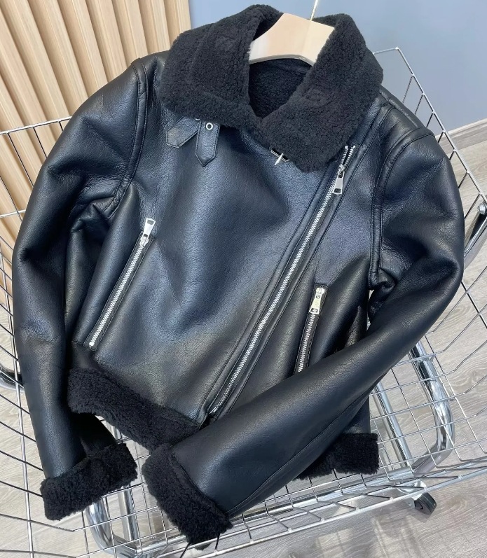 국경 AliExpress 인기 여성 의류 ZR 스팟 블랙 따뜻한 모피 원피스 양면 PU 모조 가죽 자켓 여성용스토어 가기