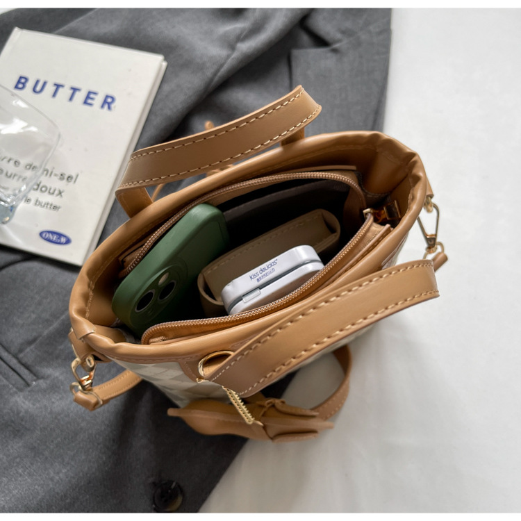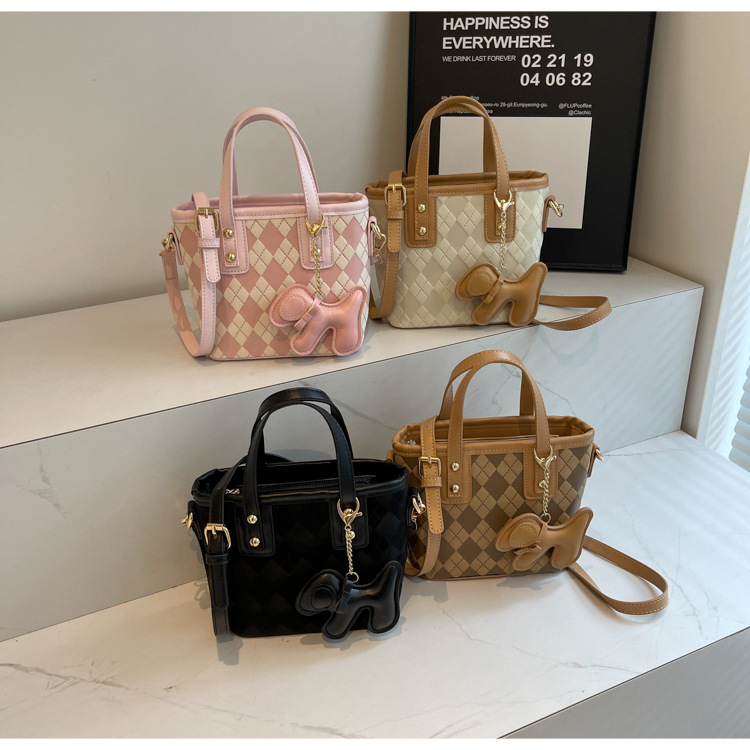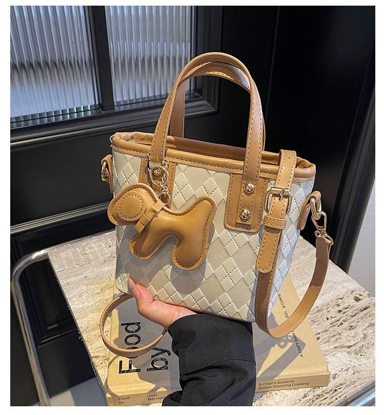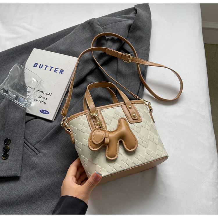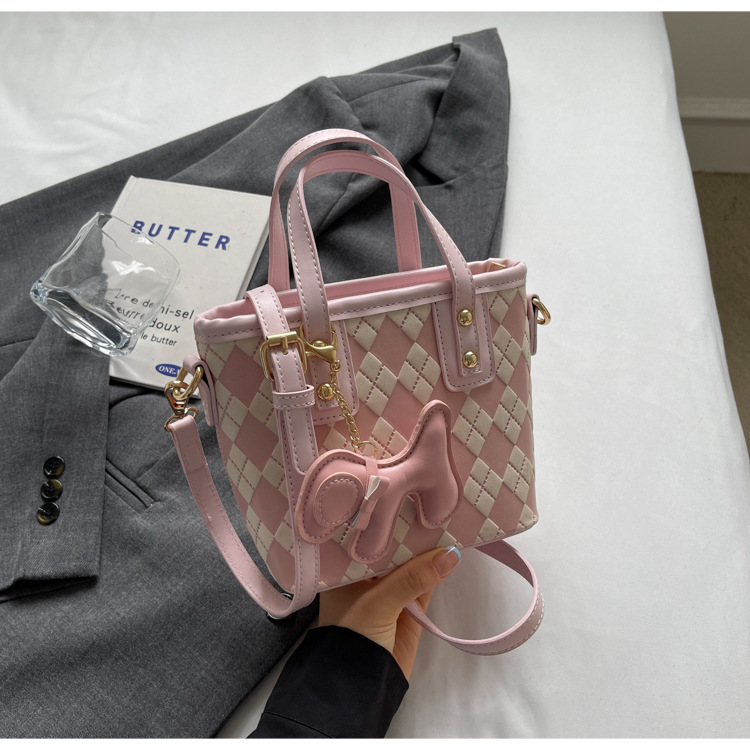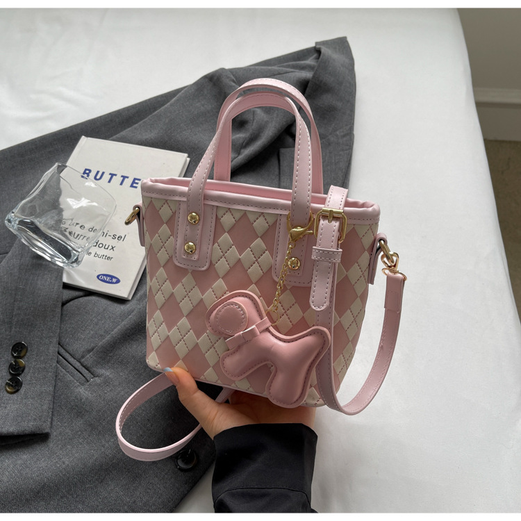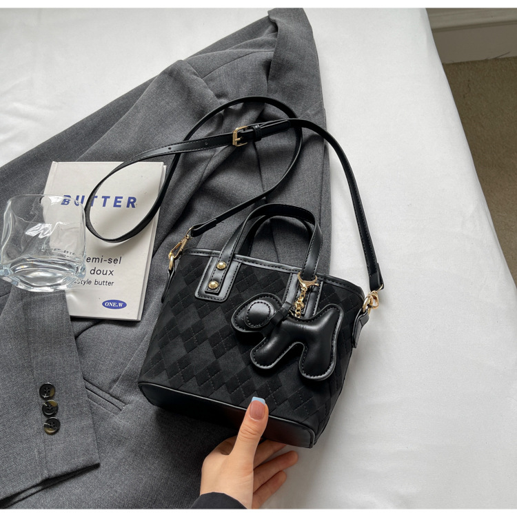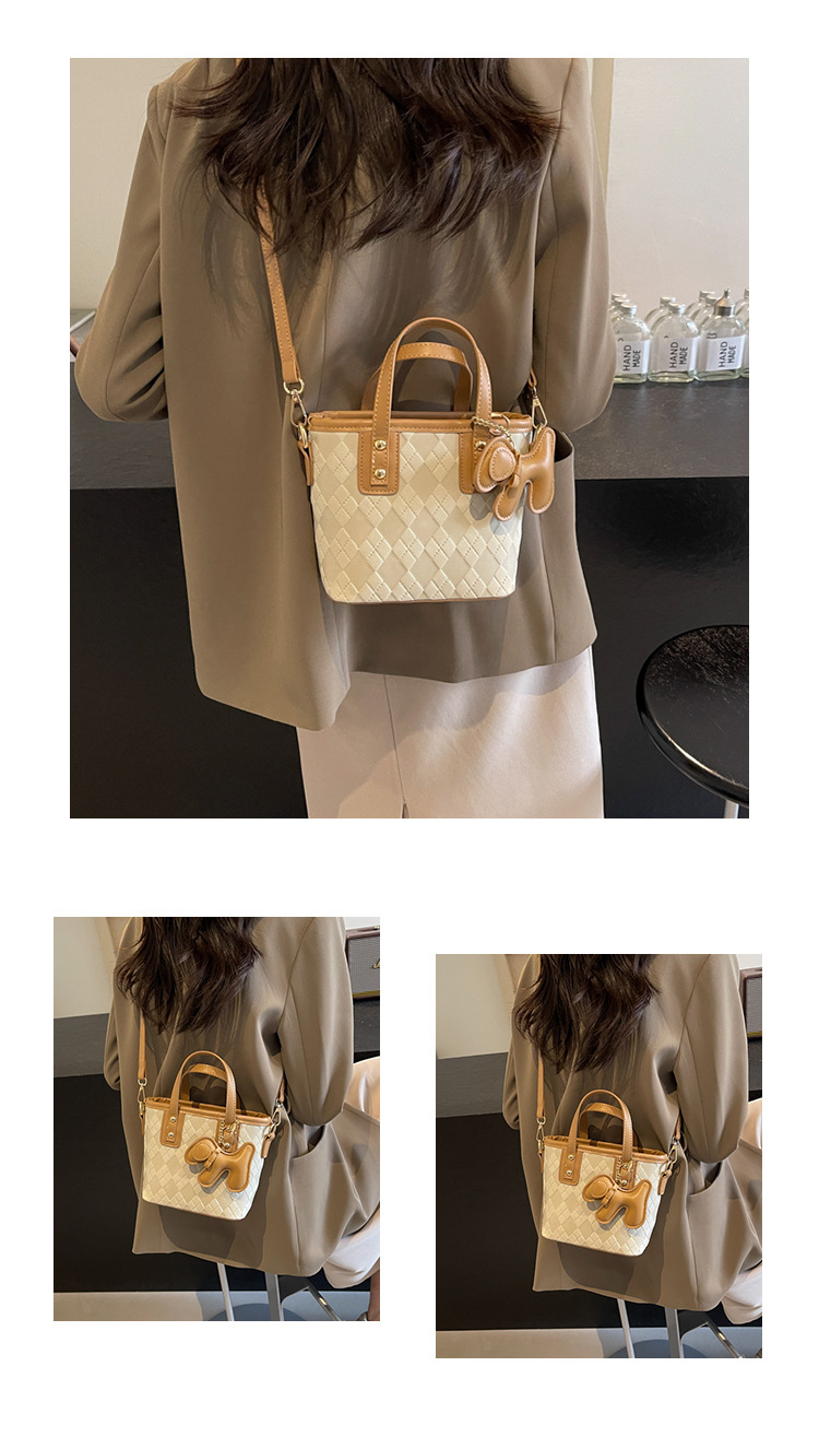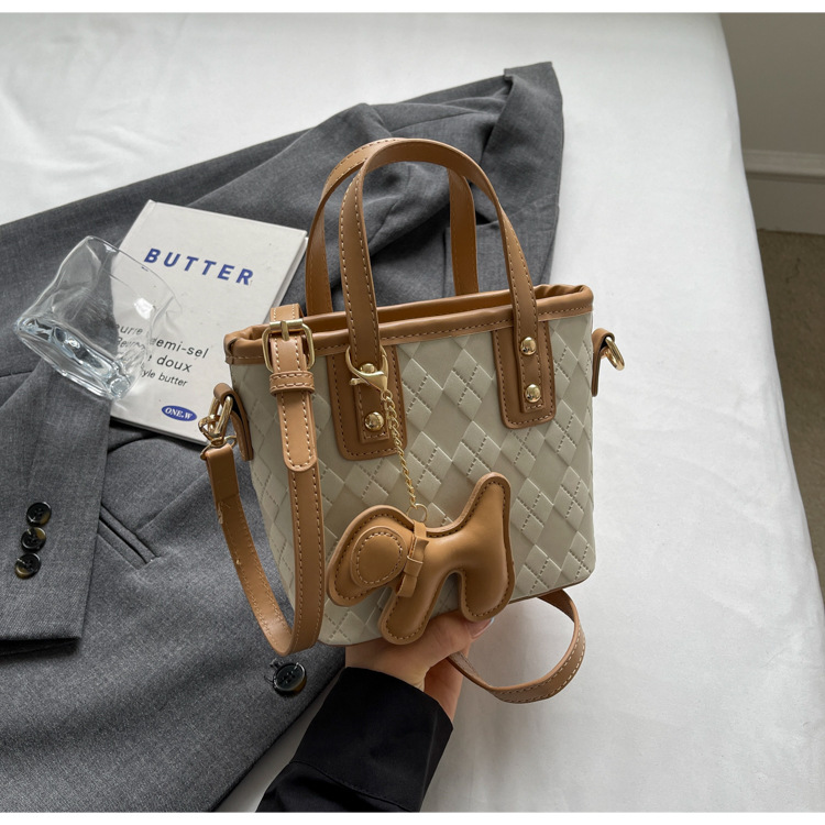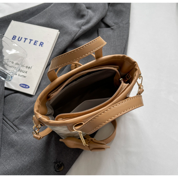 세련된 휴대용 버킷 가방 여성 가방 새로운 패션 양각 된 마름모꼴 어깨 크로스 바디 백 통근 복고풍 작은 가방