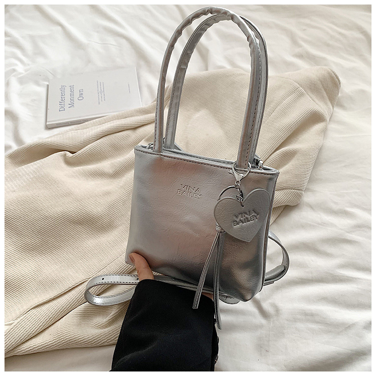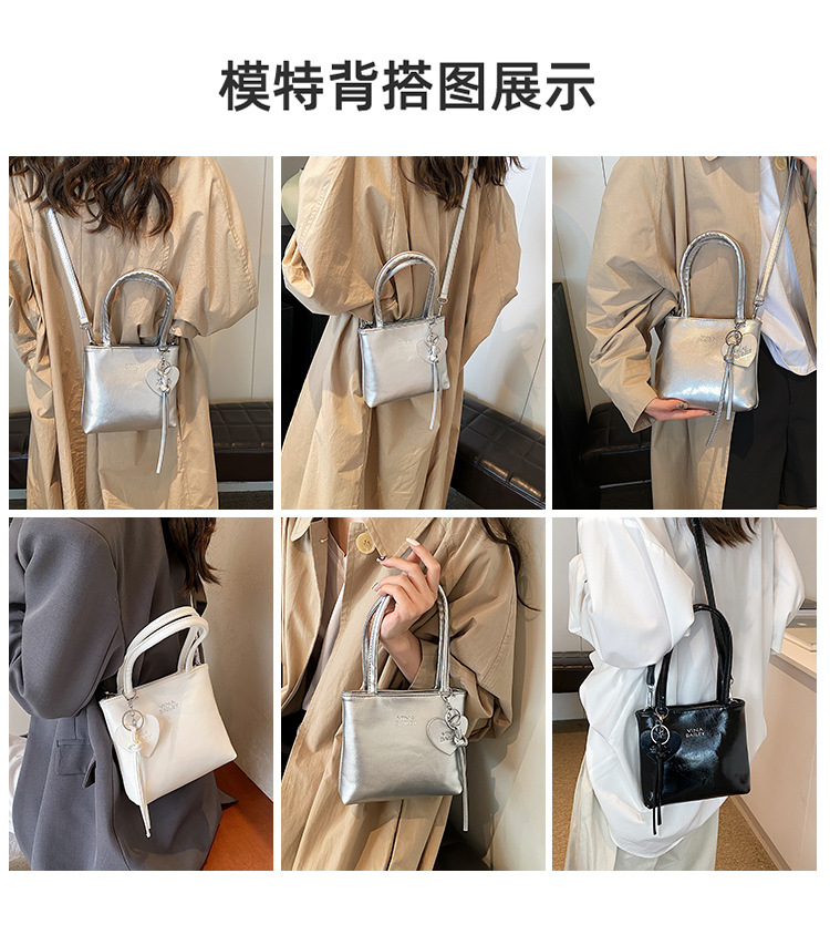 새로운 실버 작은 가방 여성 가방 2024 새로운 슈퍼 핫 핸드백 외국 우아한 올 매치 어깨 크로스 바디 휴대 전화 가방스토어 가기