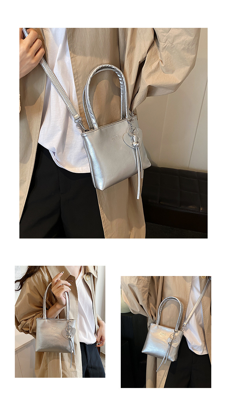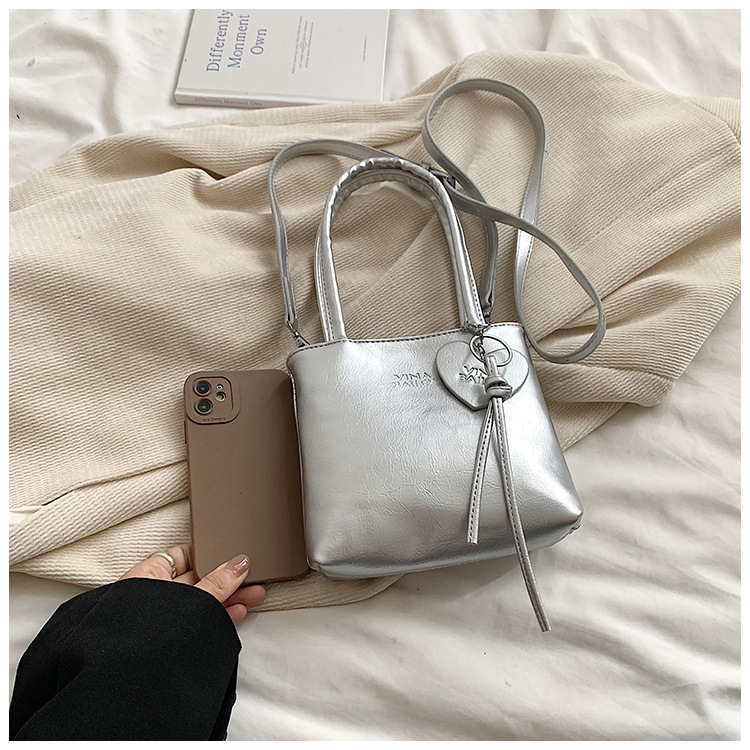 새로운 실버 작은 가방 여성 가방 2024 새로운 슈퍼 핫 핸드백 외국 우아한 올 매치 어깨 크로스 바디 휴대 전화 가방