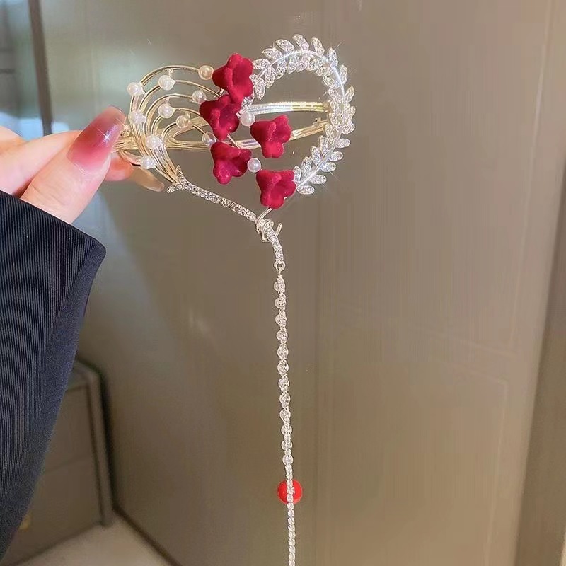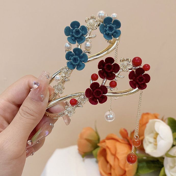 • 몰려든 세 꽃 트위스트 클립 - 붉은 꽃