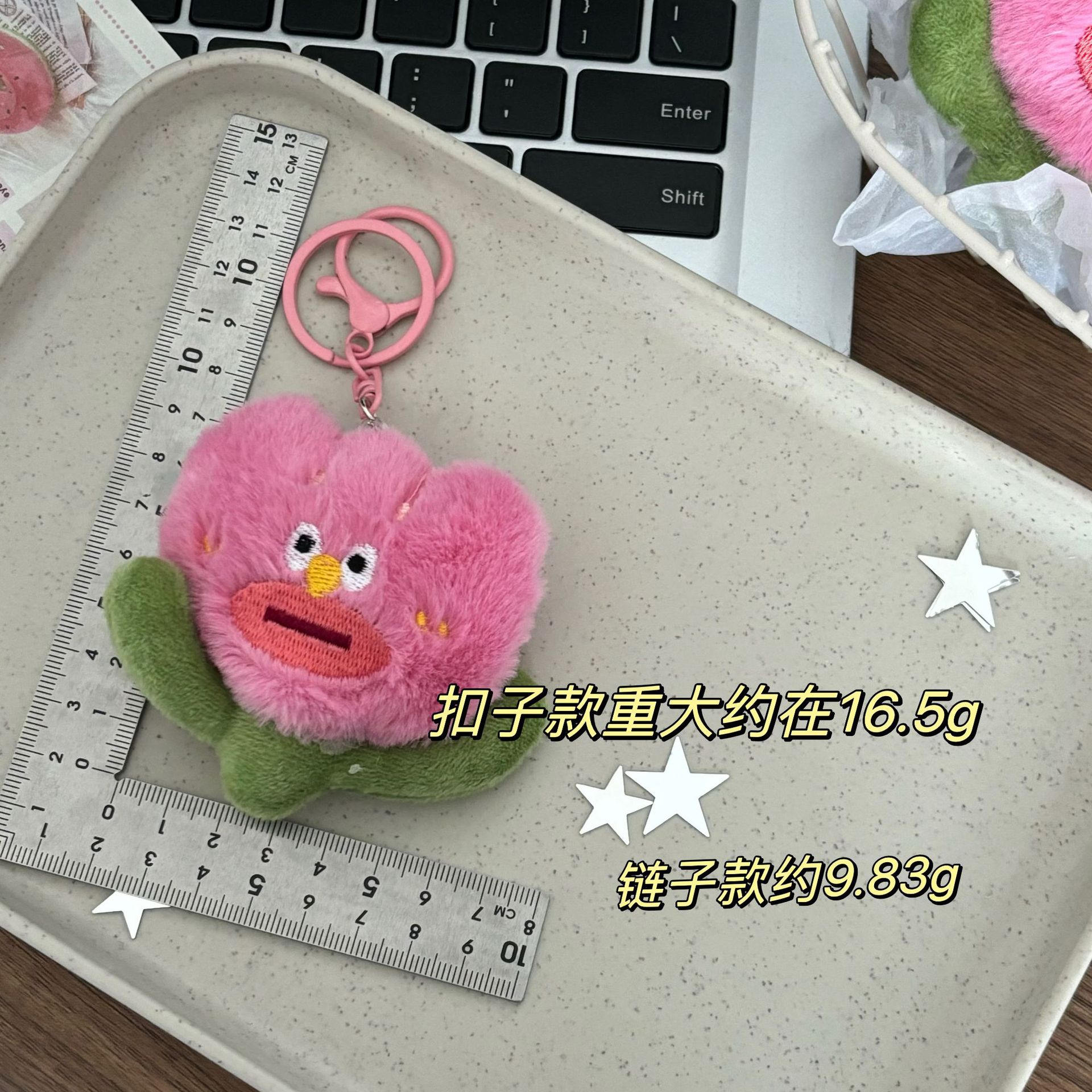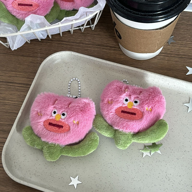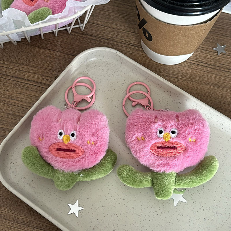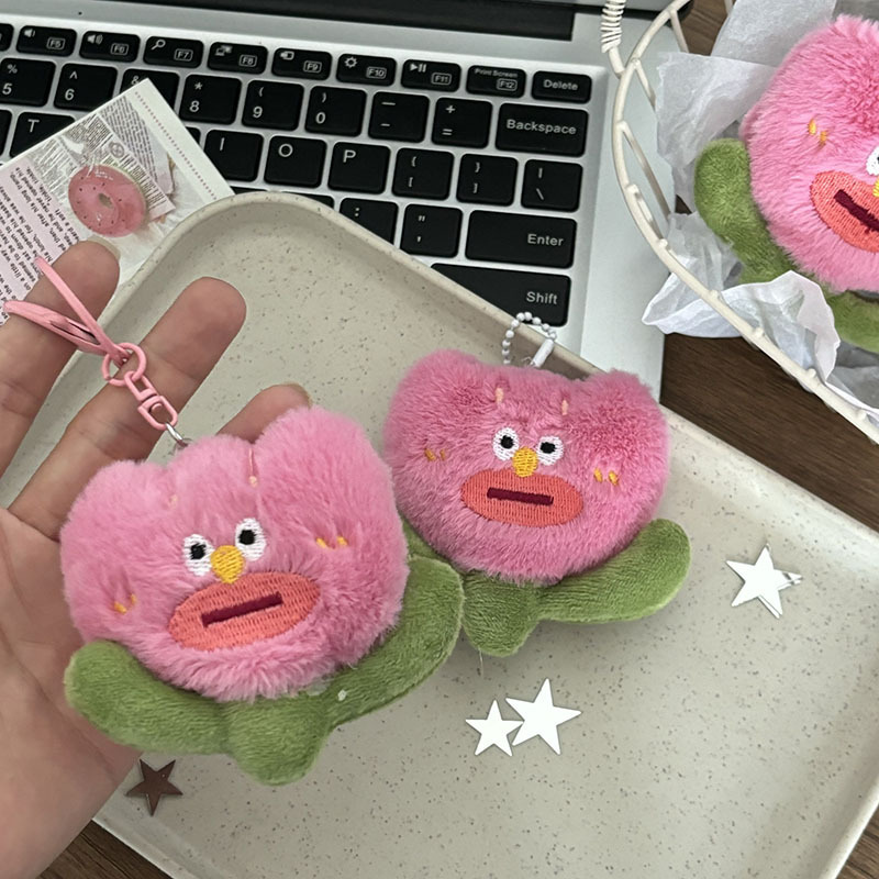 여자 친구가 생일 선물로 물건을 보내기 위해 열쇠 고리로 가방을 걸고있는 귀여운 봉제 핑크 못생긴 꽃 펜던트스토어 가기