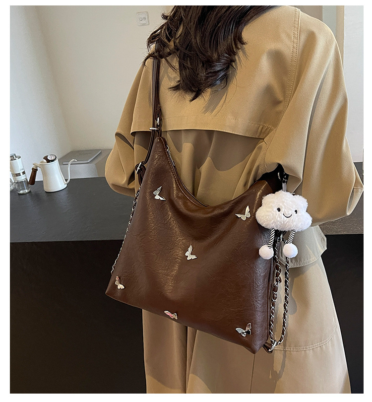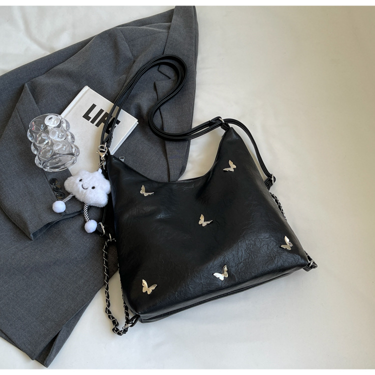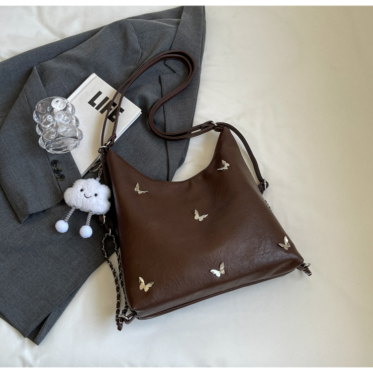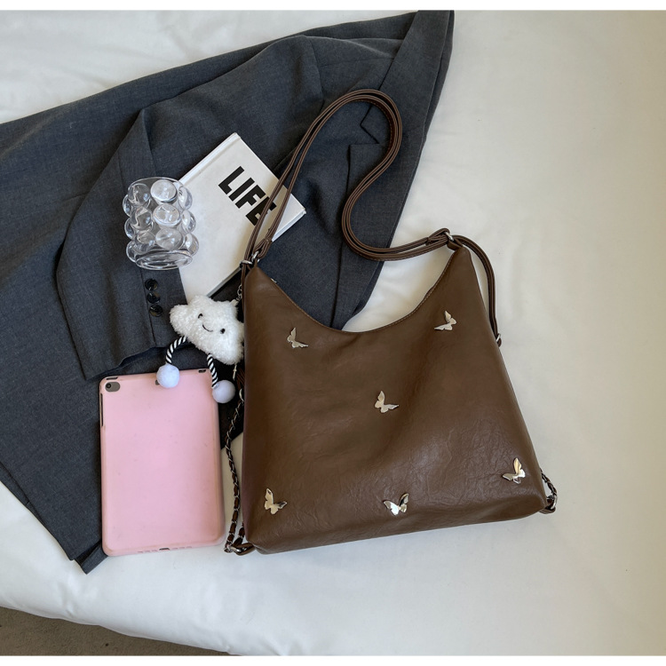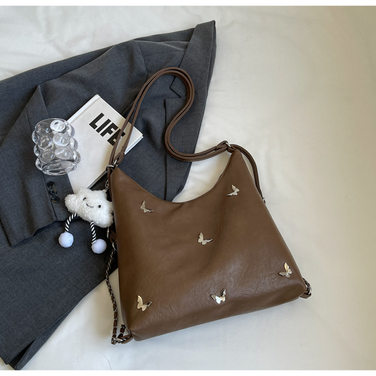 대용량 가방 여성 가방 2024 새로운 디자인 센스 나비 리벳 통근 다기능 어깨 크로스 백
