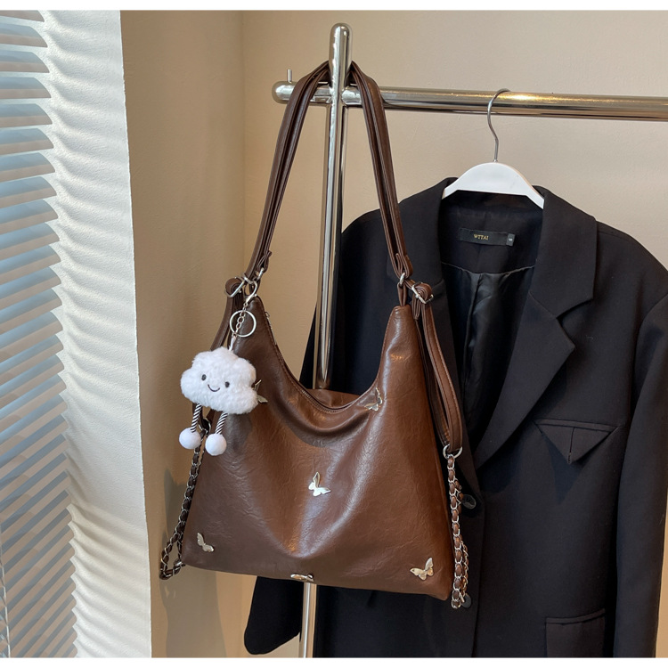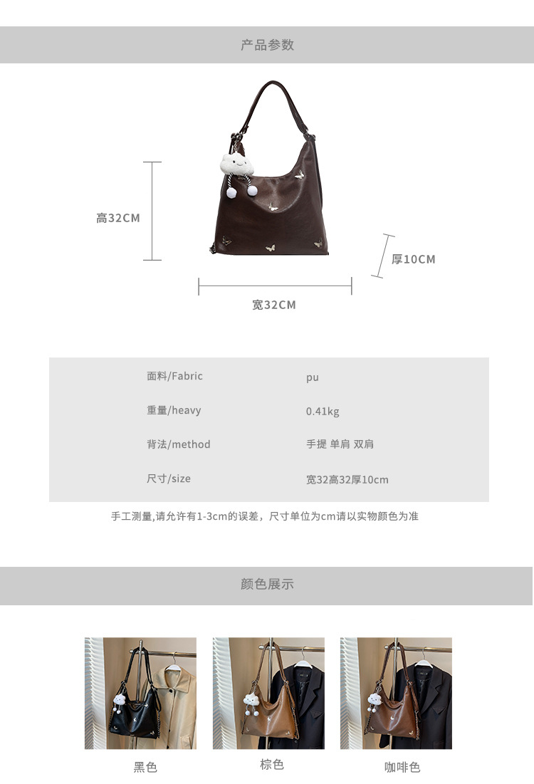 대용량 가방 여성 가방 2024 새로운 디자인 센스 나비 리벳 통근 다기능 어깨 크로스 백스토어 가기