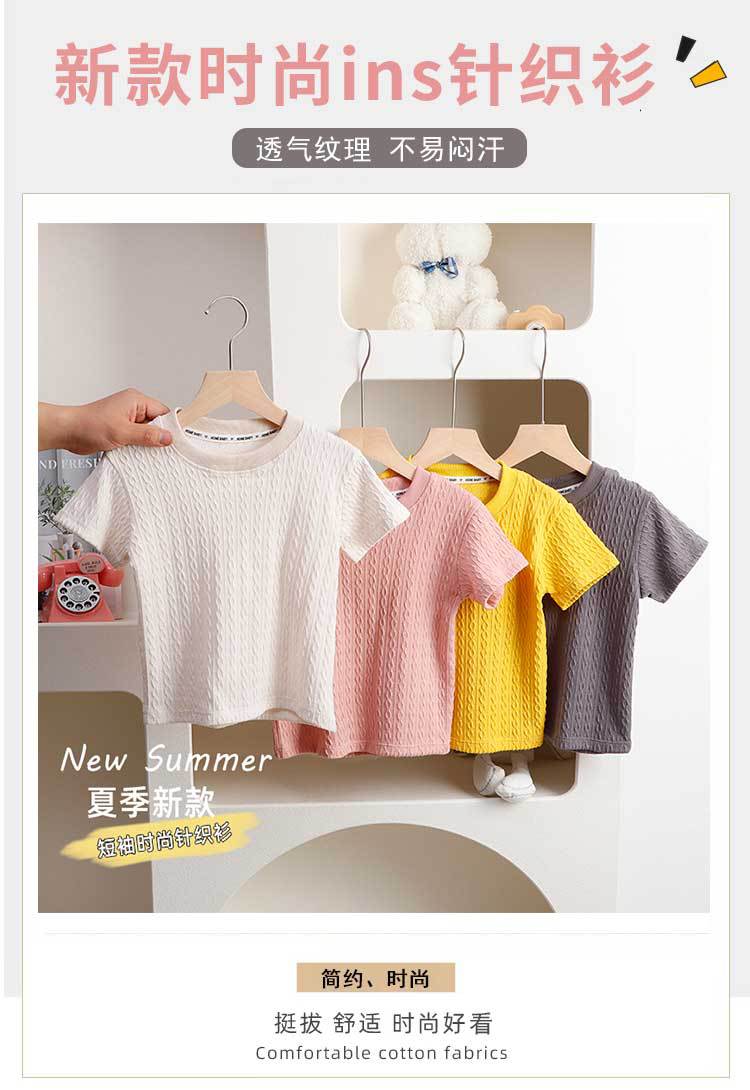 여름 어린이 라운드 넥 패션 니트 티셔츠 소녀 통기성 할로우 아웃 스타일리시 탑 보이즈 캐주얼 얇은 짧은 소매