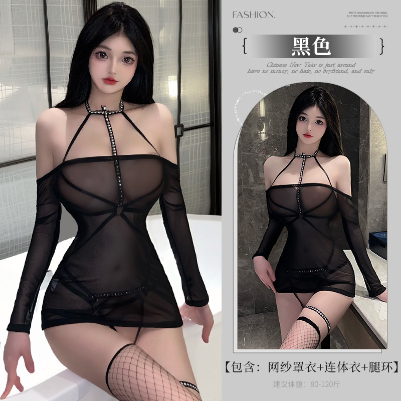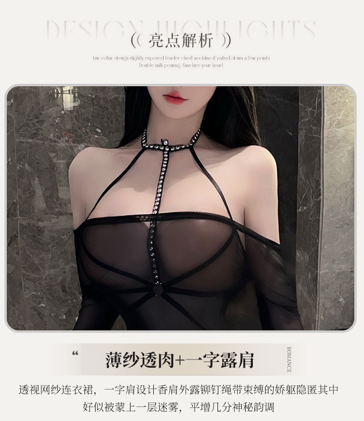 Lin Linting 섹시한 속옷 여성의 섹시한 No Take-off Royal Sister Perspective Rivet Bondage Uniform Temptation 원피스 Pajamas 8513