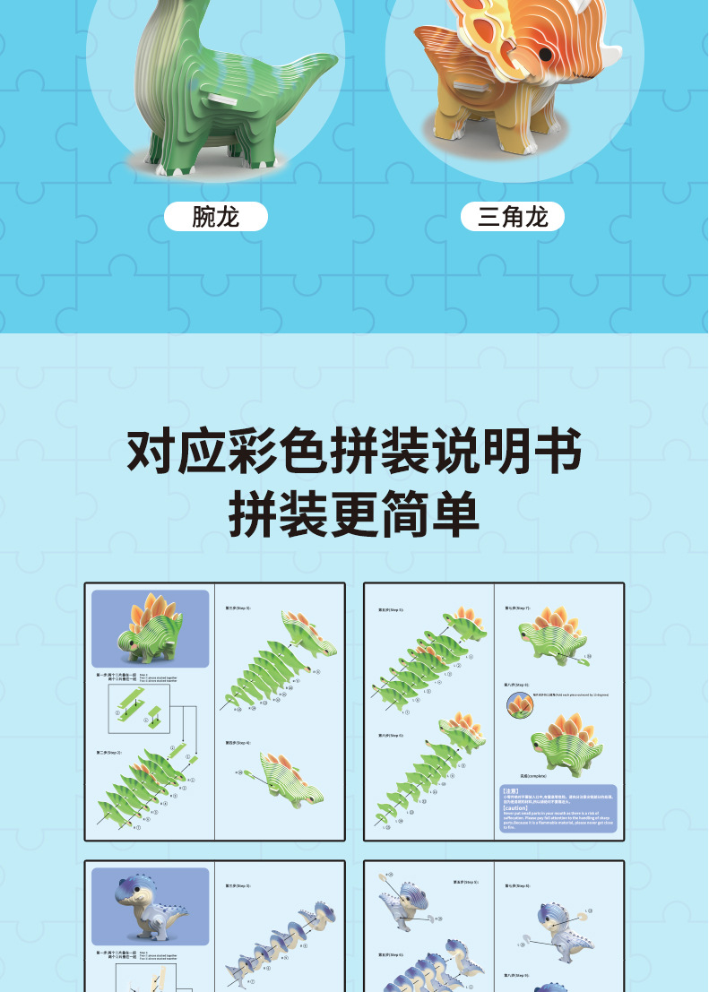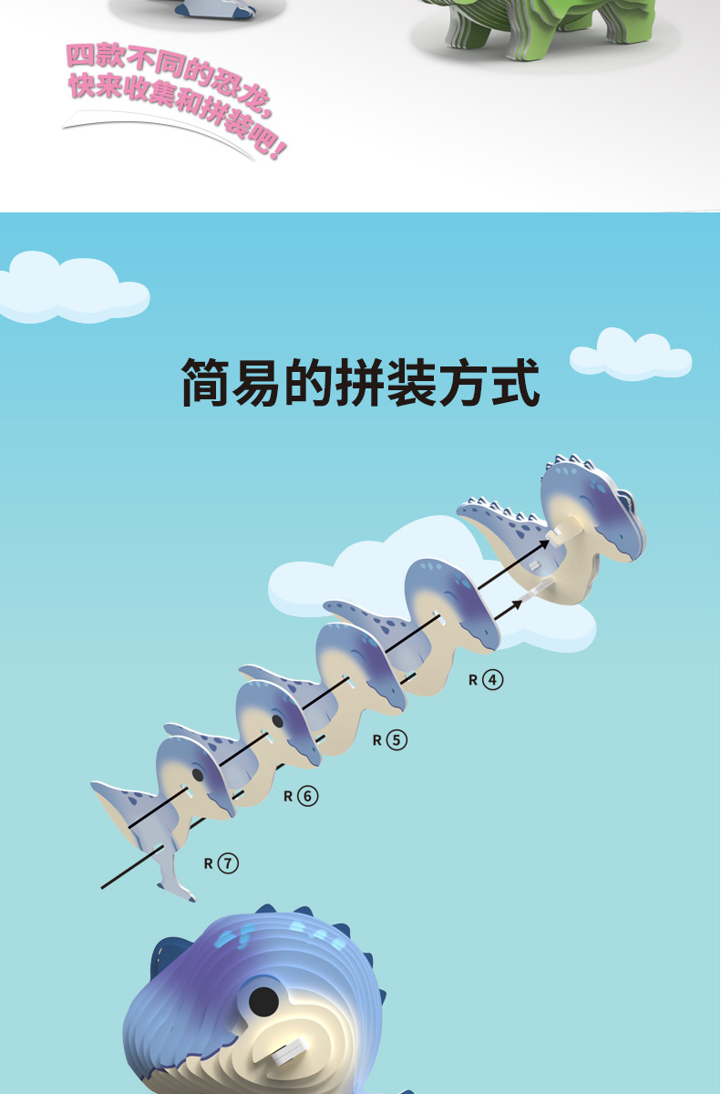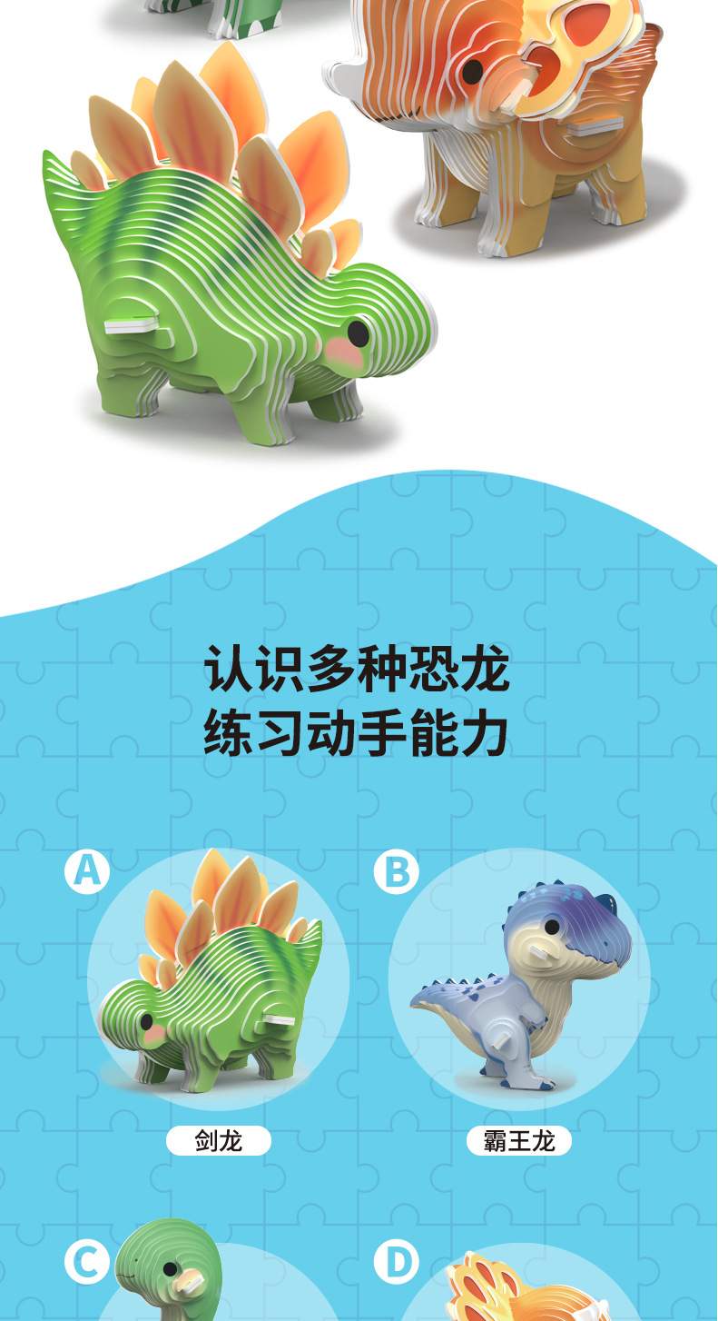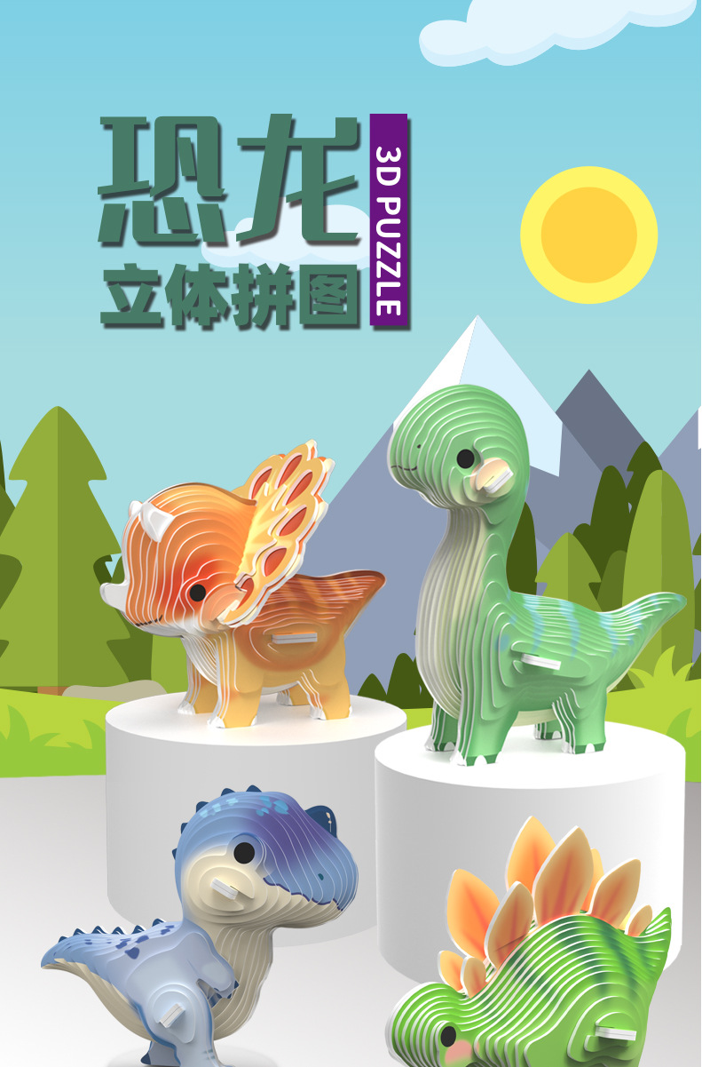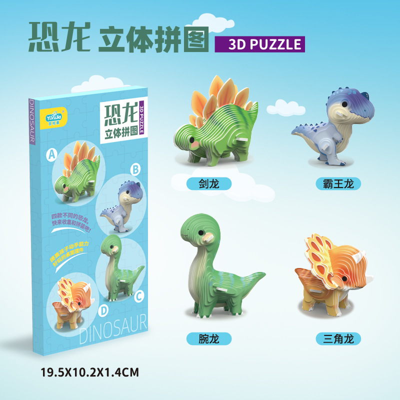 새로운 3D 공룡 종이 퍼즐 어린이 창조적 인 교육 조기 교육 손으로 조립 동물 모델 장난감스토어 가기