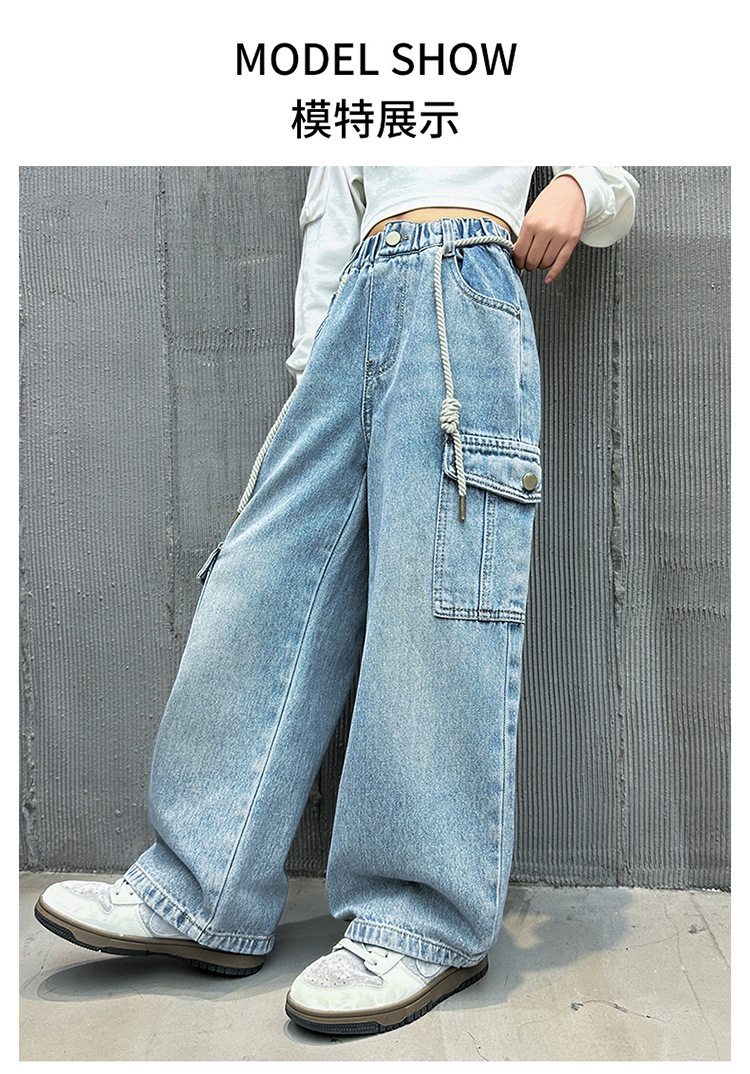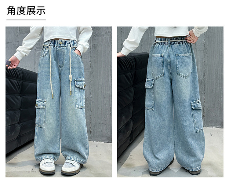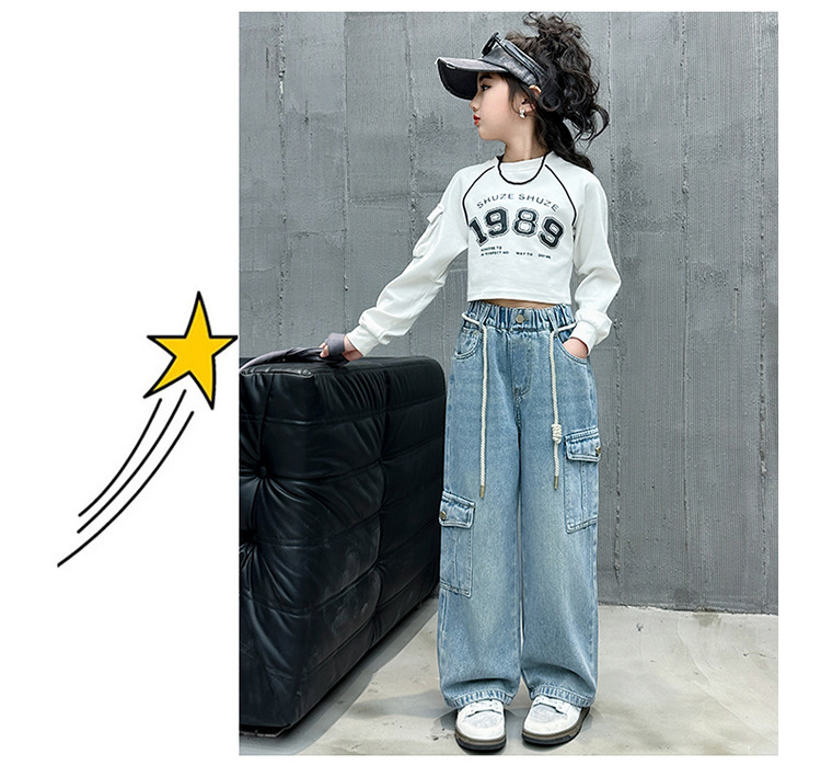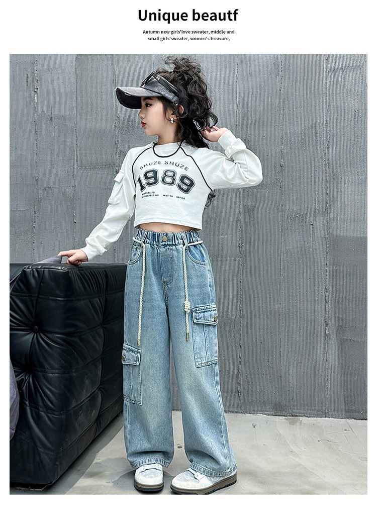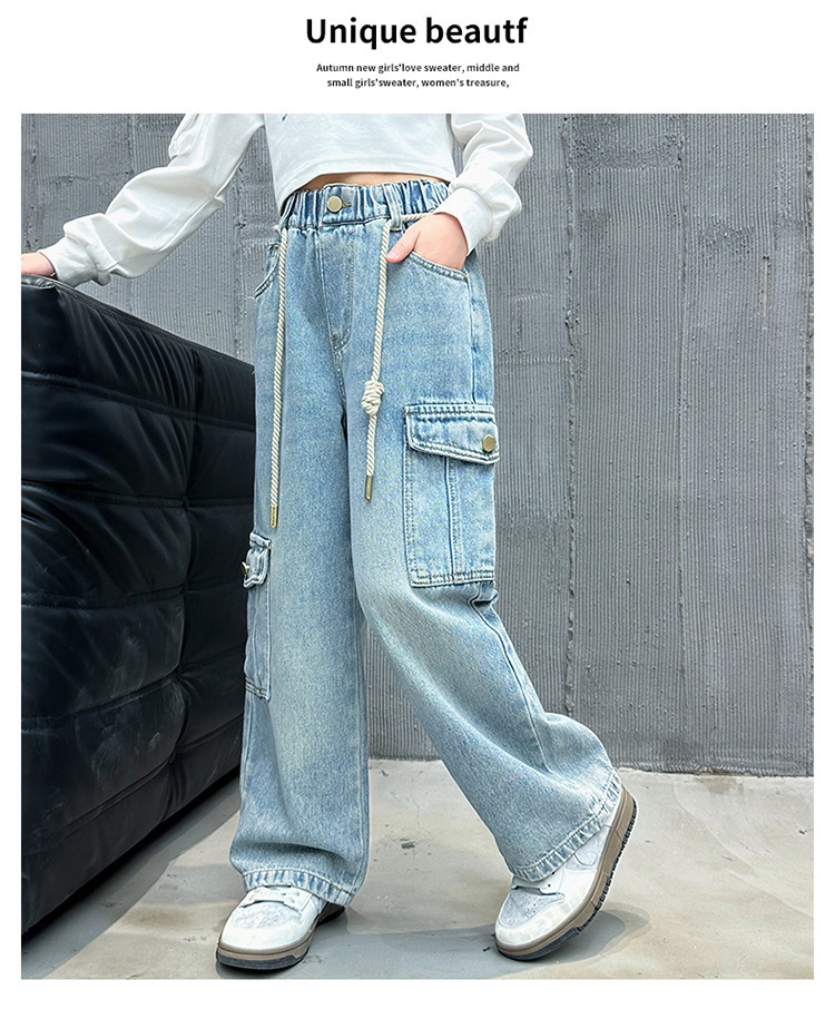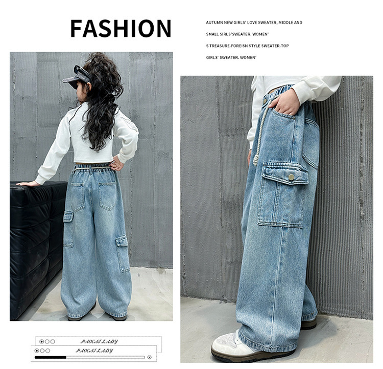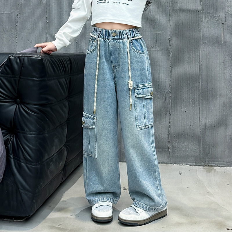 소녀 바지 봄과 가을 2024 새로운 어린이 크레인 바지 외부 착용 소녀 봄 스트레이트 데님스토어 가기