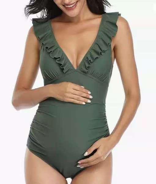 2024 새로운 대외 무역 도매 아마존 섹시한 패션 단색 삼각형 러플 임신 한 여성의 원피스 수영복