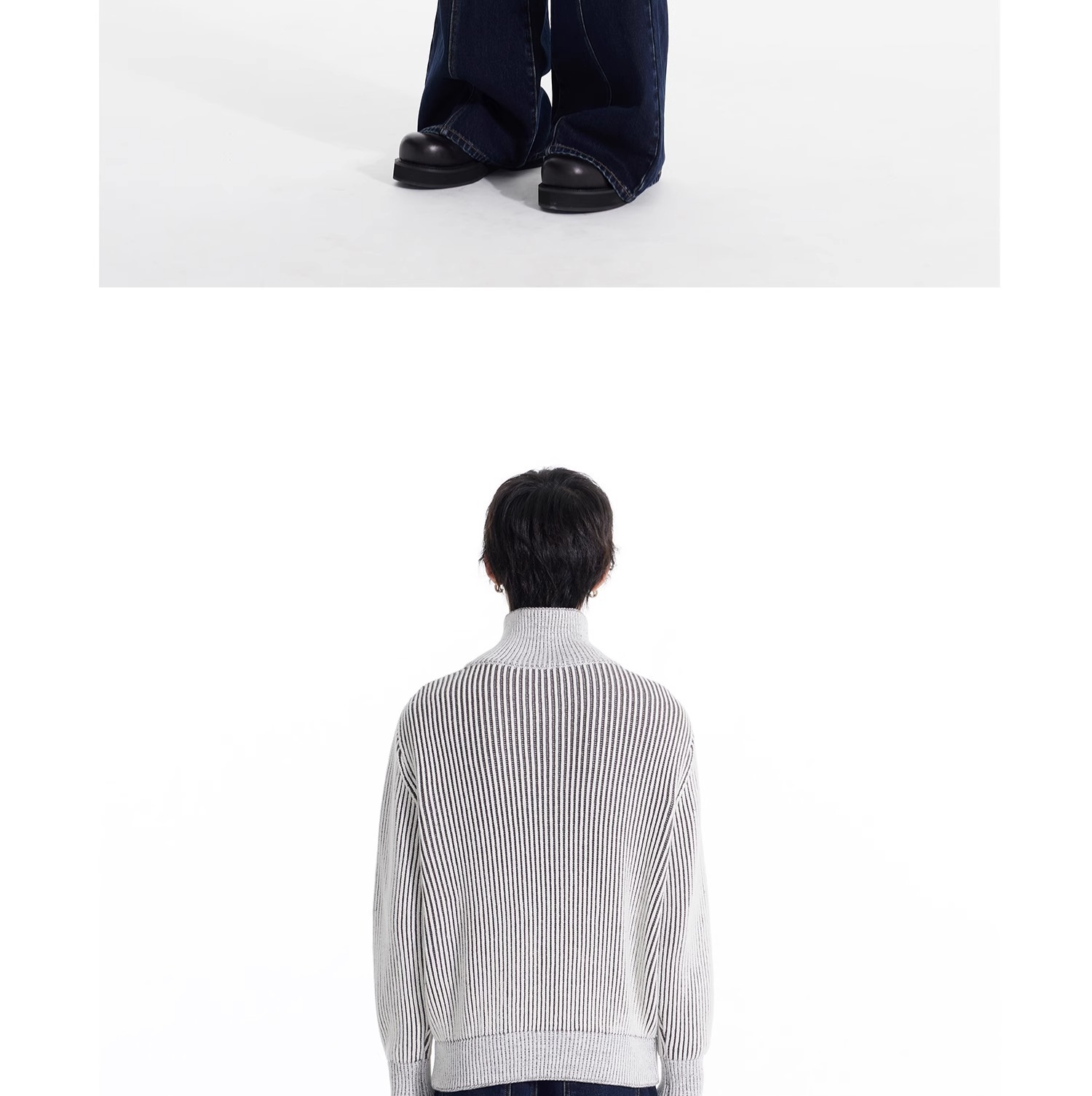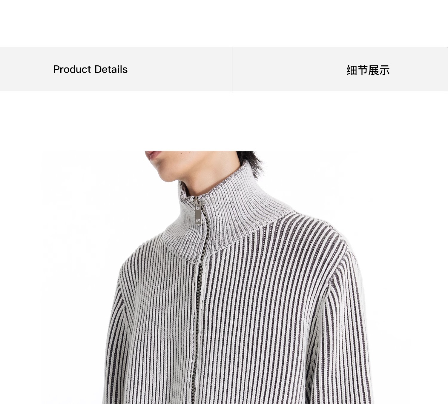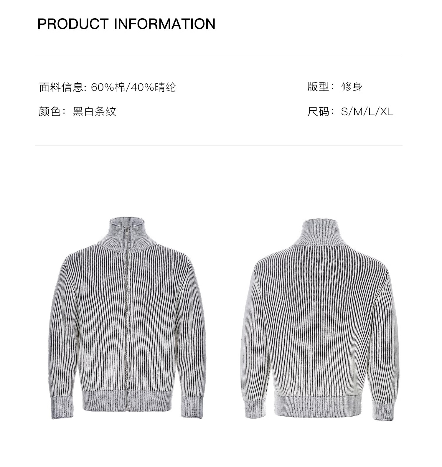 화이트 그레이 지퍼 수직 칼라 무거운 스웨터 두꺼운 줄무늬 니트 카디건 느슨한 재킷 남성과 여성의 느슨한 탑 트렌디스토어 가기