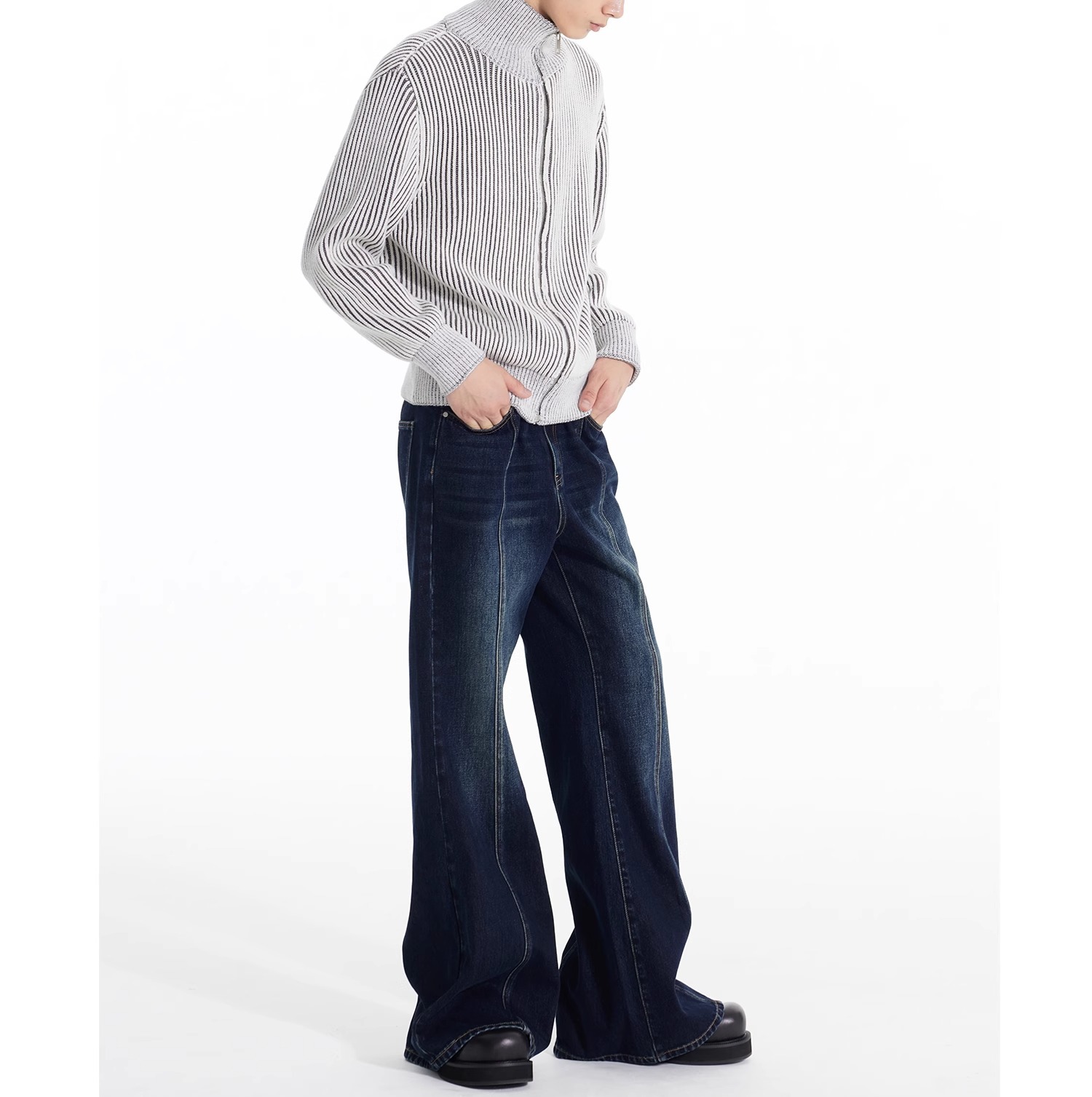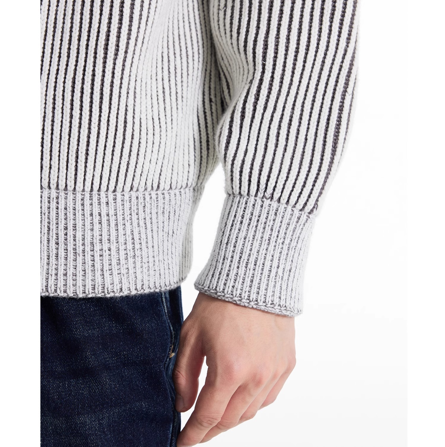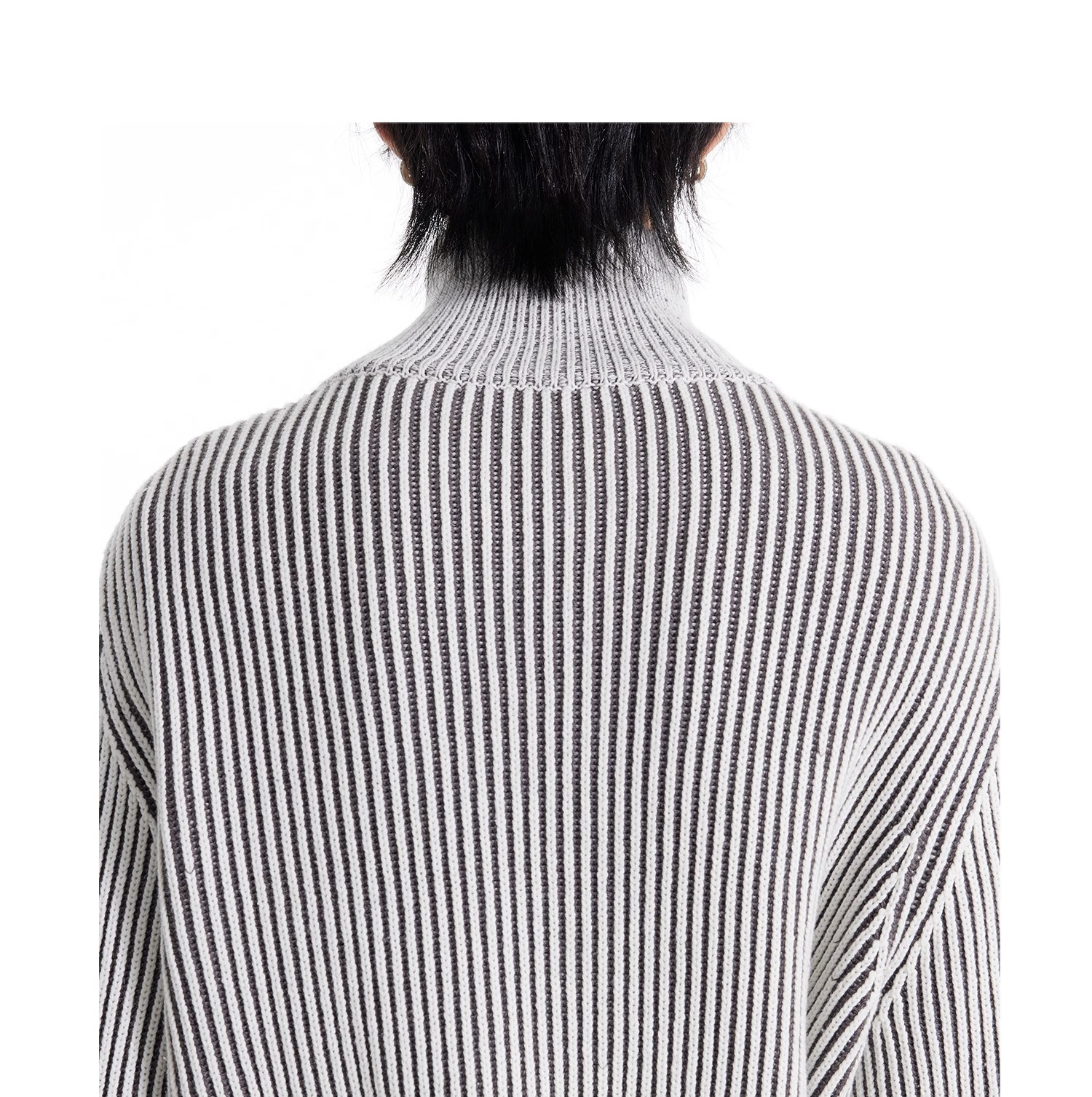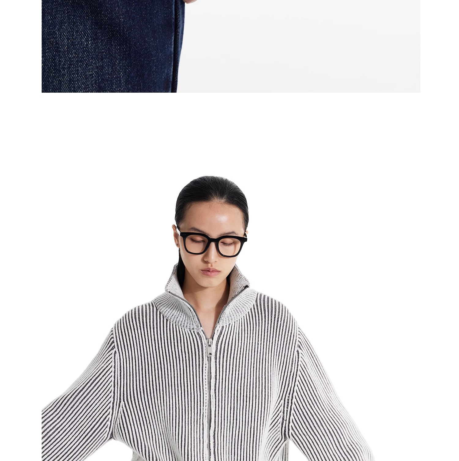 화이트 그레이 지퍼 수직 칼라 무거운 스웨터 두꺼운 줄무늬 니트 카디건 느슨한 재킷 남성과 여성의 느슨한 탑 트렌디스토어 가기