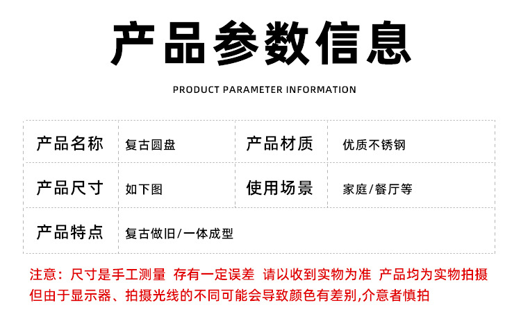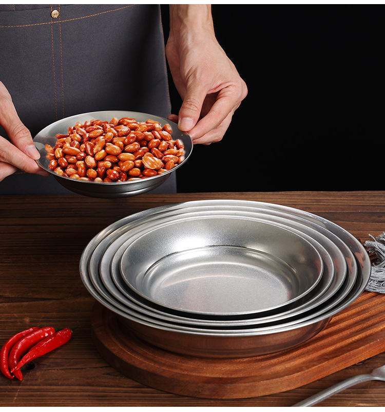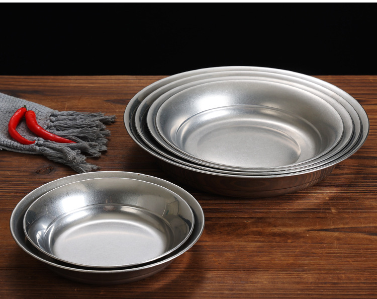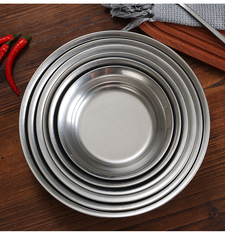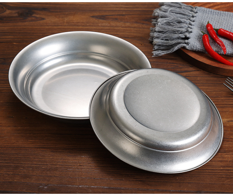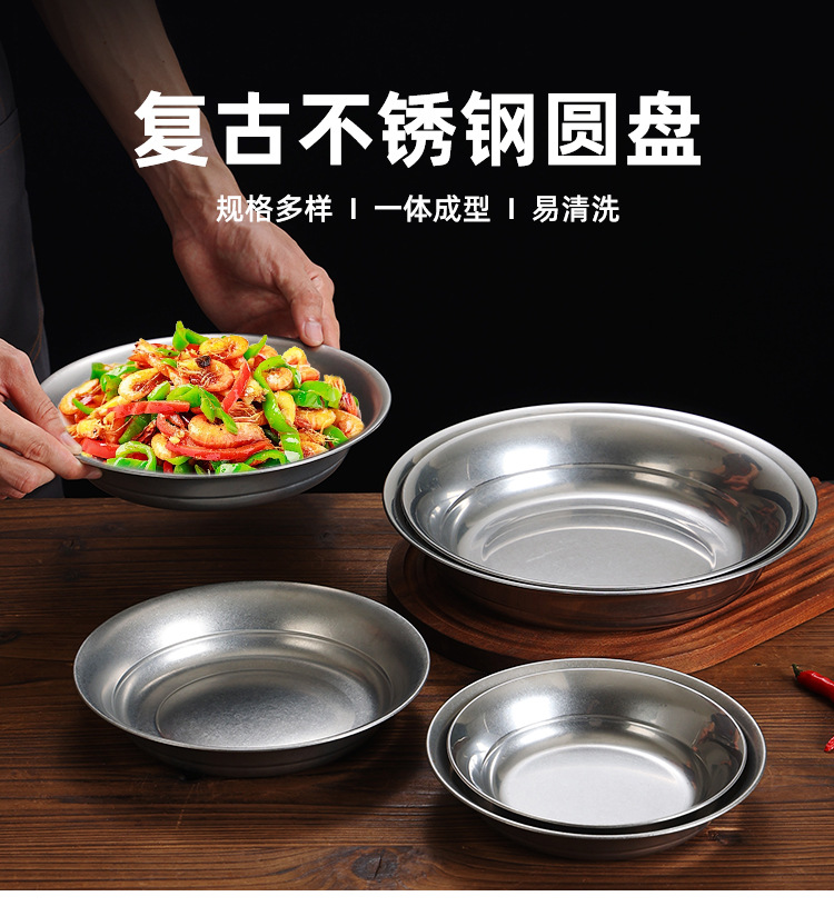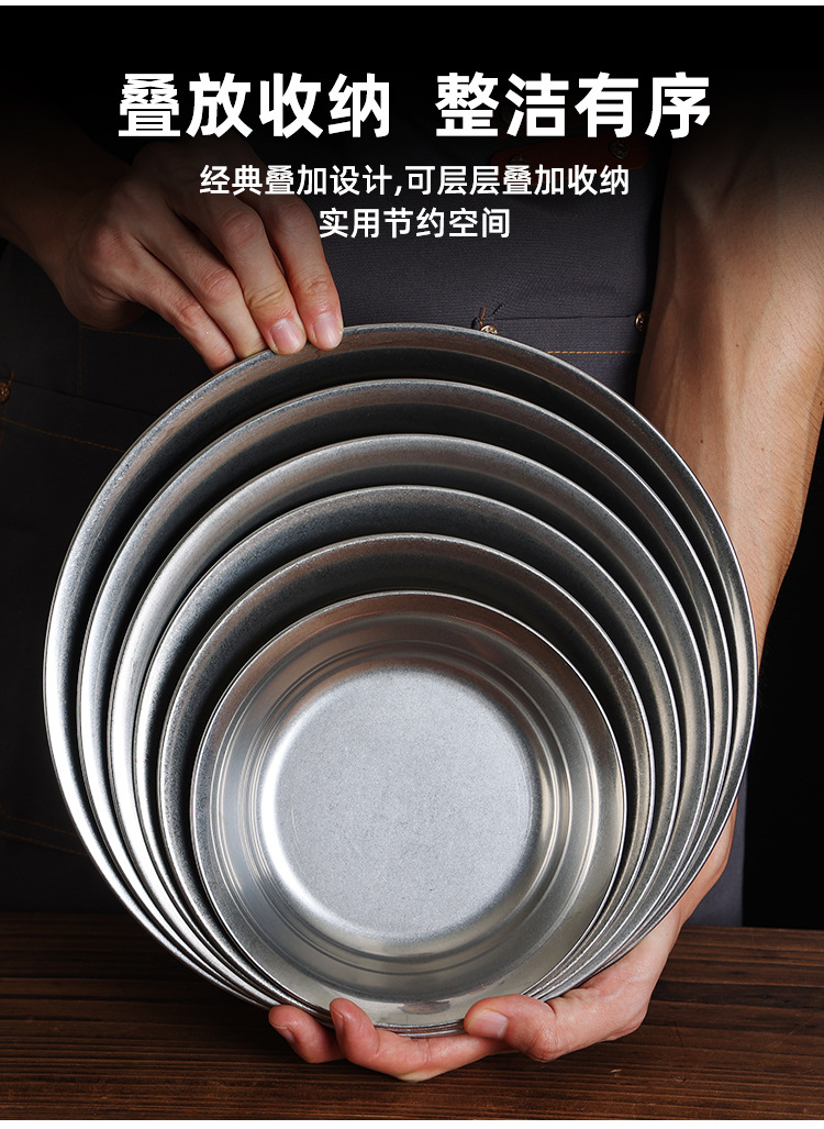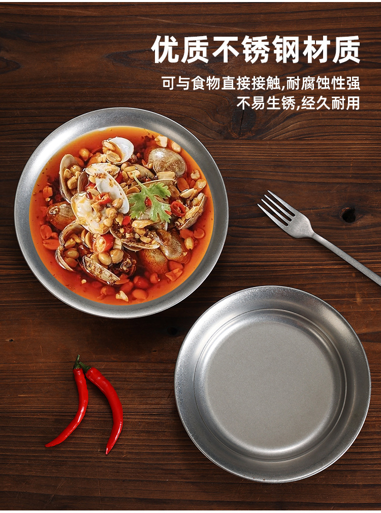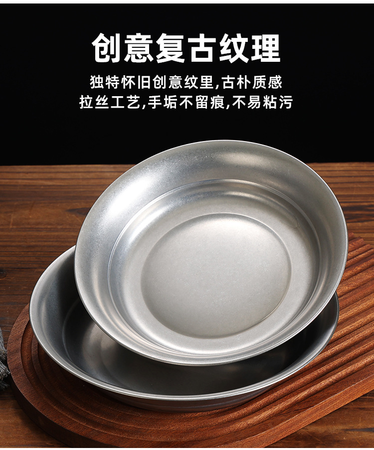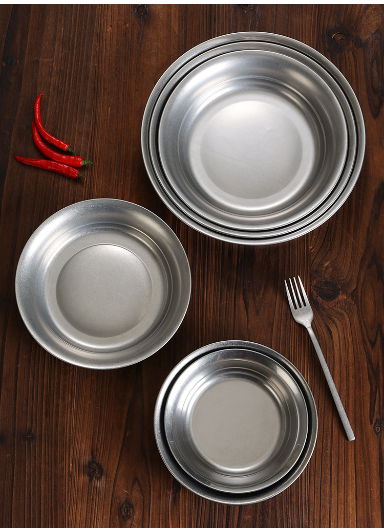 빈티지 오래된 스테인레스 스틸 플레이트 라운드 파스타 플레이트 바베큐 샐러드 스테이크 플레이트 크리에이티브 디저트 스낵 플레이트 디너 플레이트스토어 가기