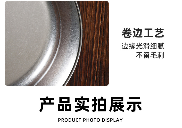 빈티지 오래된 스테인레스 스틸 플레이트 라운드 파스타 플레이트 바베큐 샐러드 스테이크 플레이트 크리에이티브 디저트 스낵 플레이트 디너 플레이트