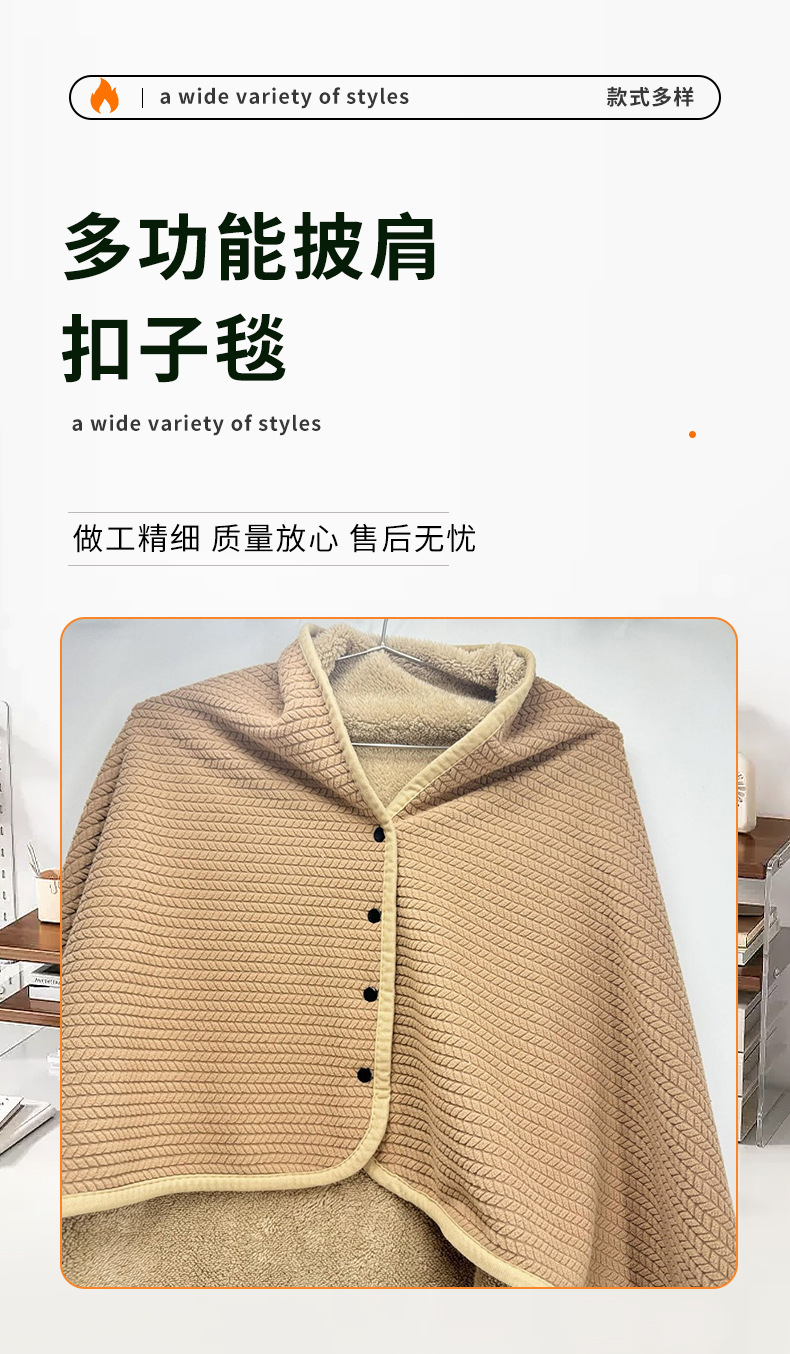밀꽃무늬 폴라플리스+부드러운 면혼합 다기능 숄 버튼 담요, 스냅 버튼 담요, 두꺼운스토어 가기