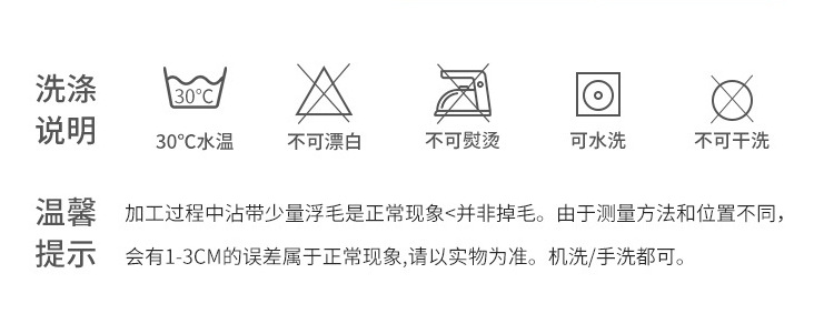 1.常温洗涤,浸泡时间不超过三十分钟,避免褪色,水温低于30度,避免缩水