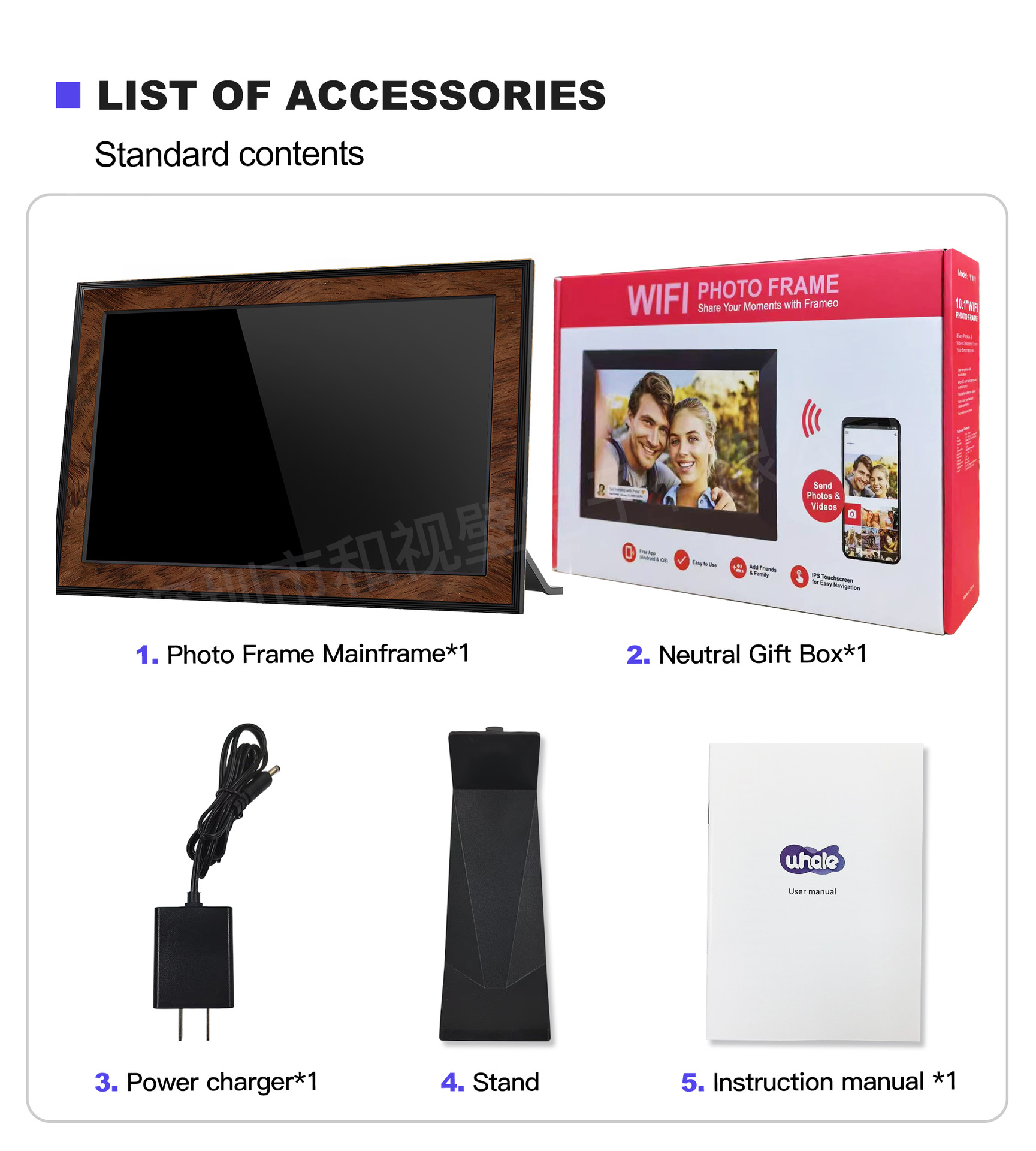 详情:使用说明书:1本;适配器:电源适配器5V/2A;支架:横竖通用支架