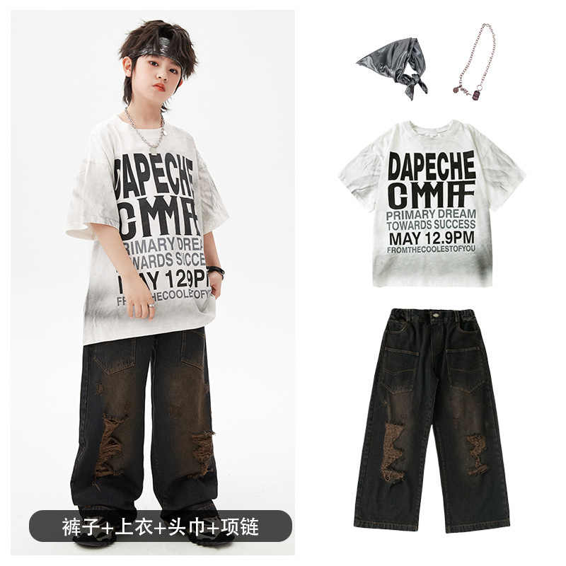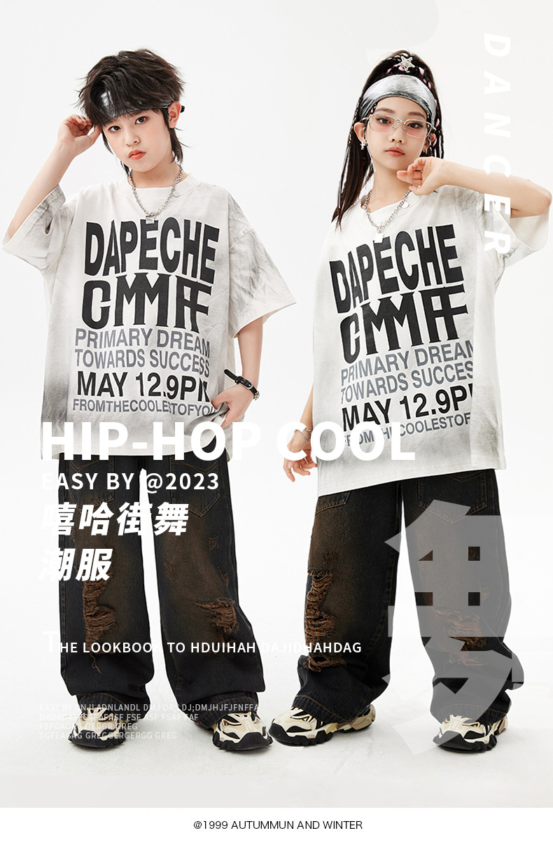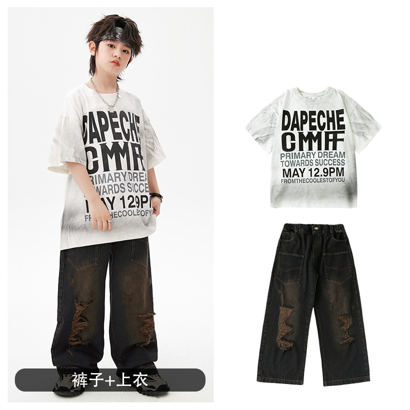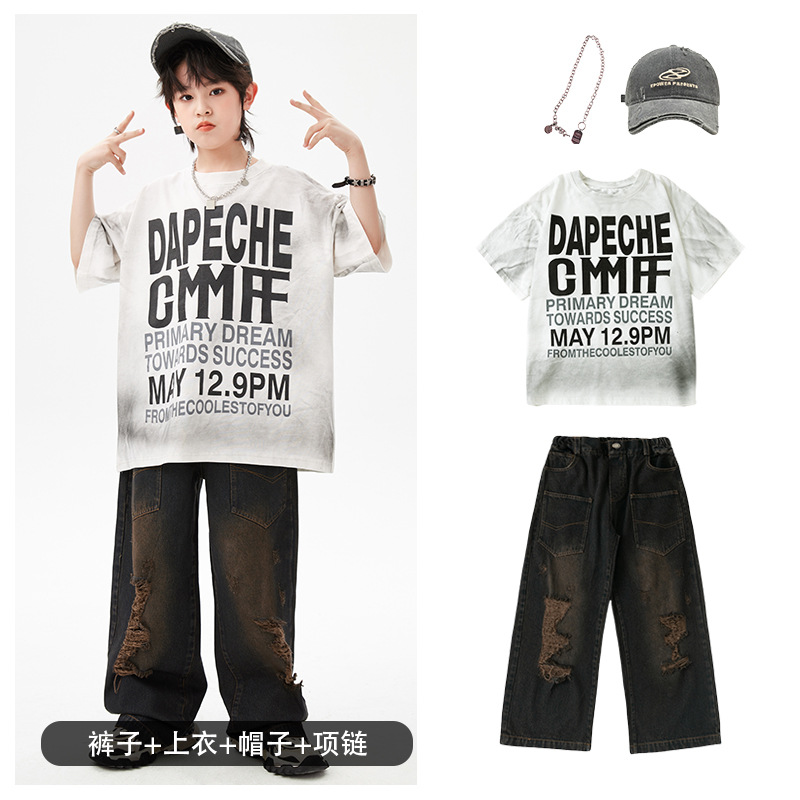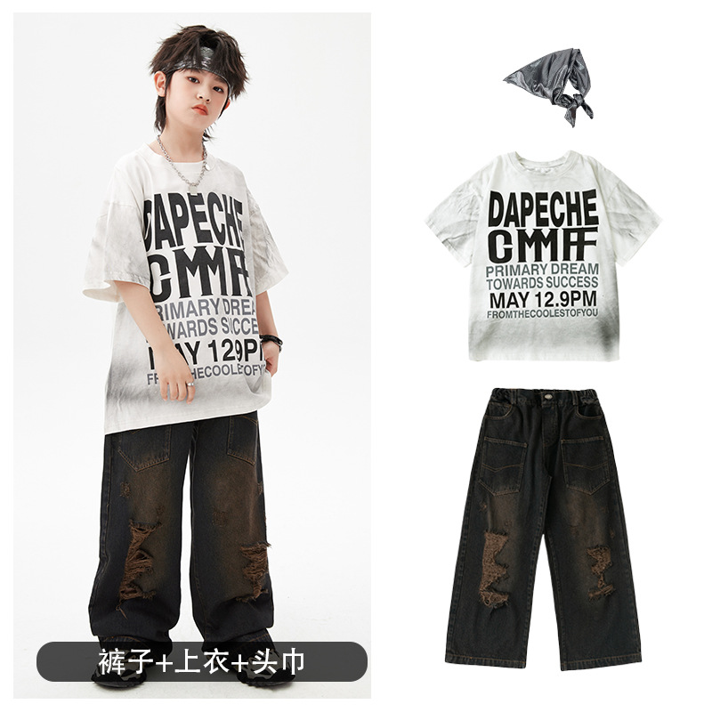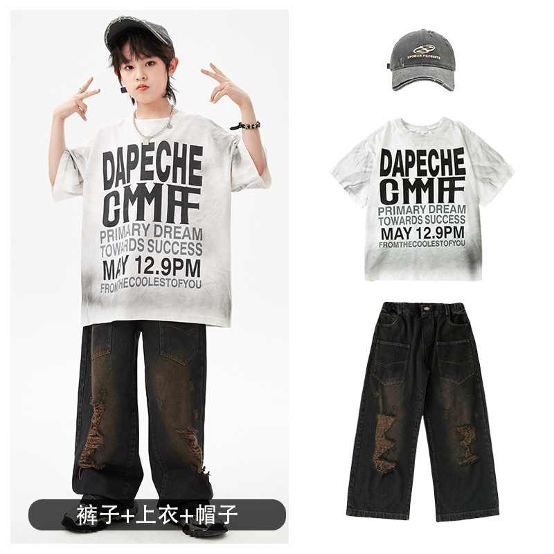 힙합 어린이 유행 의류 hiphop 아동복 아동복 소년 힙합 트렌디 브랜드 세트 드럼 세트 소녀 공연스토어 가기