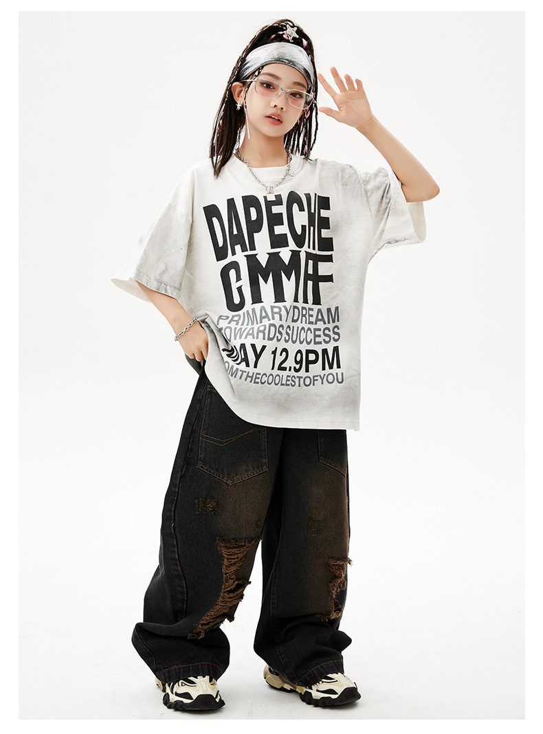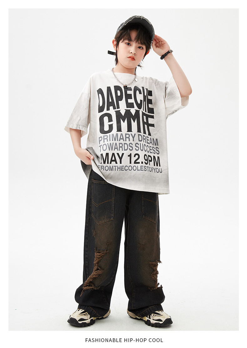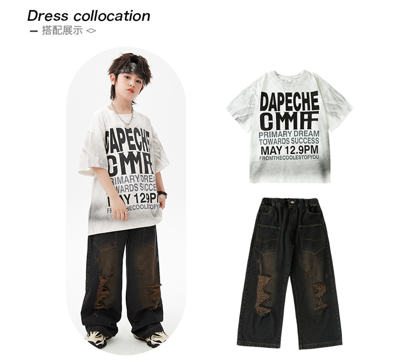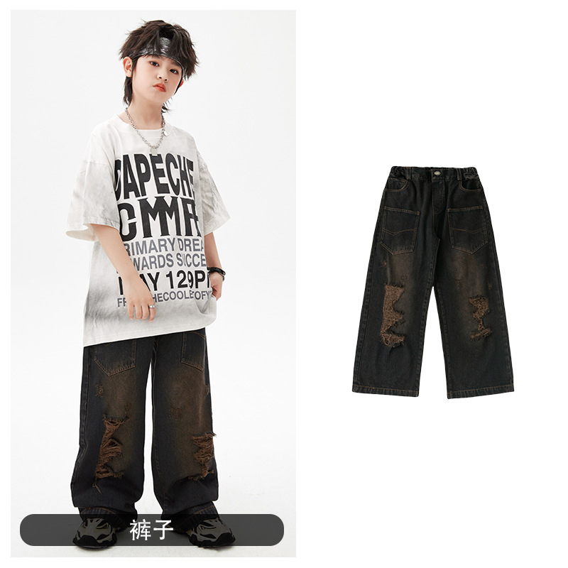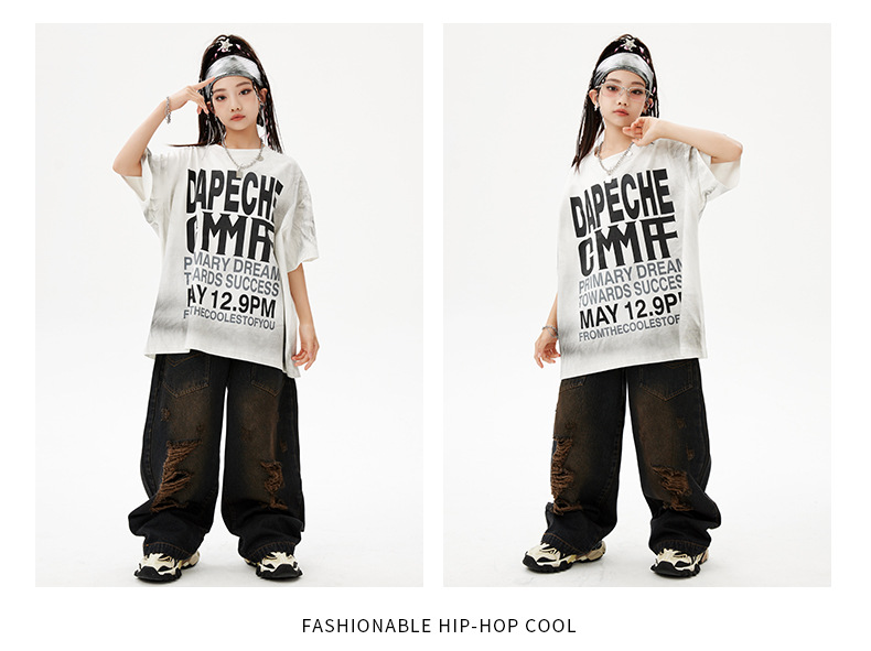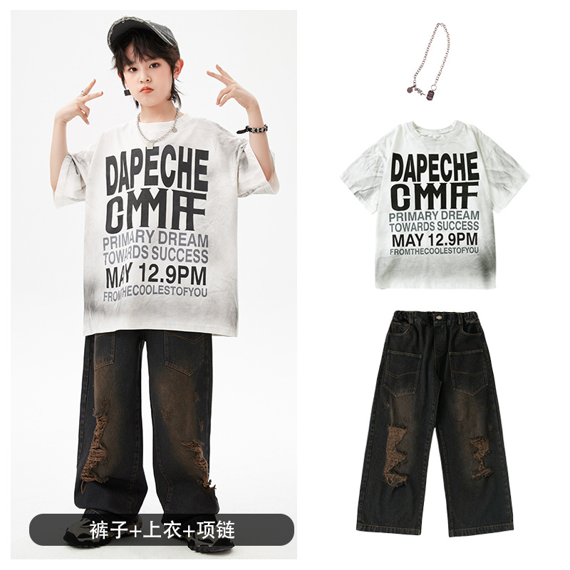 힙합 어린이 유행 의류 hiphop 아동복 아동복 소년 힙합 트렌디 브랜드 세트 드럼 세트 소녀 공연스토어 가기