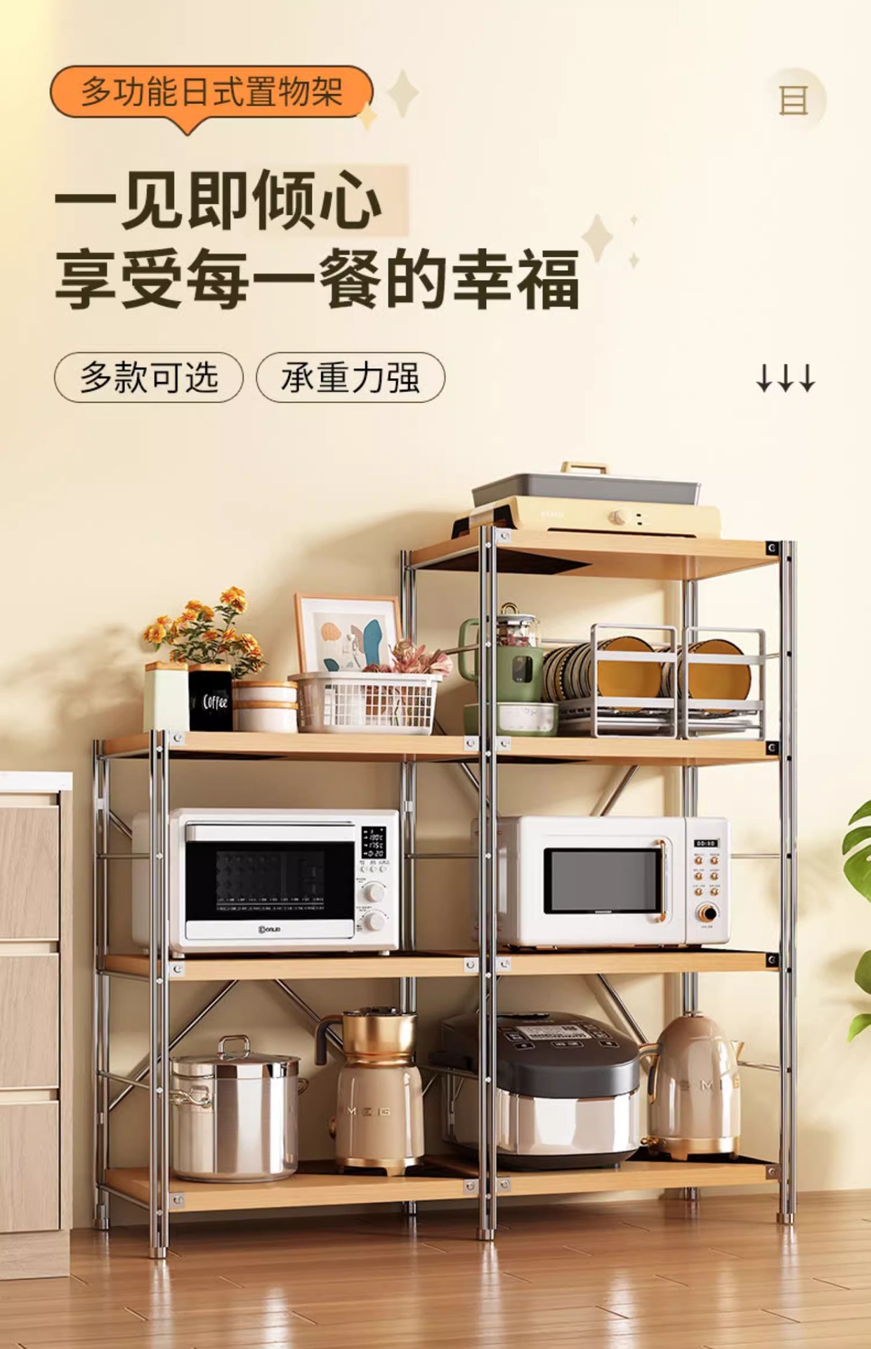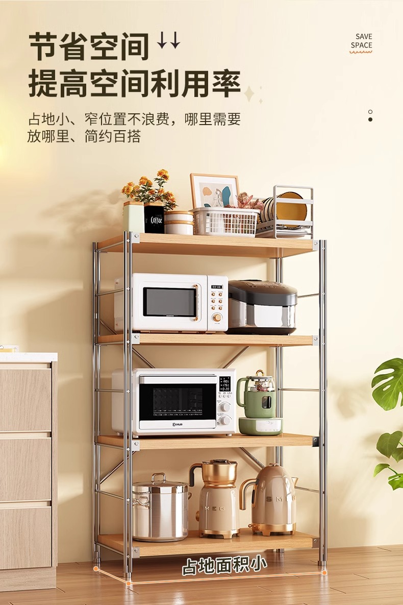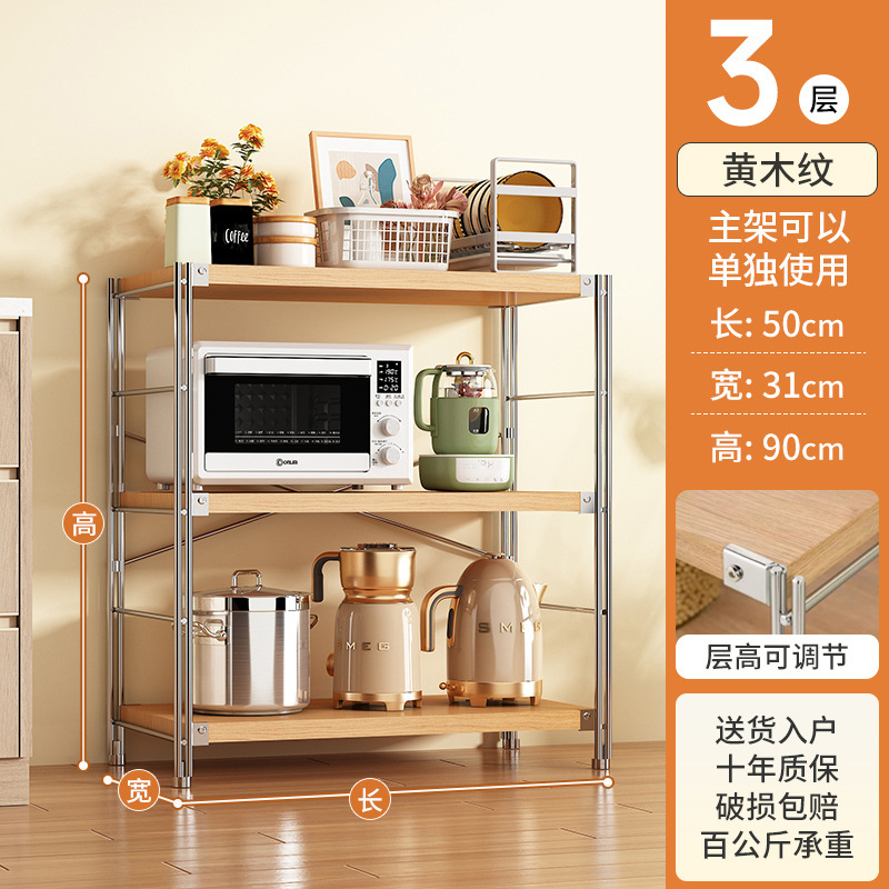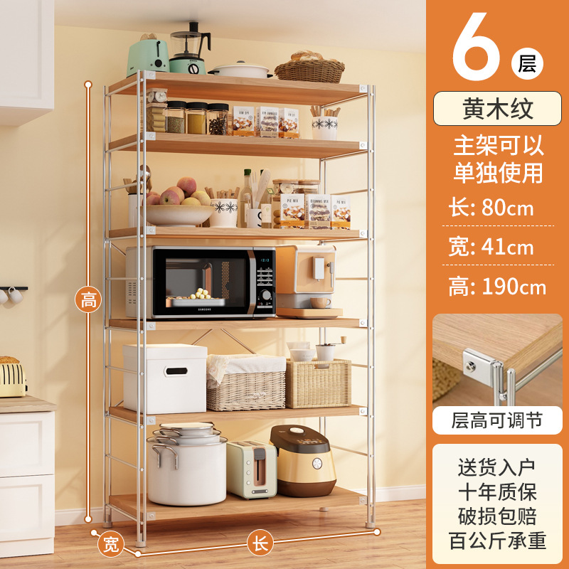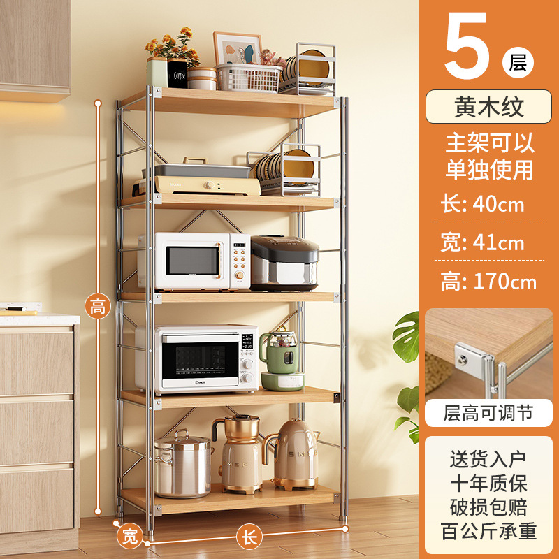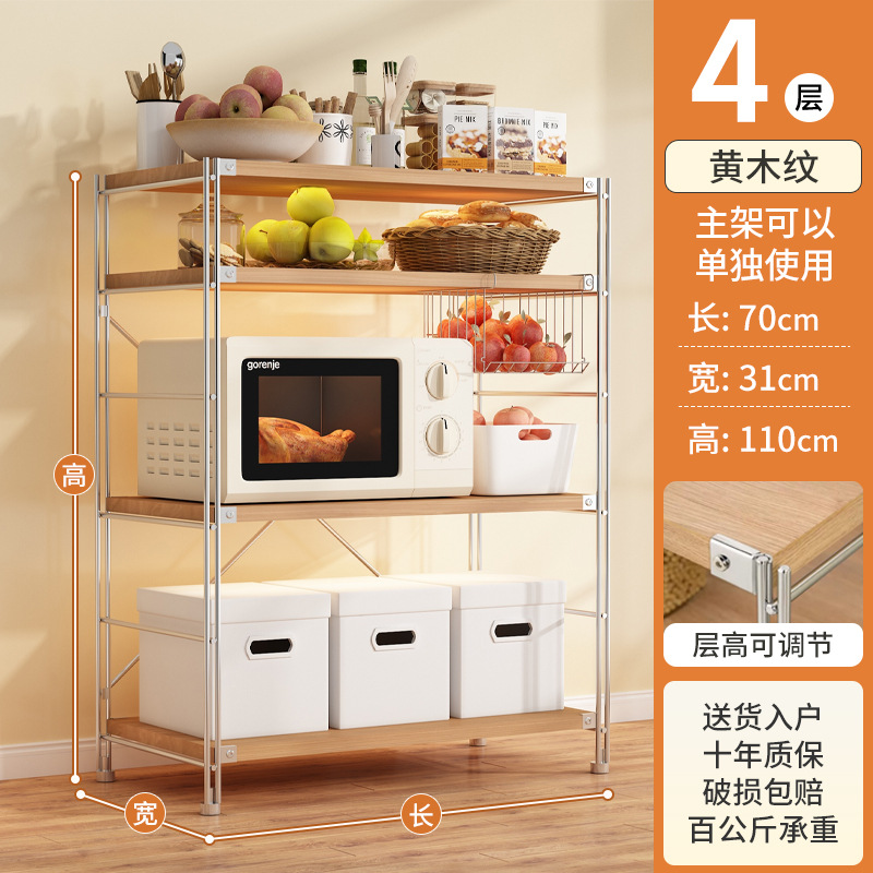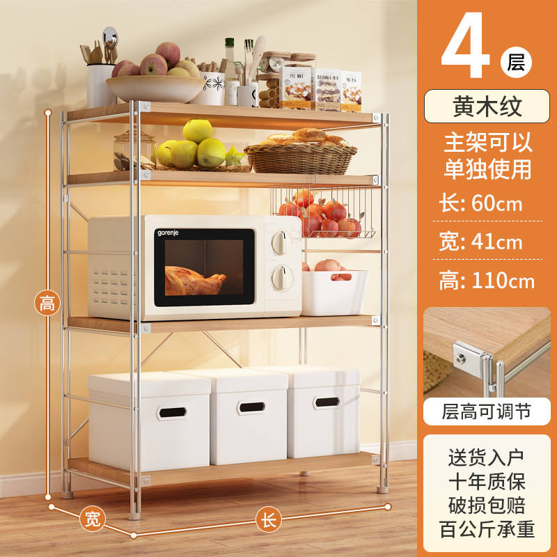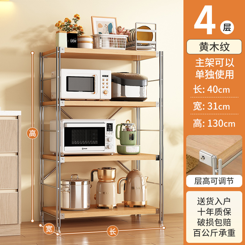 로그 스타일 일본식 주방 스토리지 랙 멀티 레이어 안티 녹 스틸 스토리지 랙 바닥-스탠딩 전자 오븐 스토리지 랙 가정용 선반스토어 가기