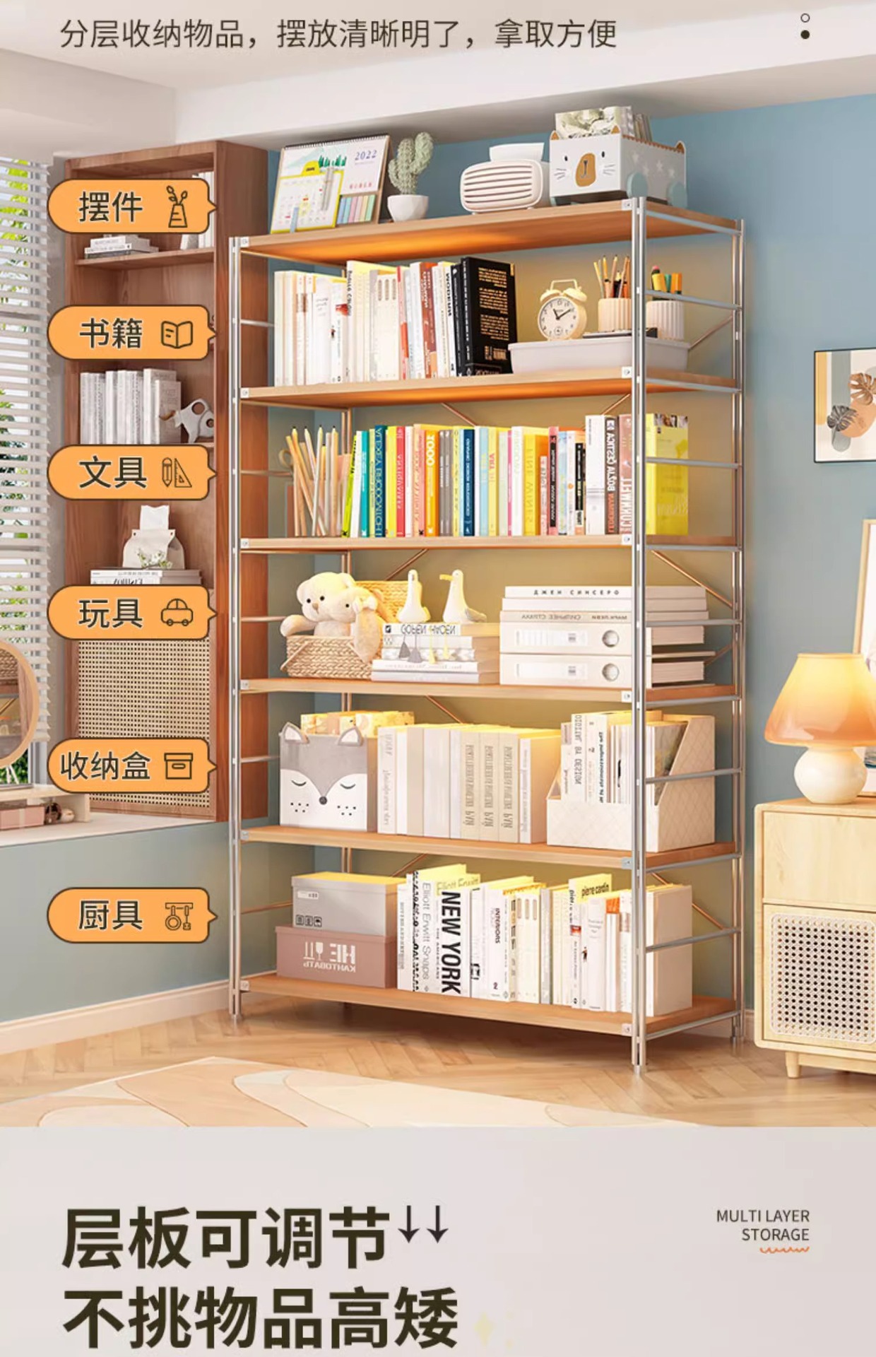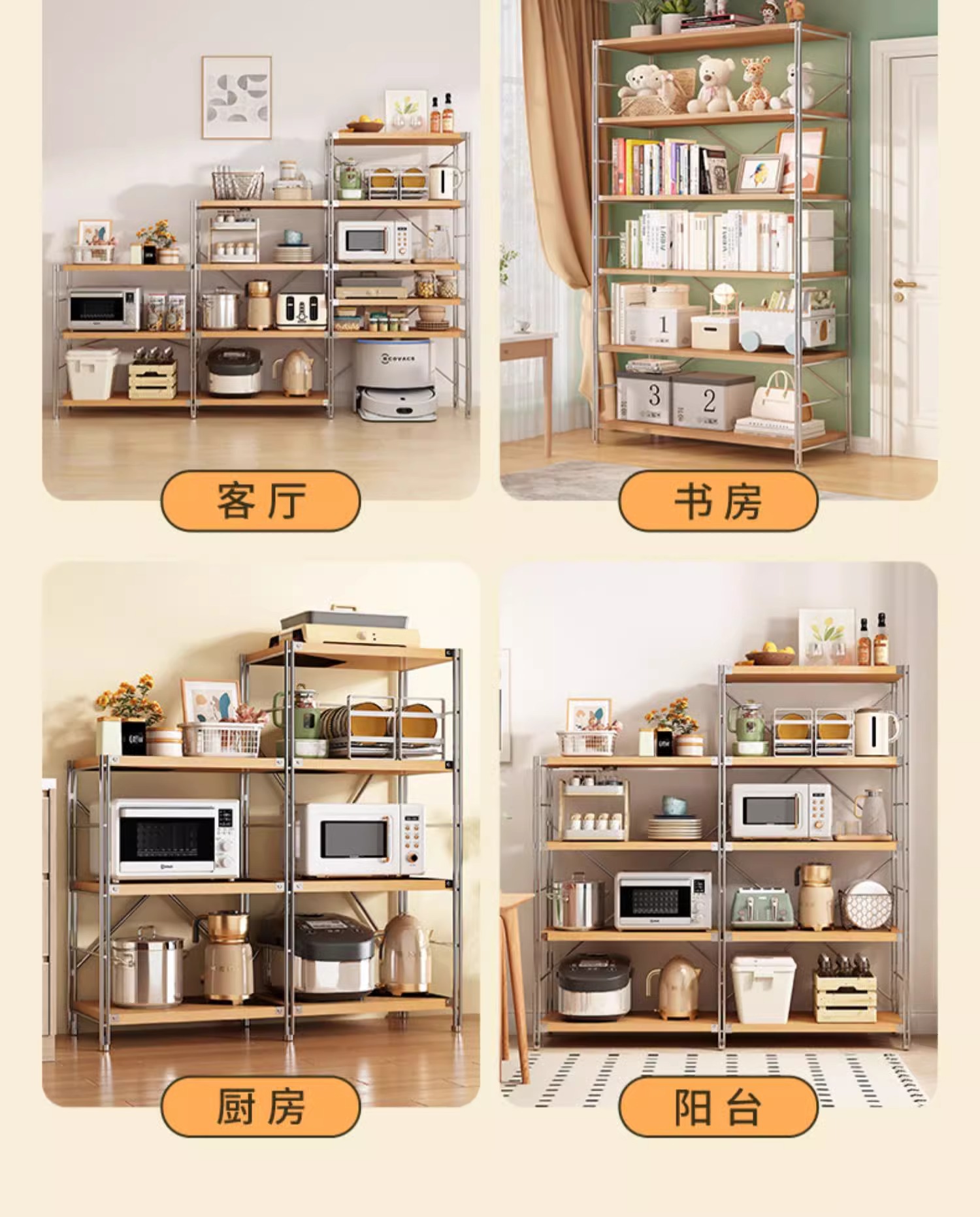 로그 스타일 일본식 주방 스토리지 랙 멀티 레이어 안티 녹 스틸 스토리지 랙 바닥-스탠딩 전자 오븐 스토리지 랙 가정용 선반