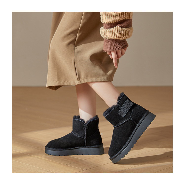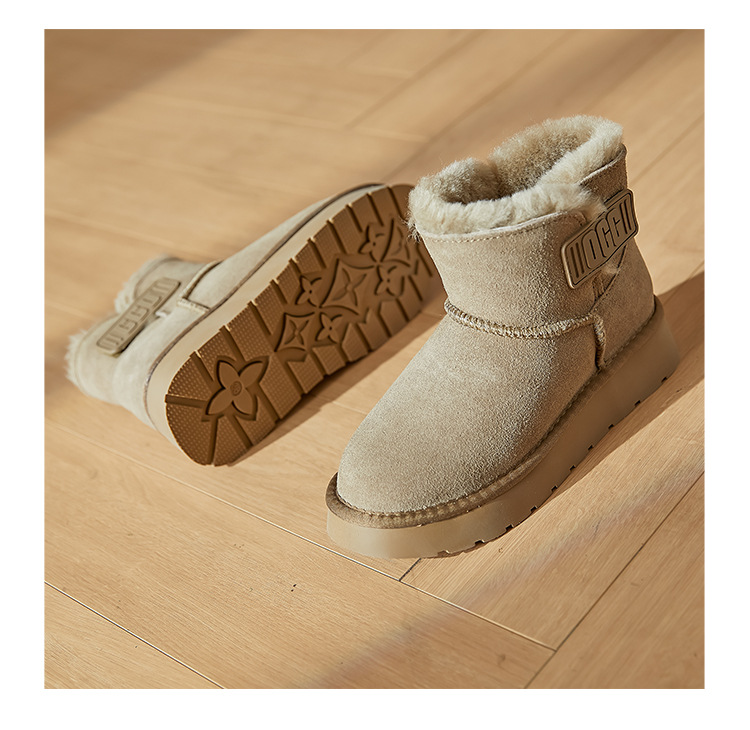 스노우 부츠 여성 2024 겨울 새로운 두꺼운 밑창 양가죽 짧은 부츠 기모 두꺼운 가죽 따뜻한 면화 신발