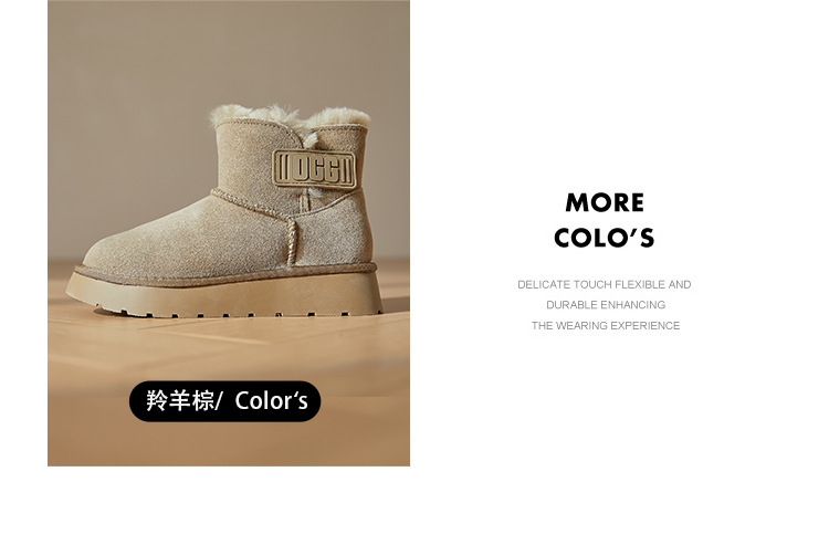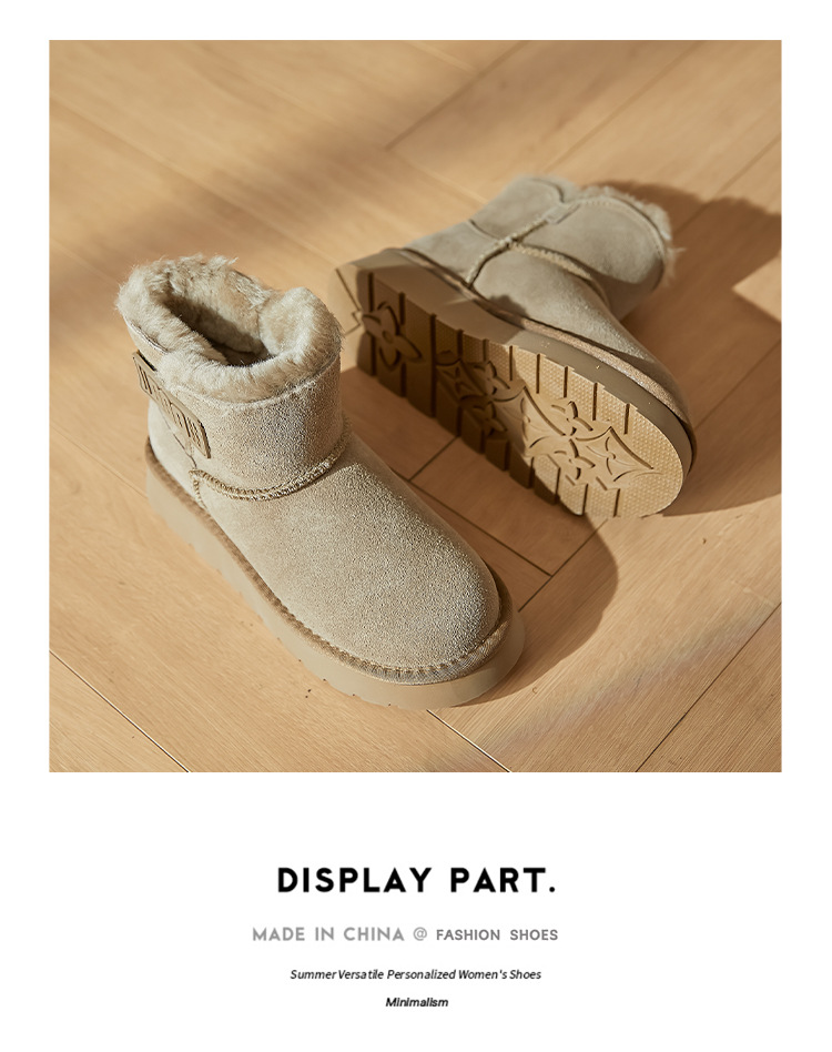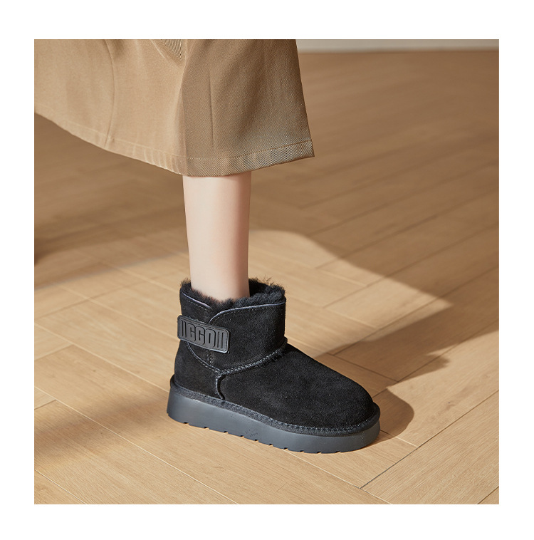 스노우 부츠 여성 2024 겨울 새로운 두꺼운 밑창 양가죽 짧은 부츠 기모 두꺼운 가죽 따뜻한 면화 신발스토어 가기