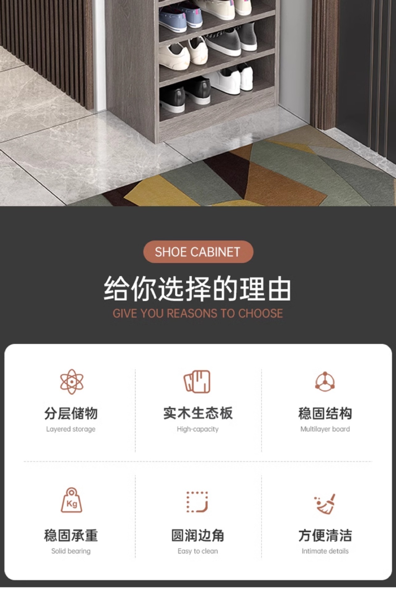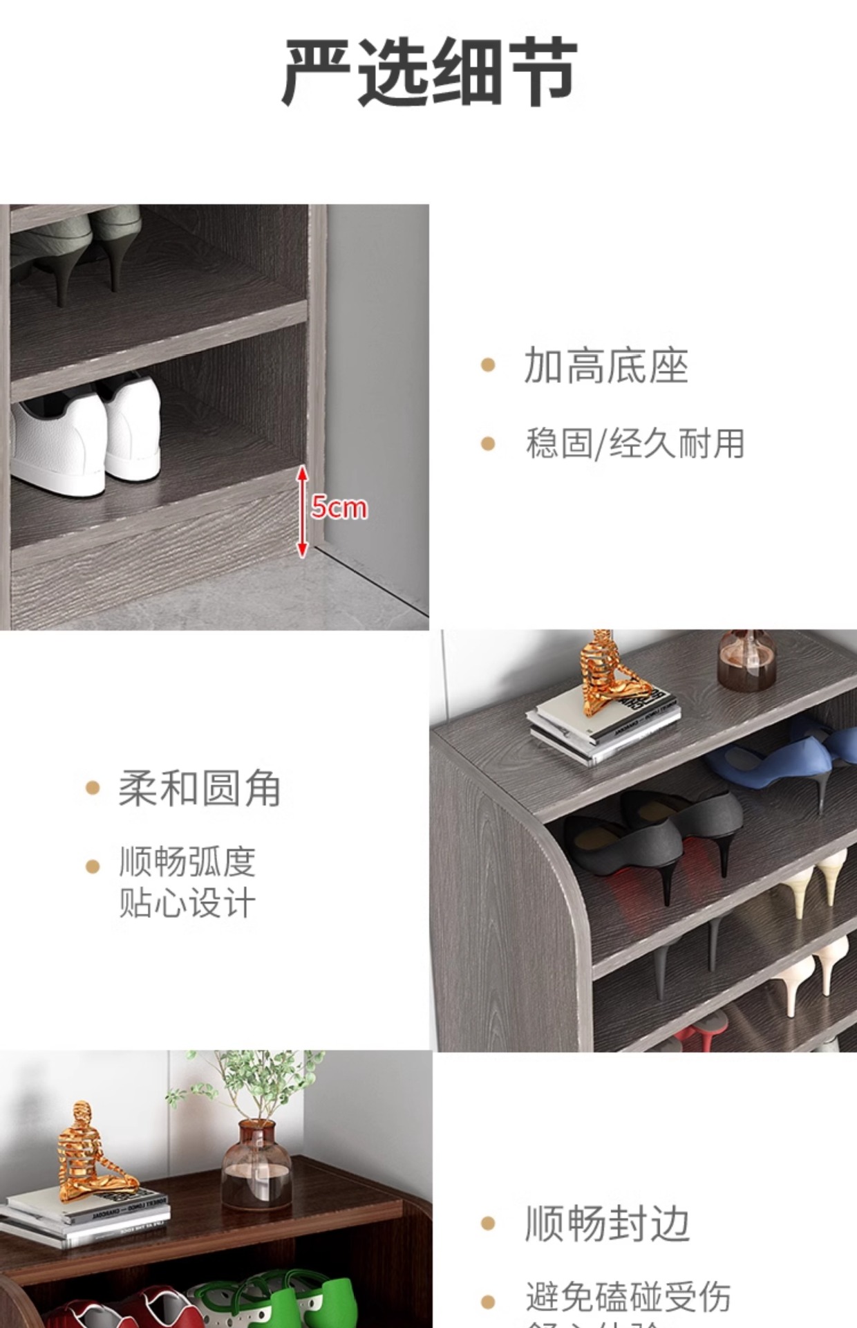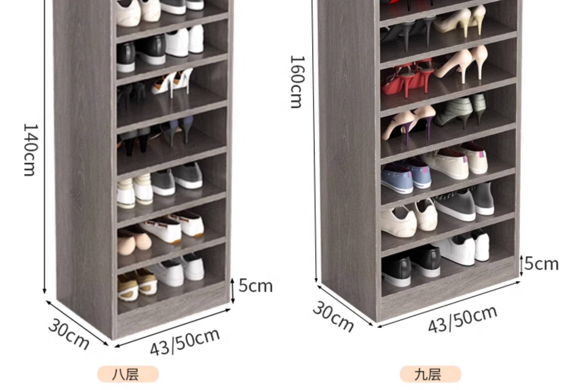 • 업그레이드된 원목 생태보드 [5단 모델] 위층 그레이오크 43*30*80cm