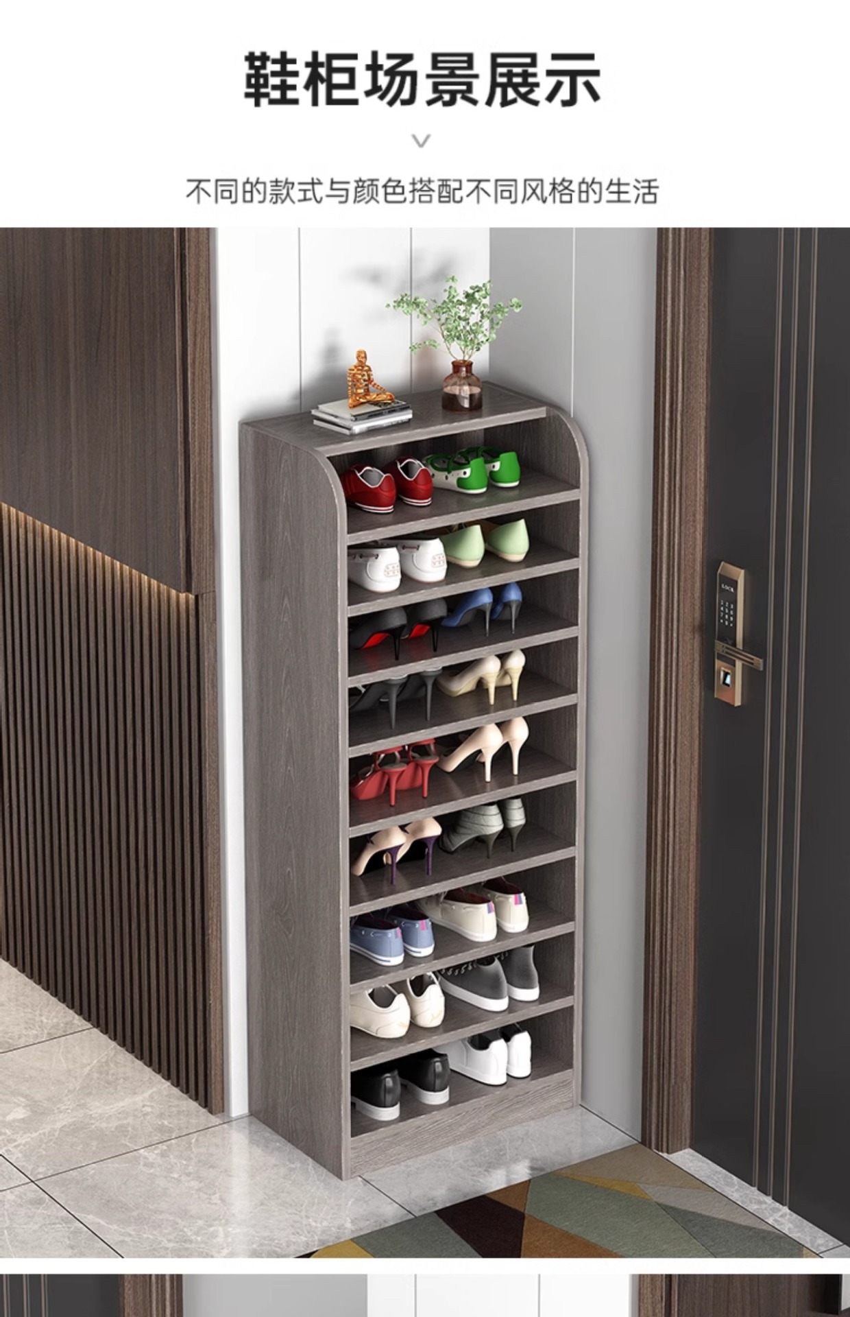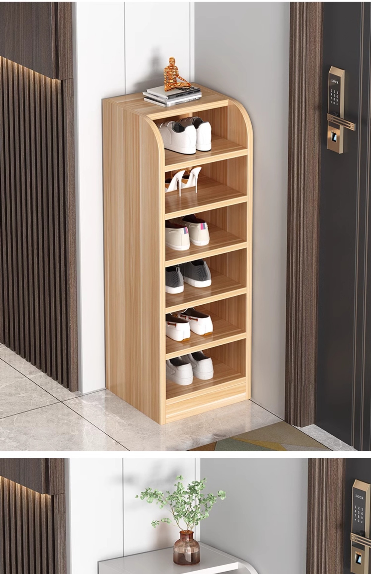 단단한 나무 신발 랙 가정용 현관 작은 코너 좁은 다층 저장 랙 간단한 공간 절약 경제적 인 저장 신발 캐비닛