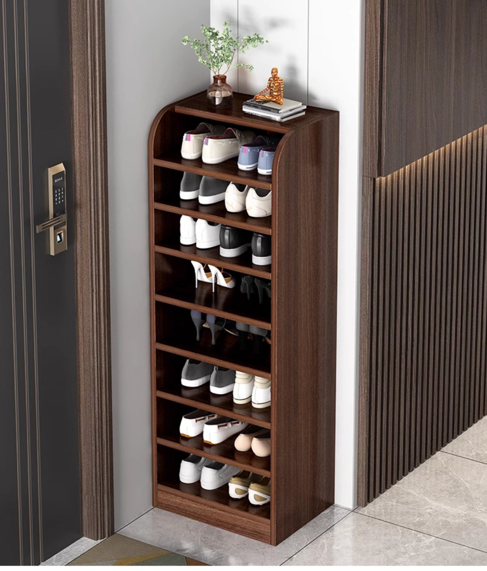 단단한 나무 신발 랙 가정용 현관 작은 코너 좁은 다층 저장 랙 간단한 공간 절약 경제적 인 저장 신발 캐비닛스토어 가기