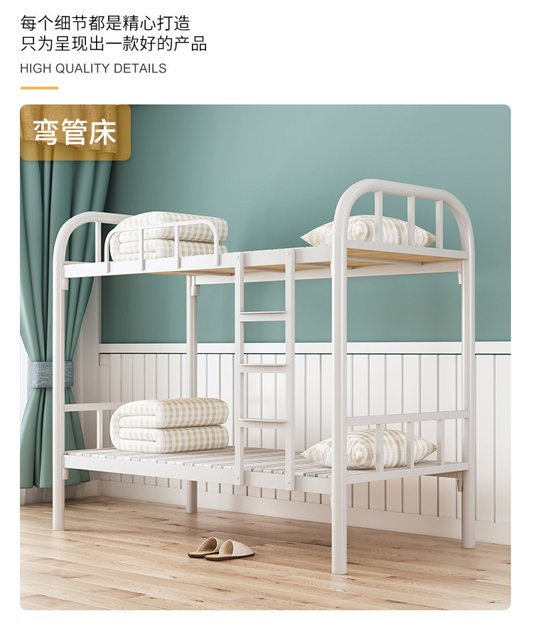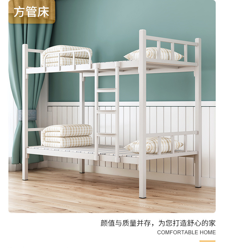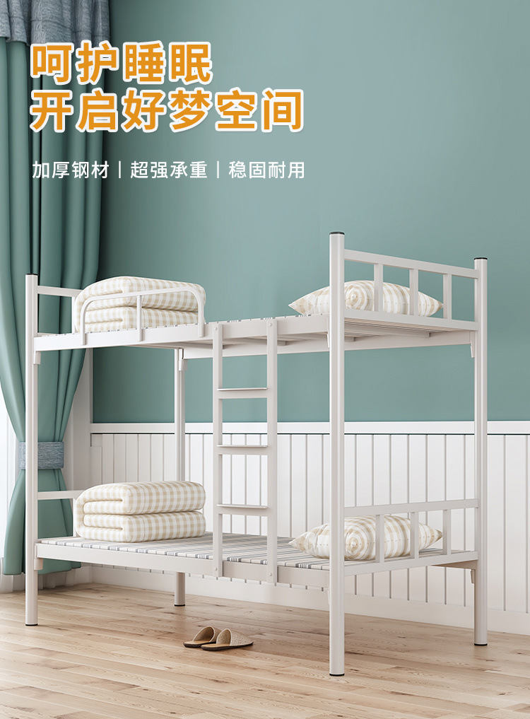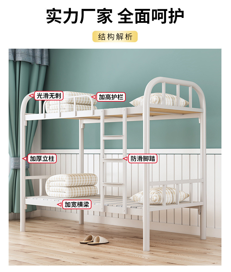상부 및 하부 이층 철제 프레임 침대 상부 및 하부 침대 더블 침대 아이언 침대 높고 낮은 학생 기숙사 침대 2 층 두꺼운 직원 침대 프레임