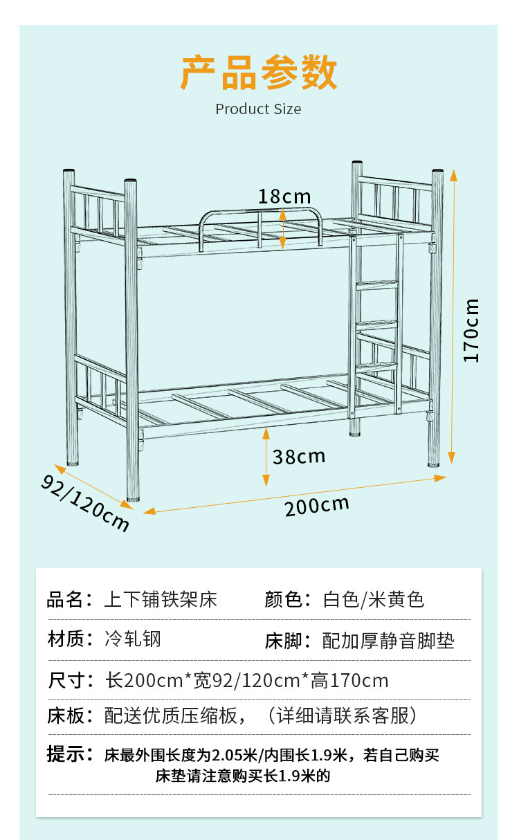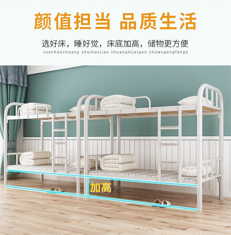 상부 및 하부 이층 철제 프레임 침대 상부 및 하부 침대 더블 침대 아이언 침대 높고 낮은 학생 기숙사 침대 2 층 두꺼운 직원 침대 프레임스토어 가기