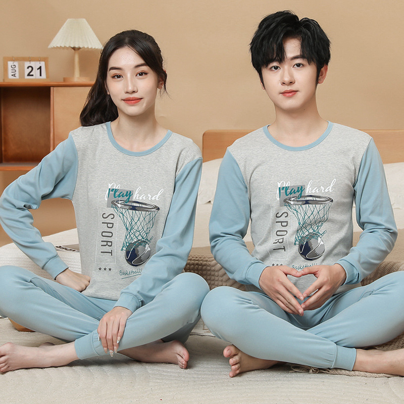 소년 소녀 순면 가을 옷과 바지 세트 청소년 어린이 플러스 사이즈 속옷 중고등 및 고등아동베이스 셔츠 파자마