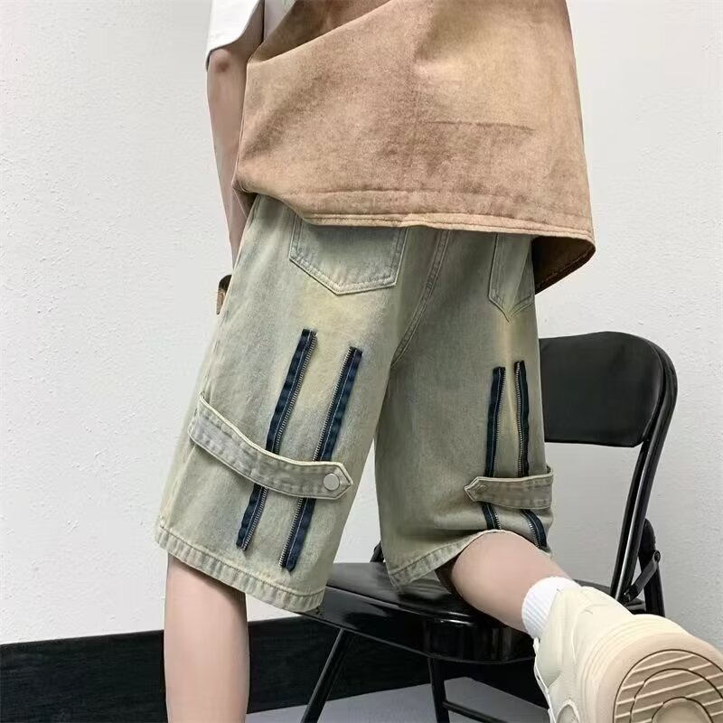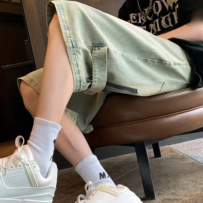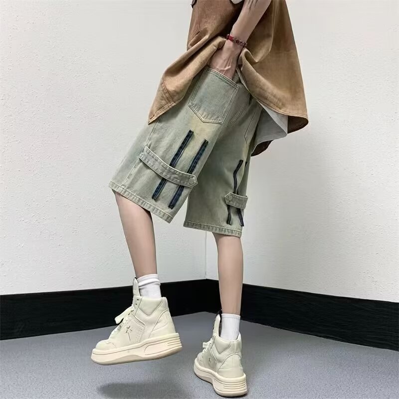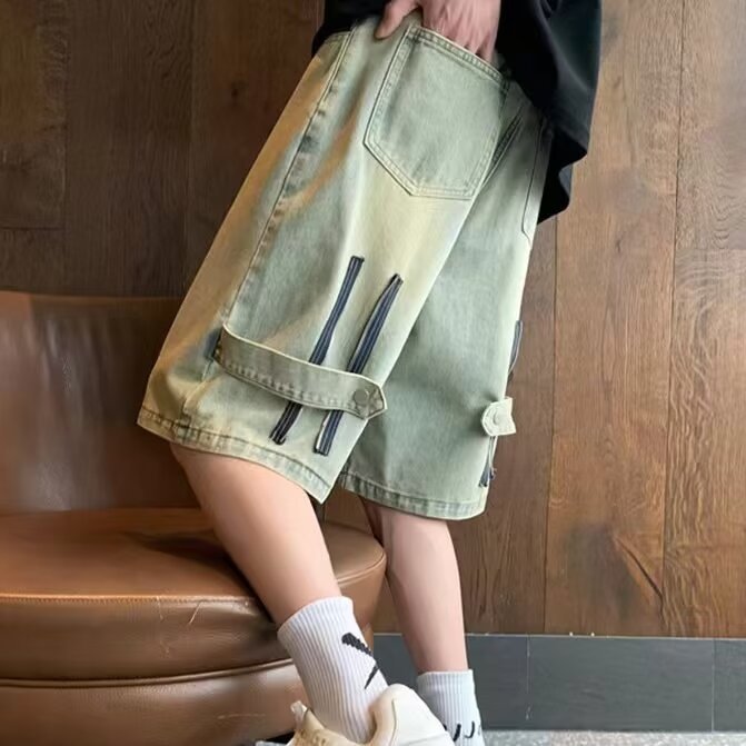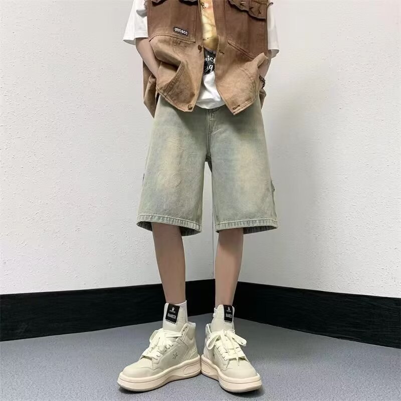 옐로우 클레이 데님 반바지 남성 여름 미국 스타일 하이 스트리트 얇은 스트레이트 바지 트렌디 한 브랜드 새로운 스타일 잘 생긴 느슨한 캐주얼 바지스토어 가기