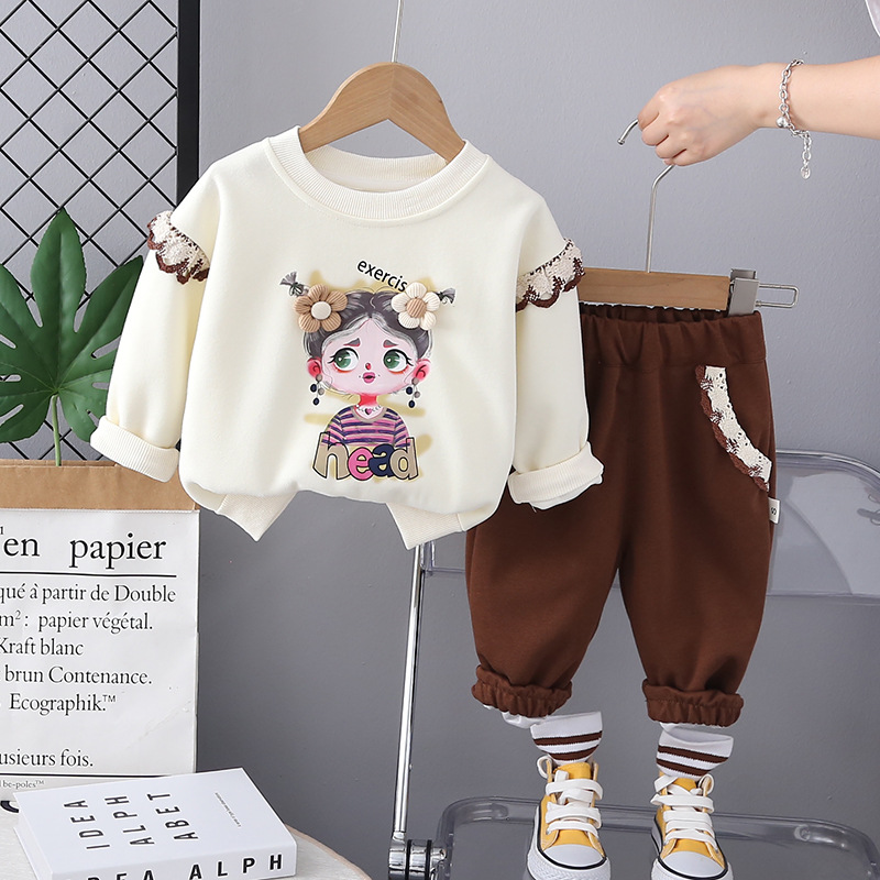 가을 새로운 풀오버 땀 세트 새로운 서양식 봄 어린이와 소녀 인터넷 축하 땀 스포츠 투피스 세트