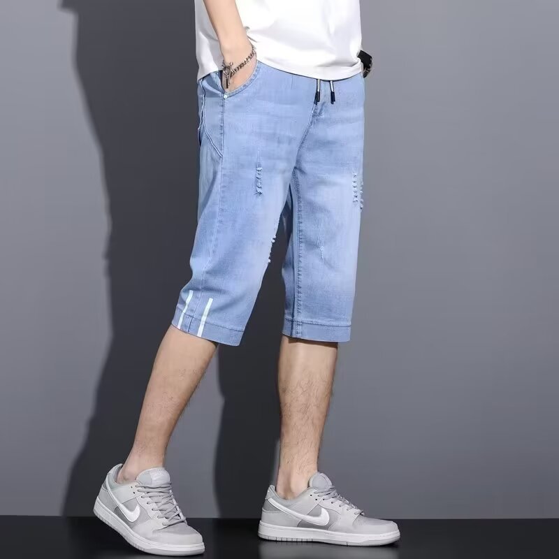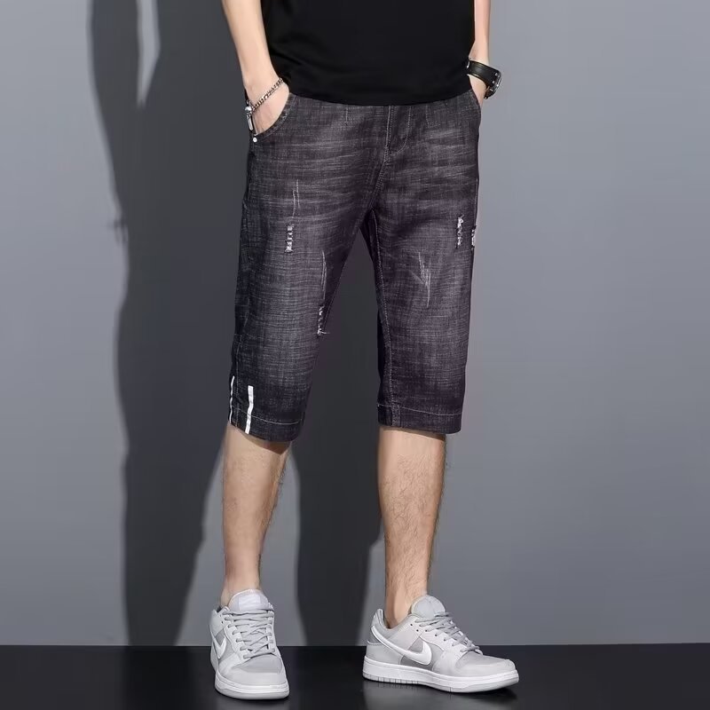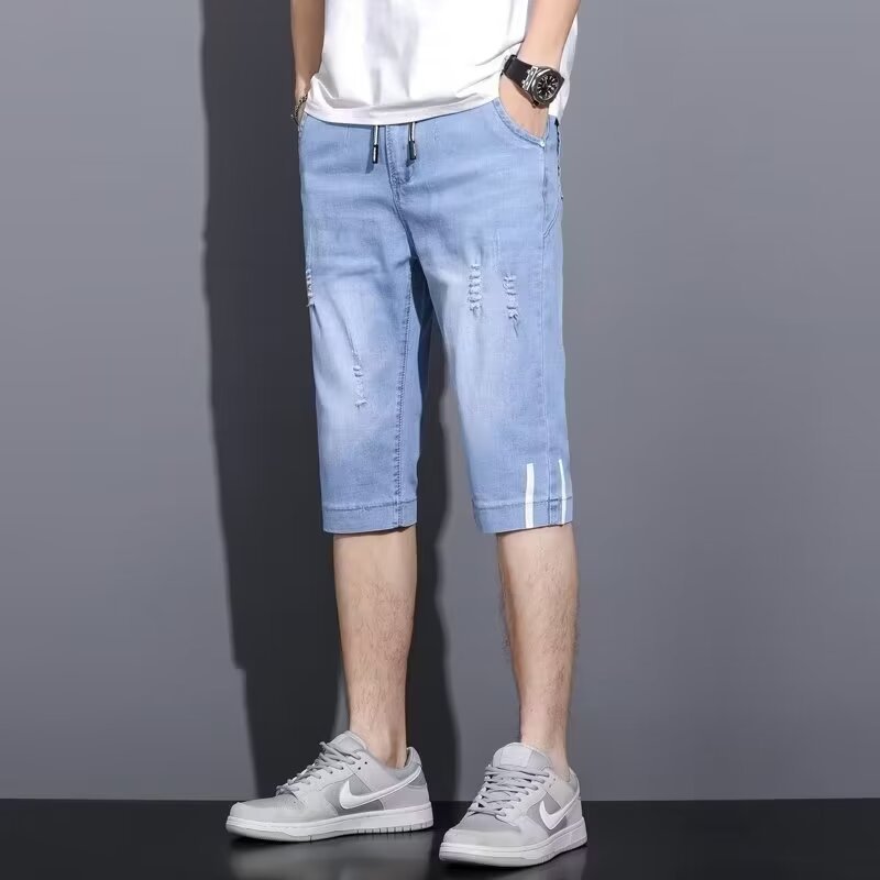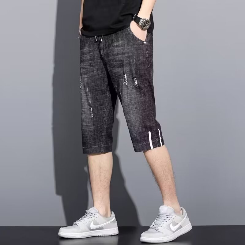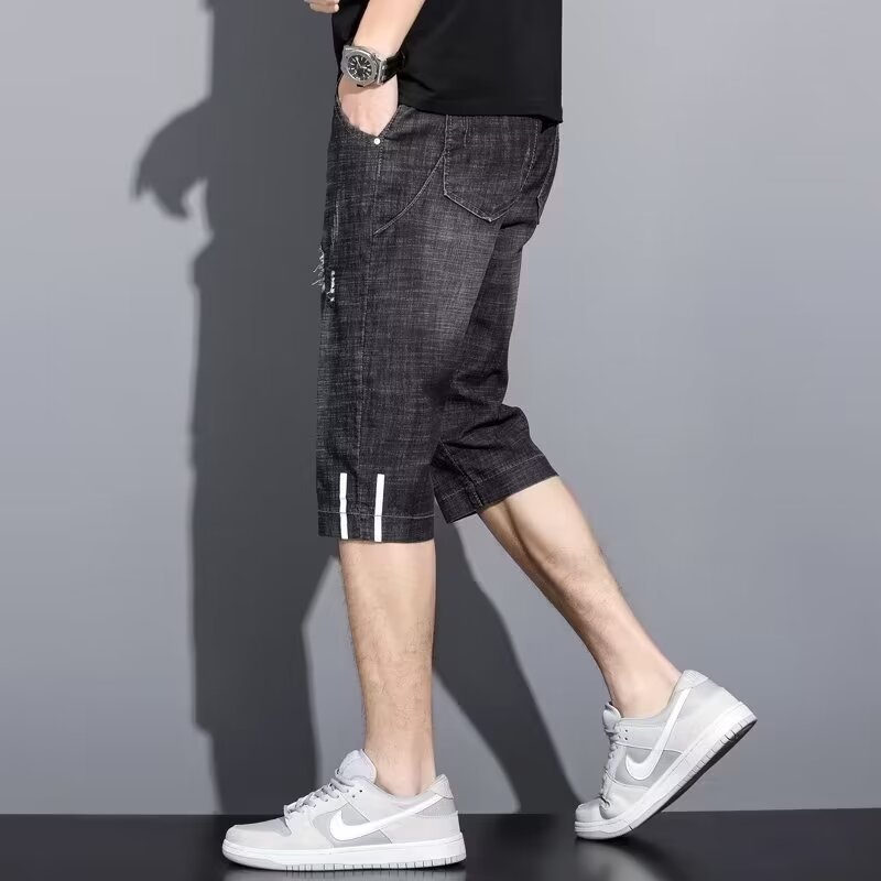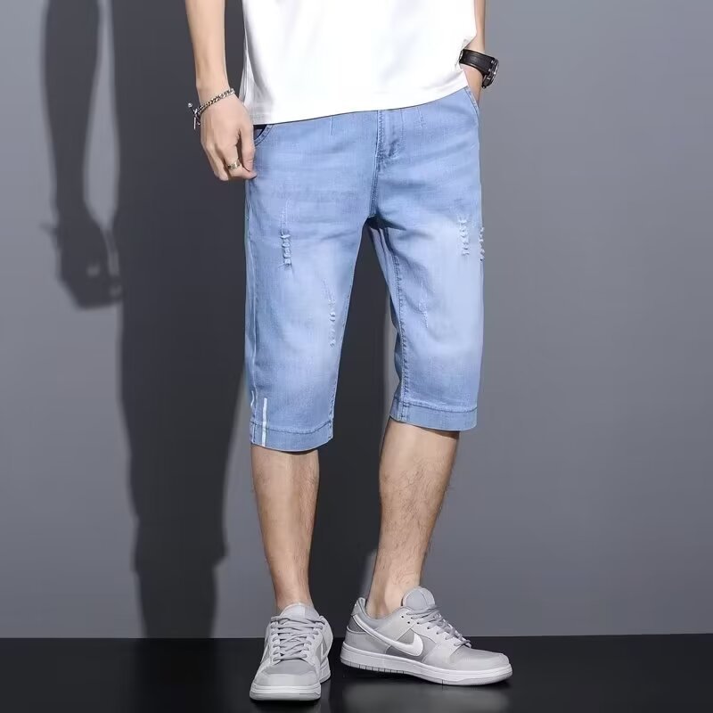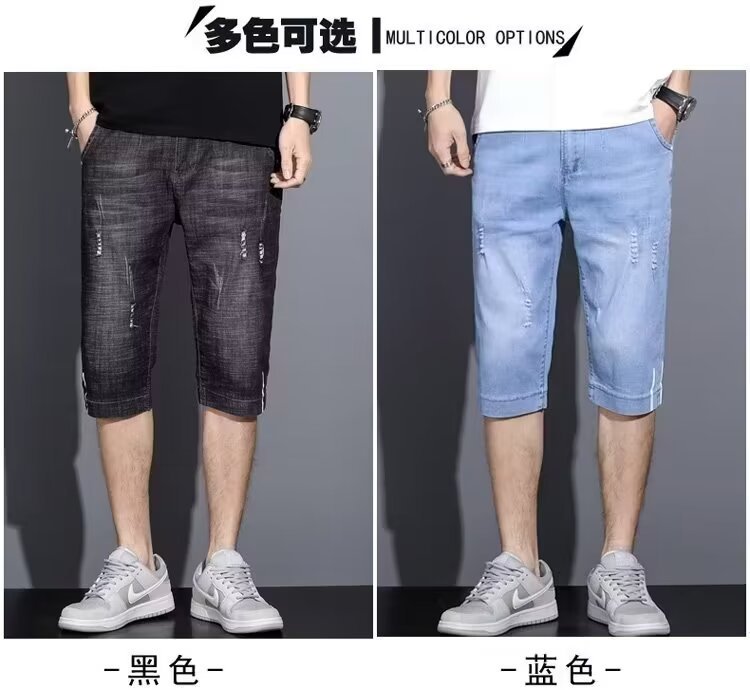 2022 년 뉴 데님 반바지 남자 카프리 바지 여름 얇은 느슨한 유행 브랜드 올 매치 리핑 바지 바지스토어 가기