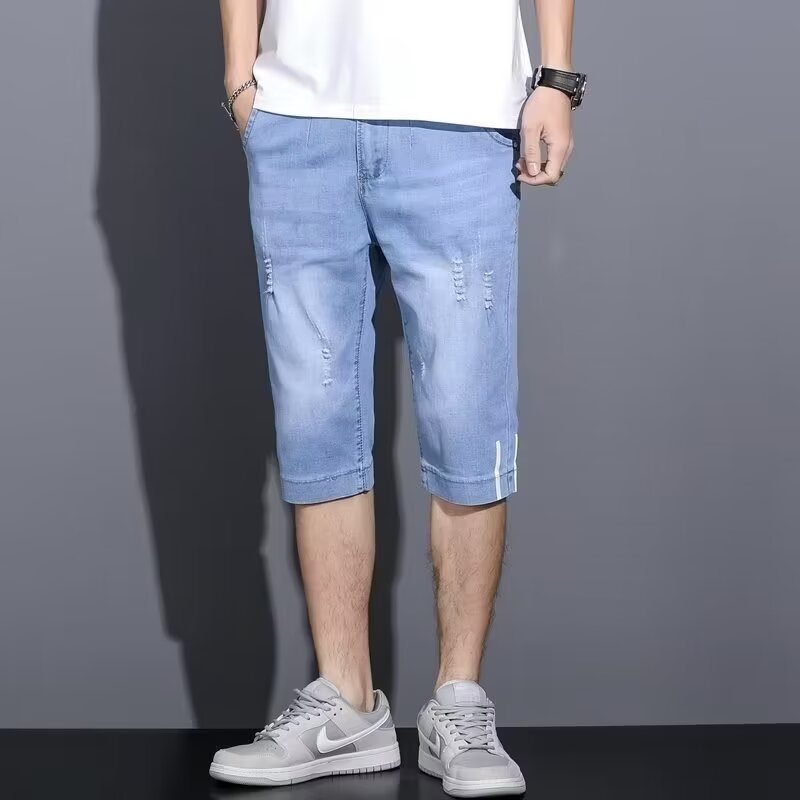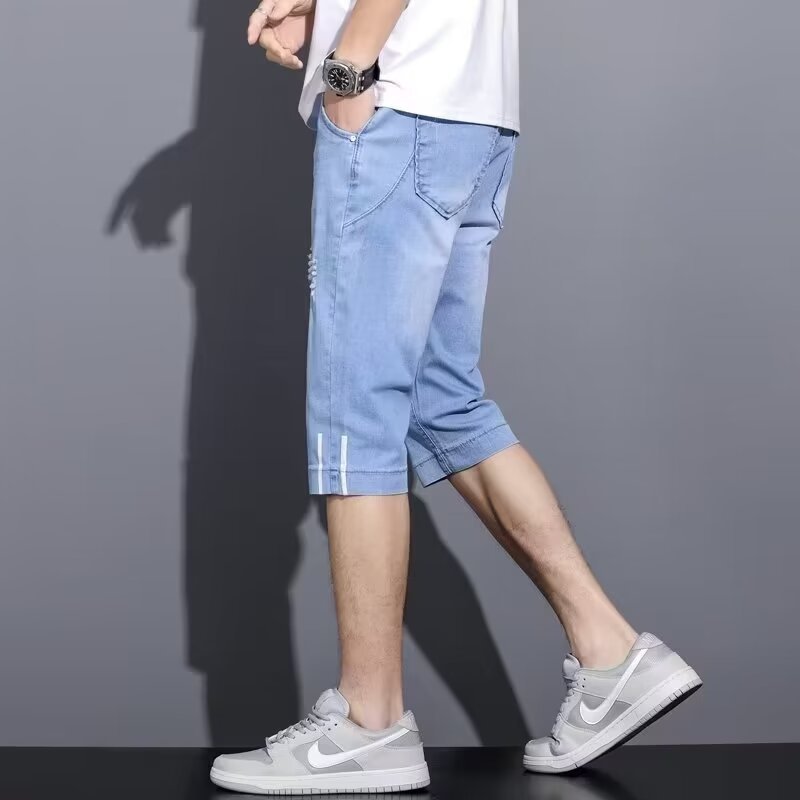 2022 년 뉴 데님 반바지 남자 카프리 바지 여름 얇은 느슨한 유행 브랜드 올 매치 리핑 바지 바지
