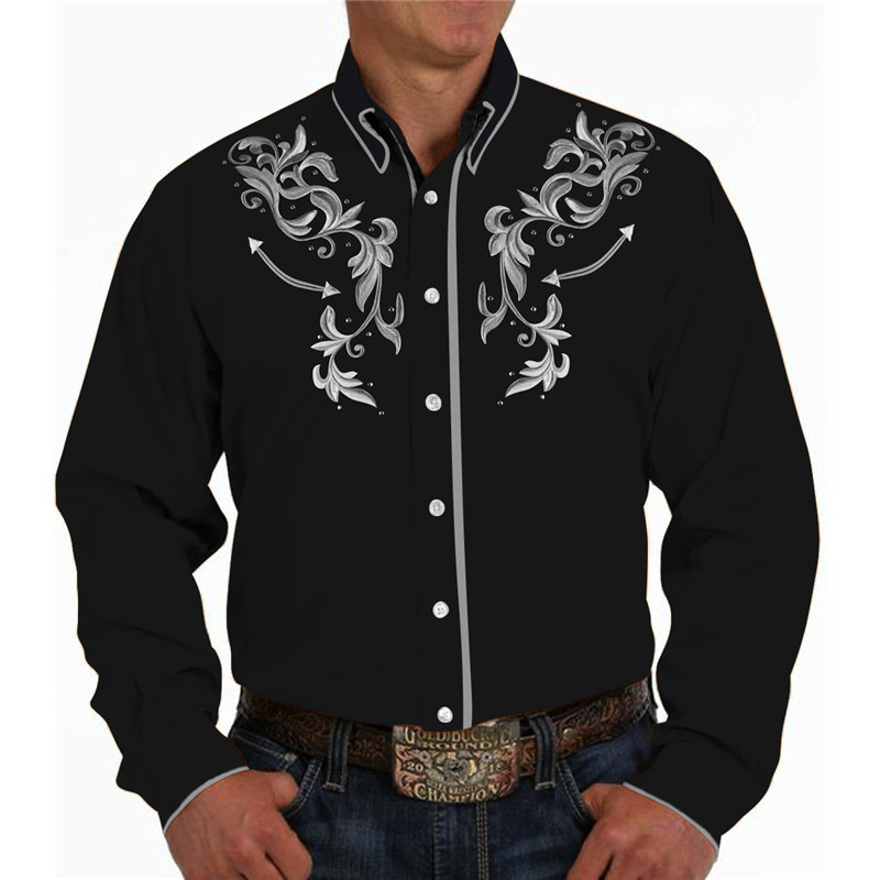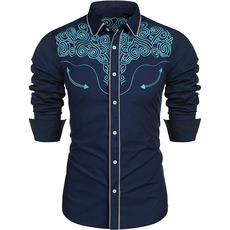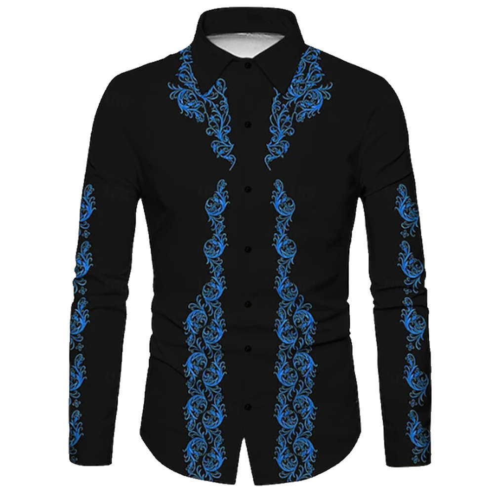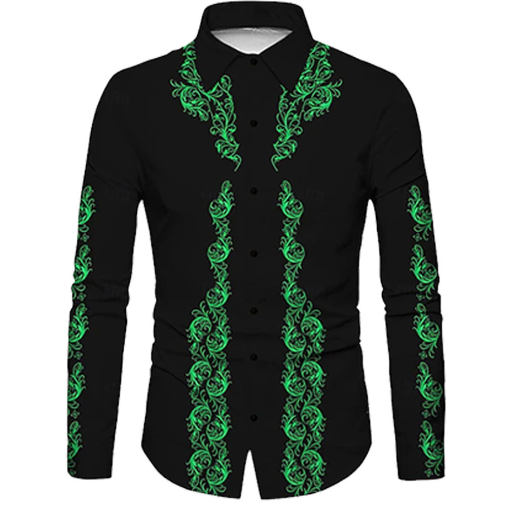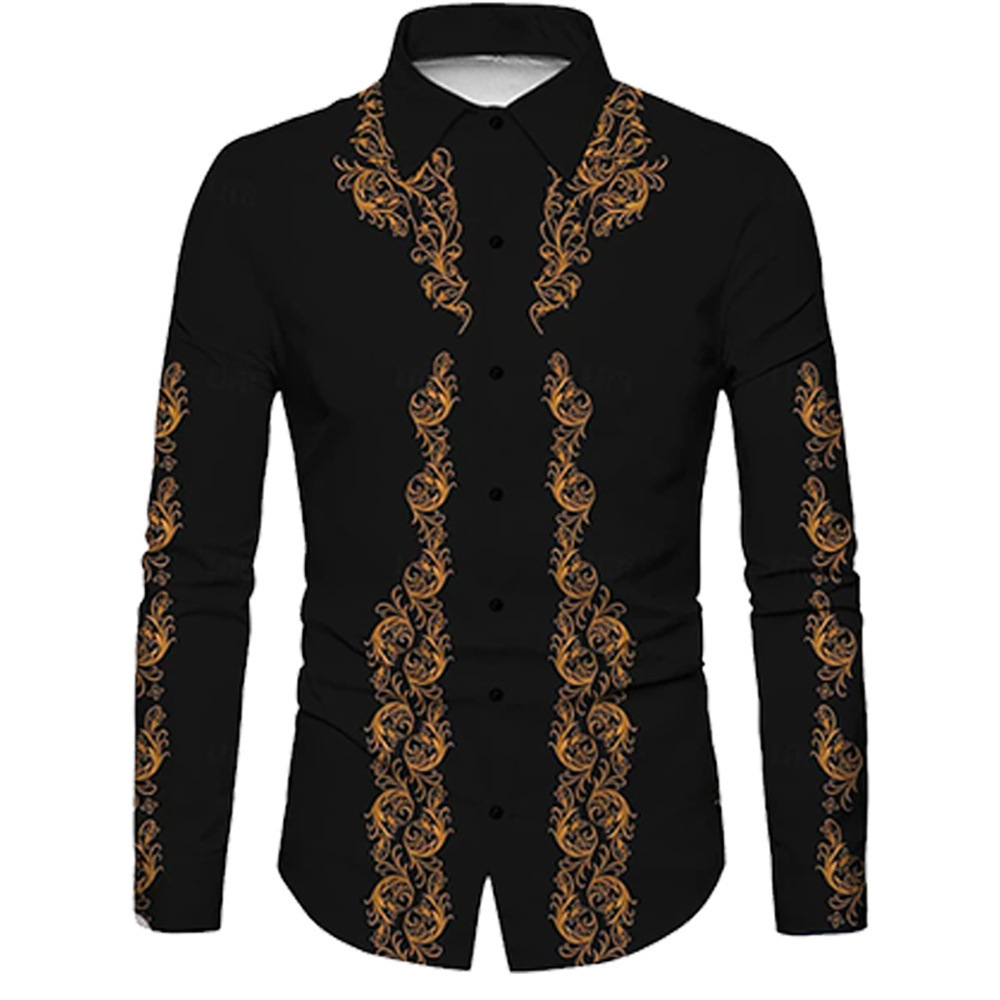 새로운 레트로 남자의 긴 소매 셔츠 캐주얼 얇은 패션 패턴 셔츠 톱 2024 AliExpress 핫 남성