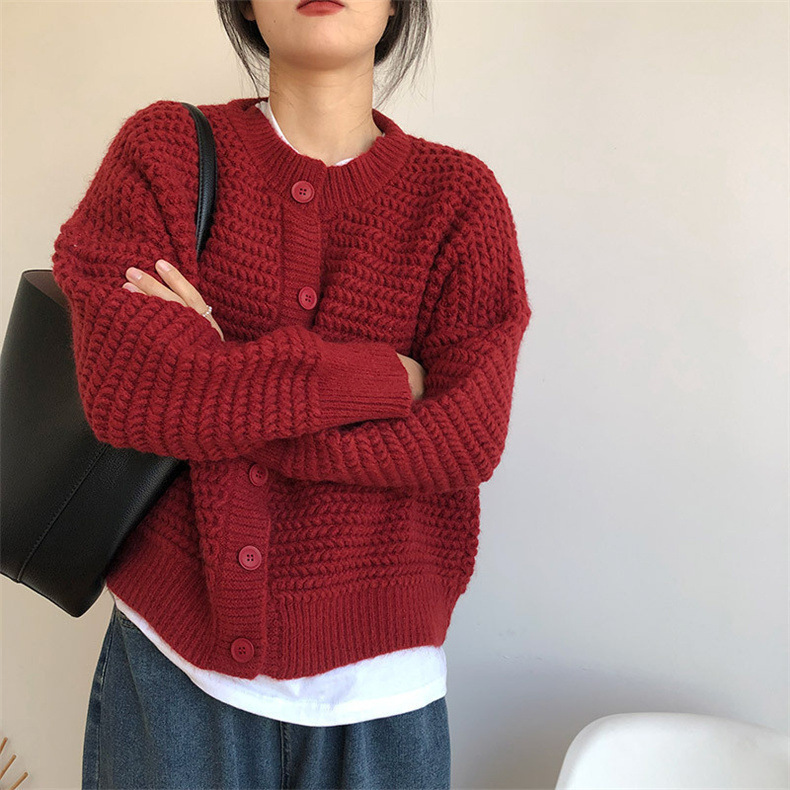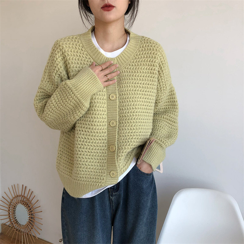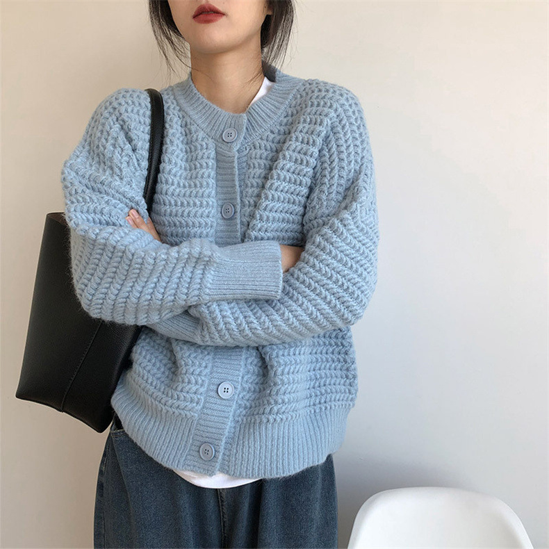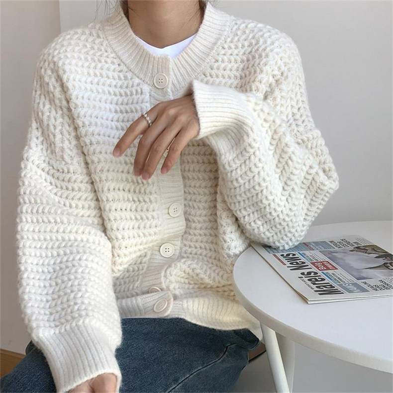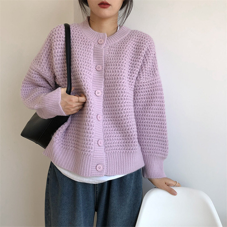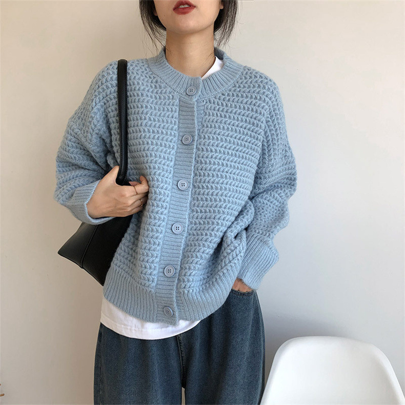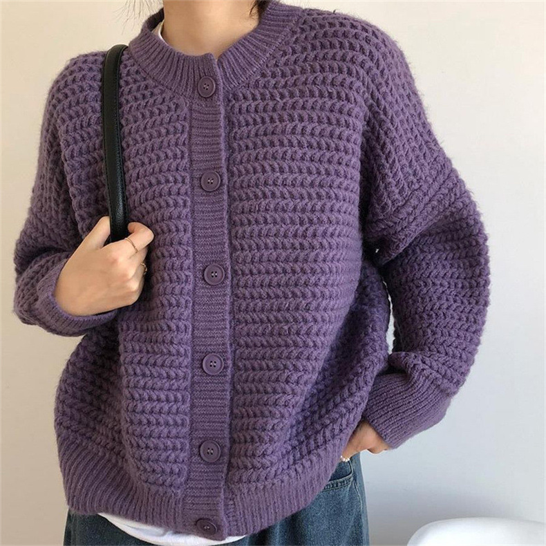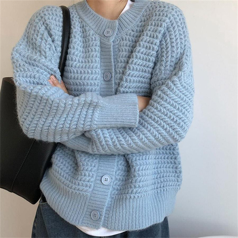 2025년 신상 가을 겨울 루즈핏 스웨터 여성용 단색 니트 가디건 심플한 해외 무역 여성복 달콤한 스타일스토어 가기