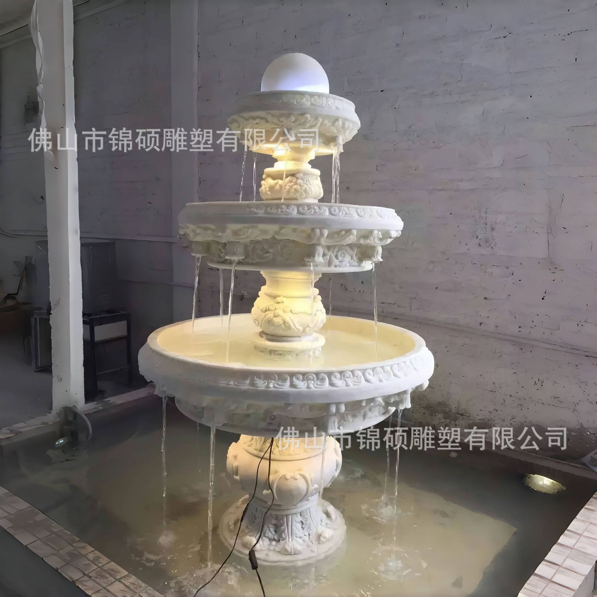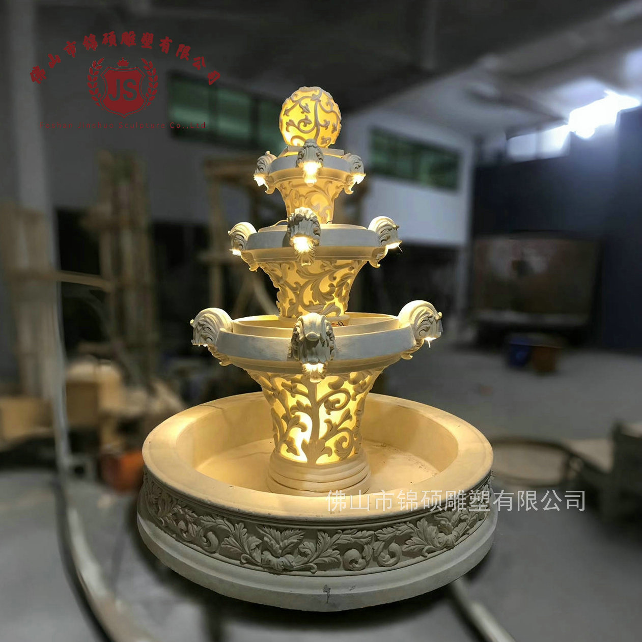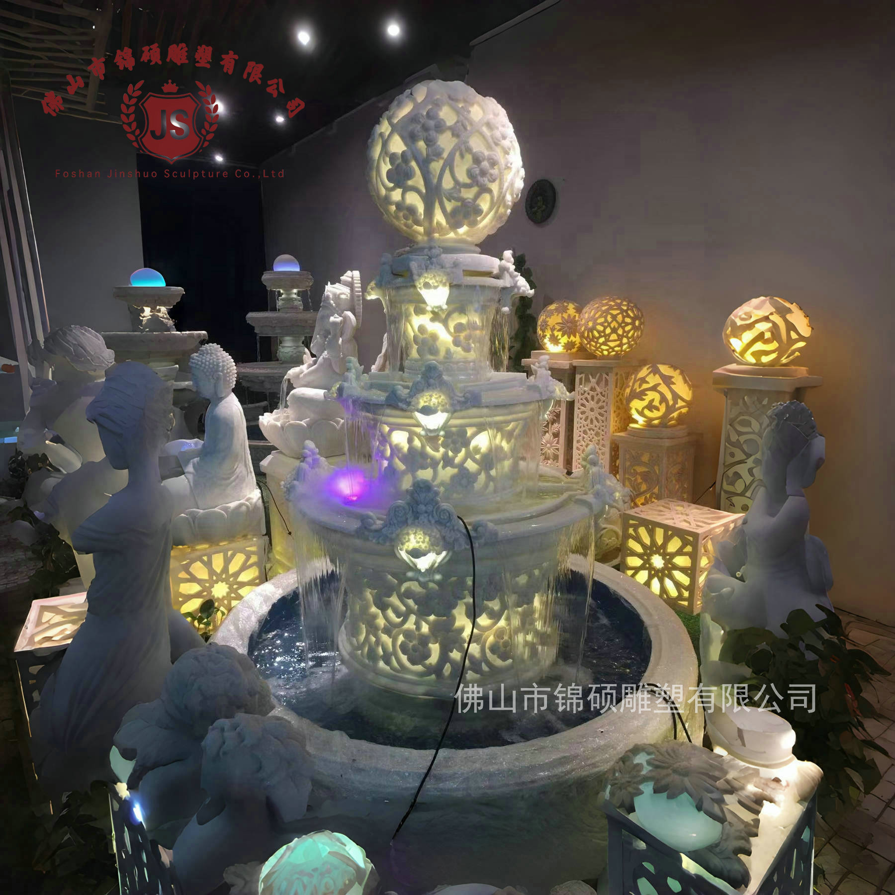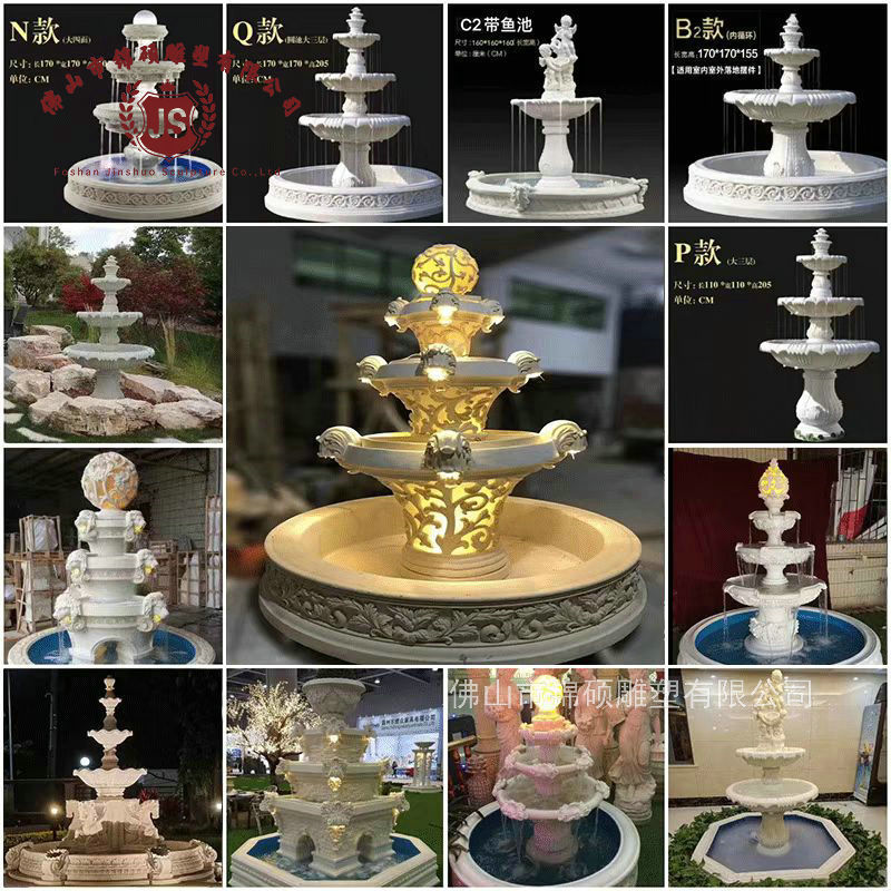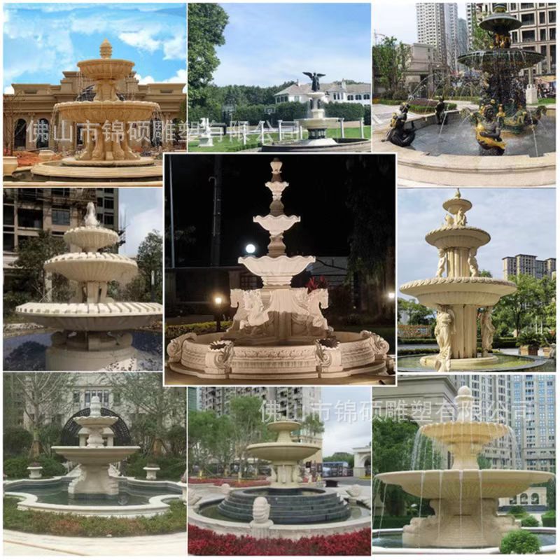 절묘한 사암 조각 분수 실내 창조적 인 유럽 물 풍경 장식 조명 풍경 장식 분수