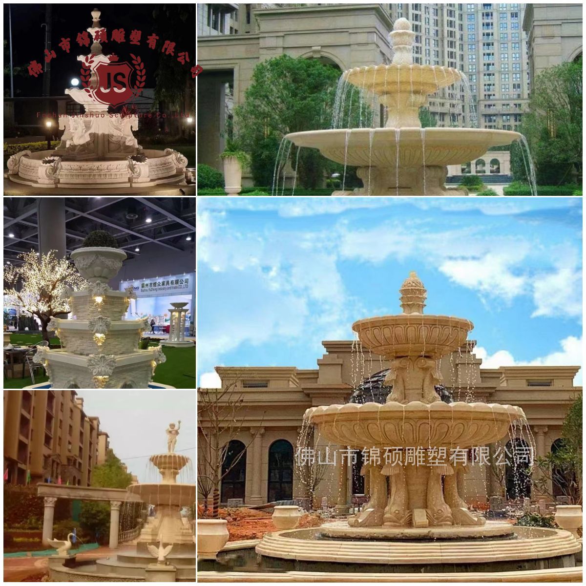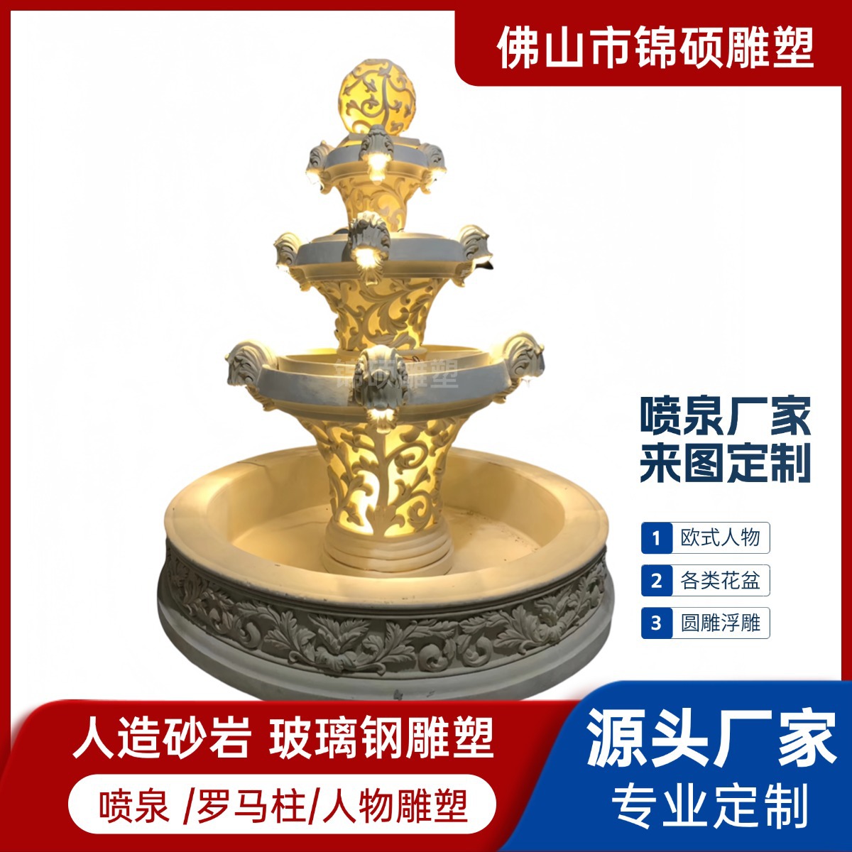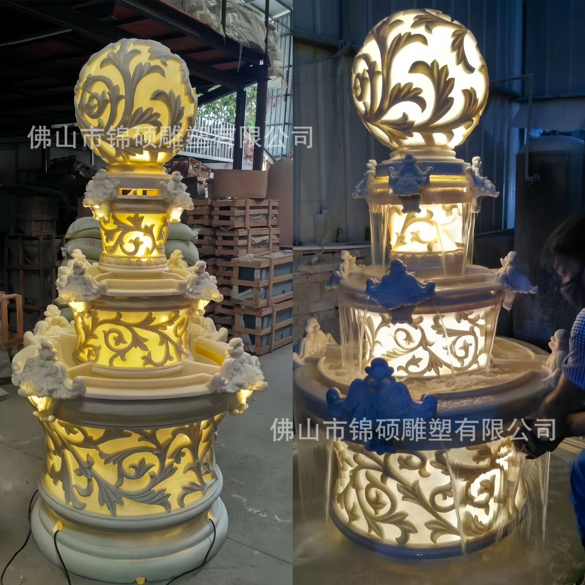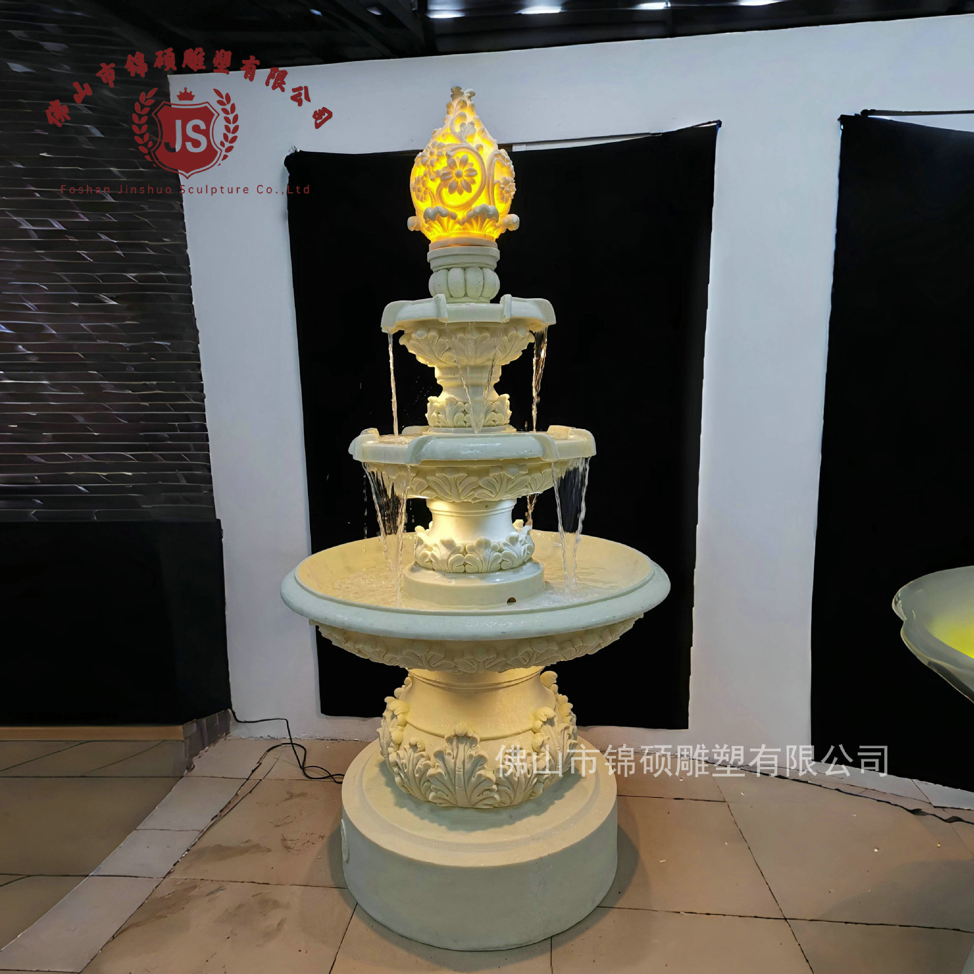 절묘한 사암 조각 분수 실내 창조적 인 유럽 물 풍경 장식 조명 풍경 장식 분수
