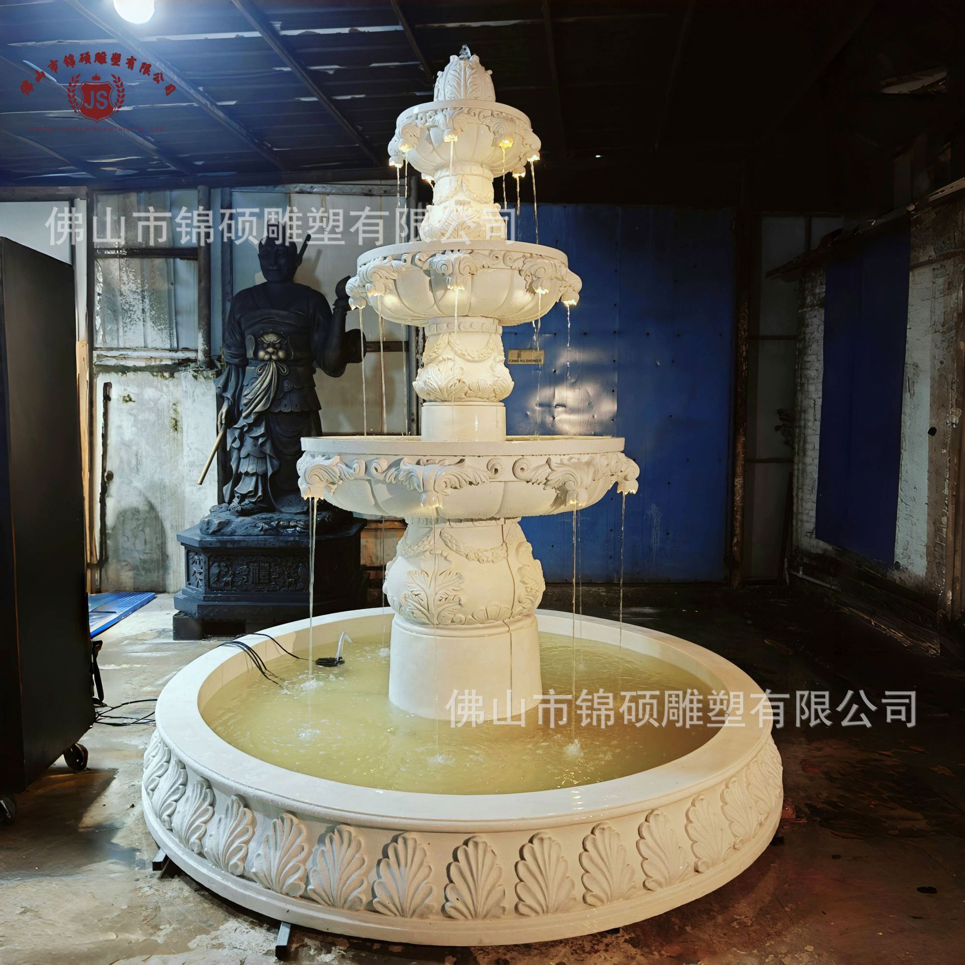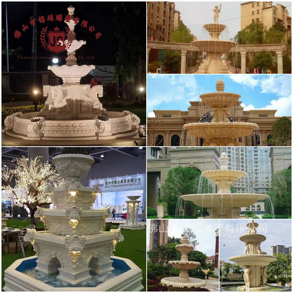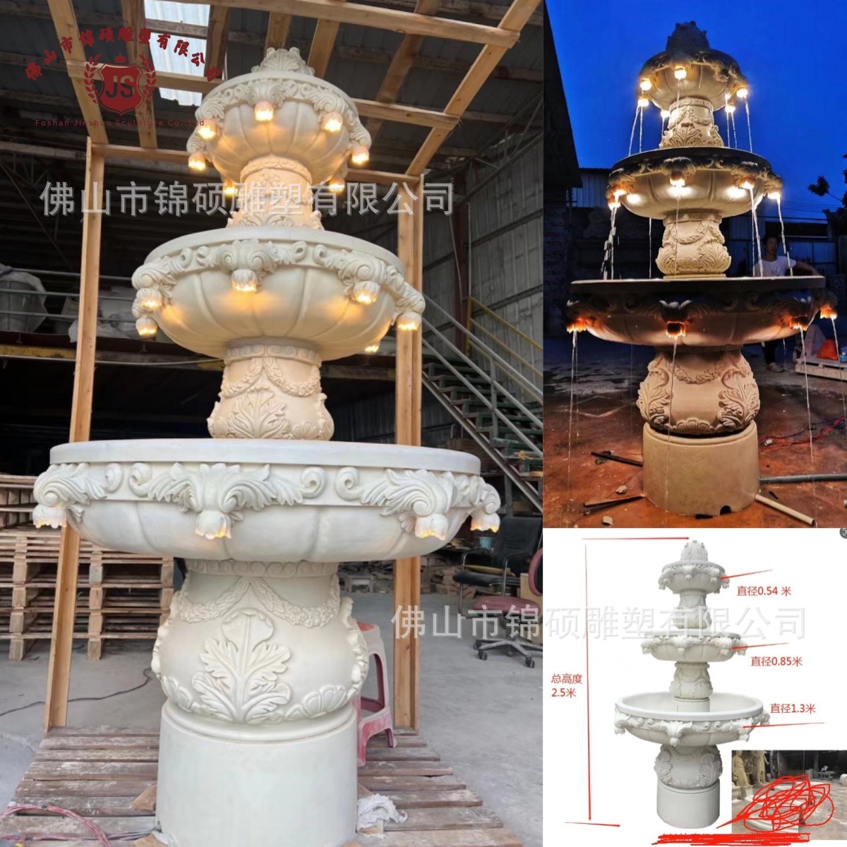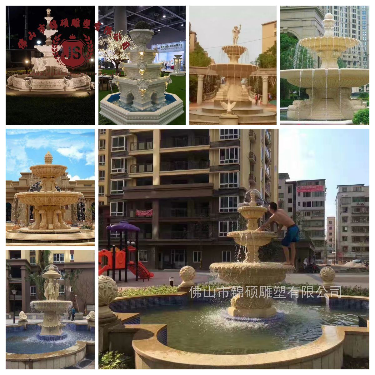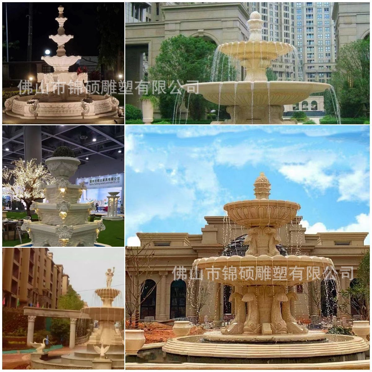 절묘한 사암 조각 분수 실내 창조적 인 유럽 물 풍경 장식 조명 풍경 장식 분수