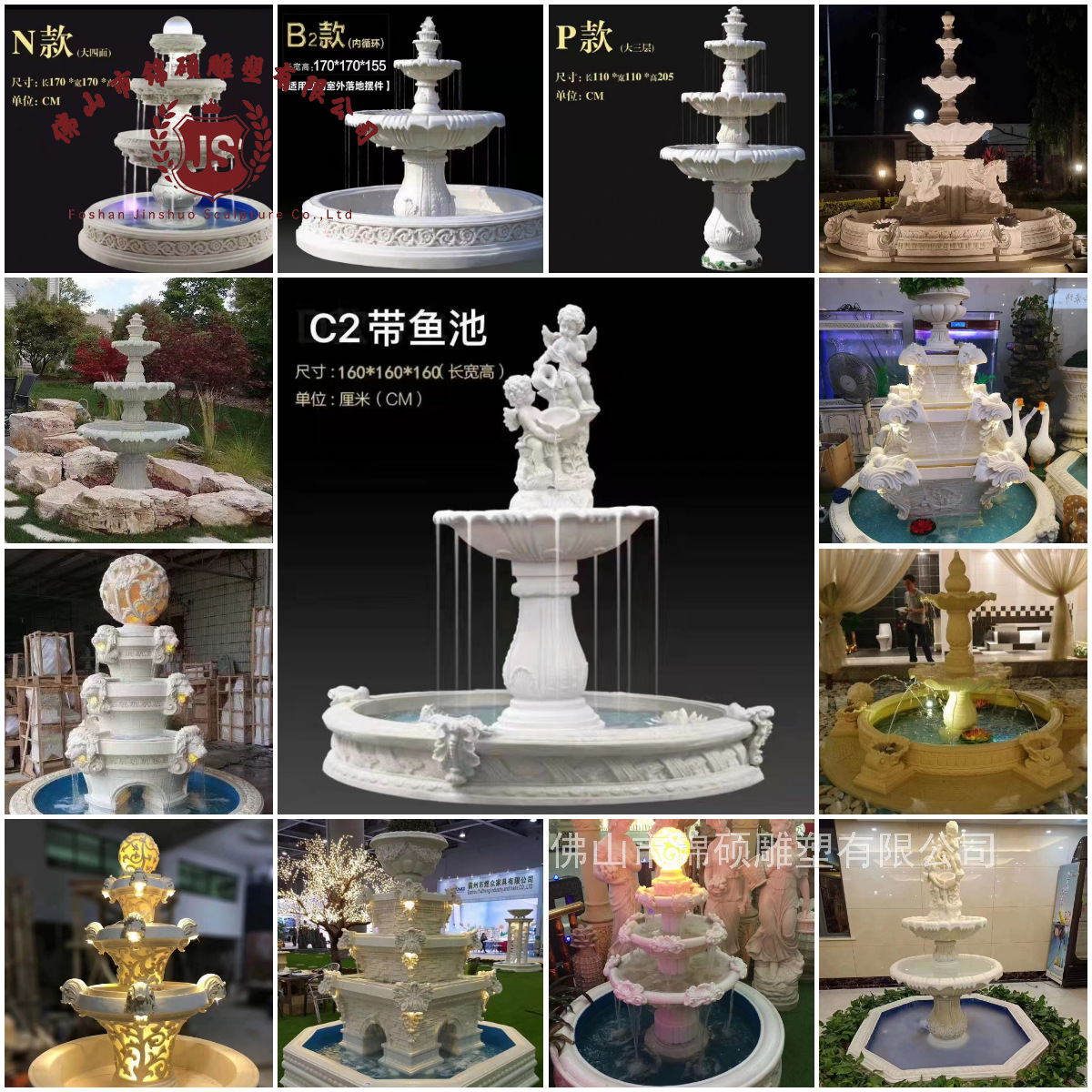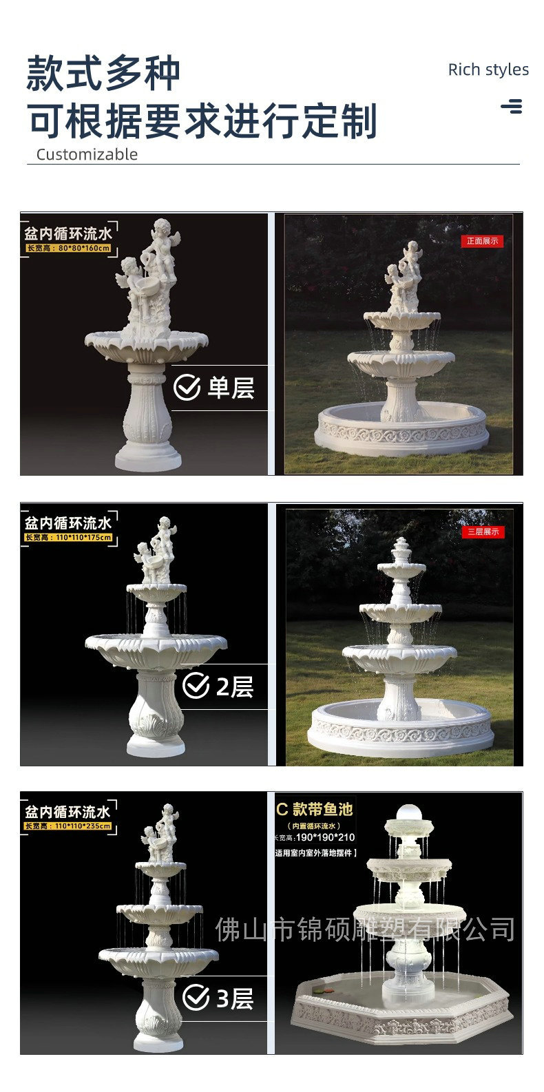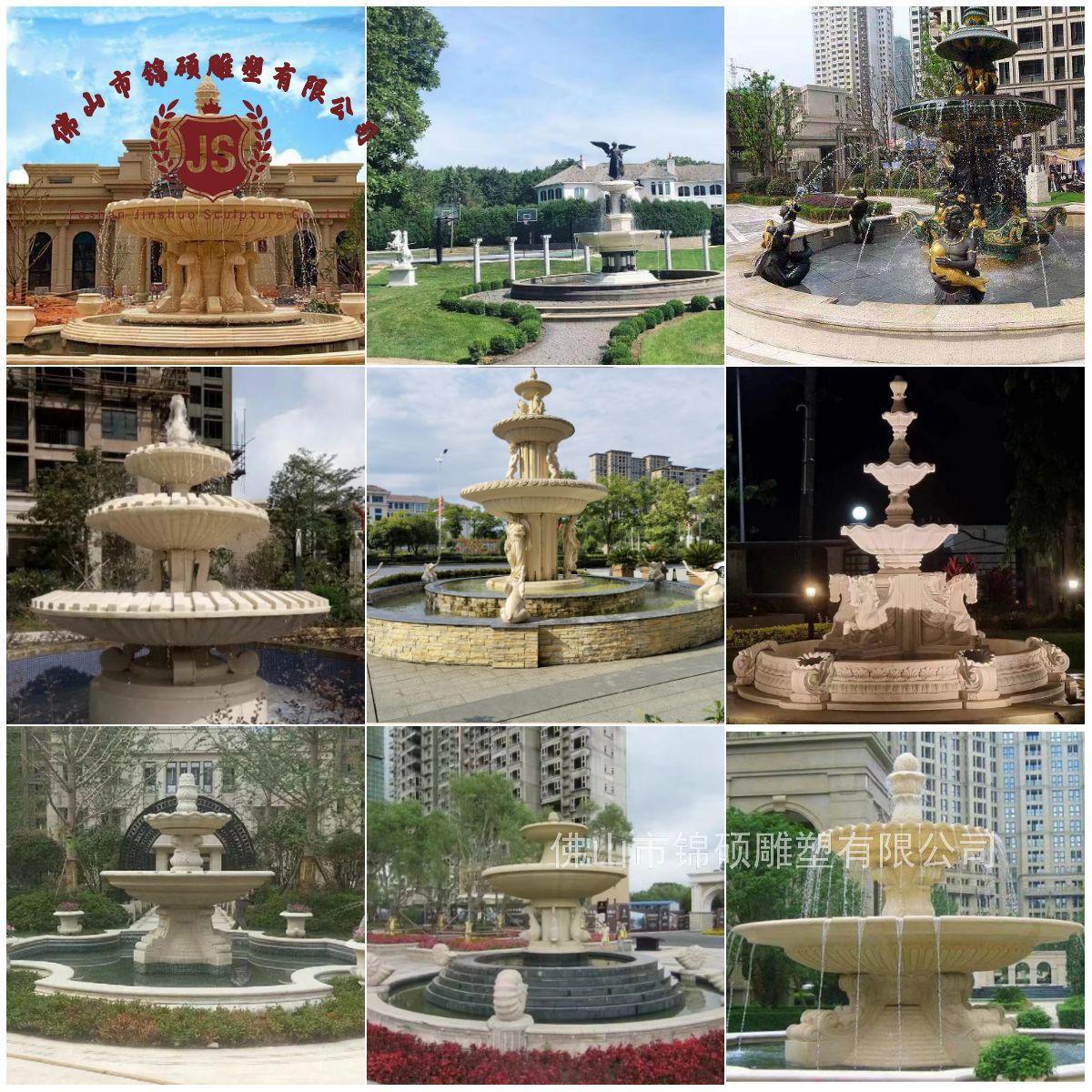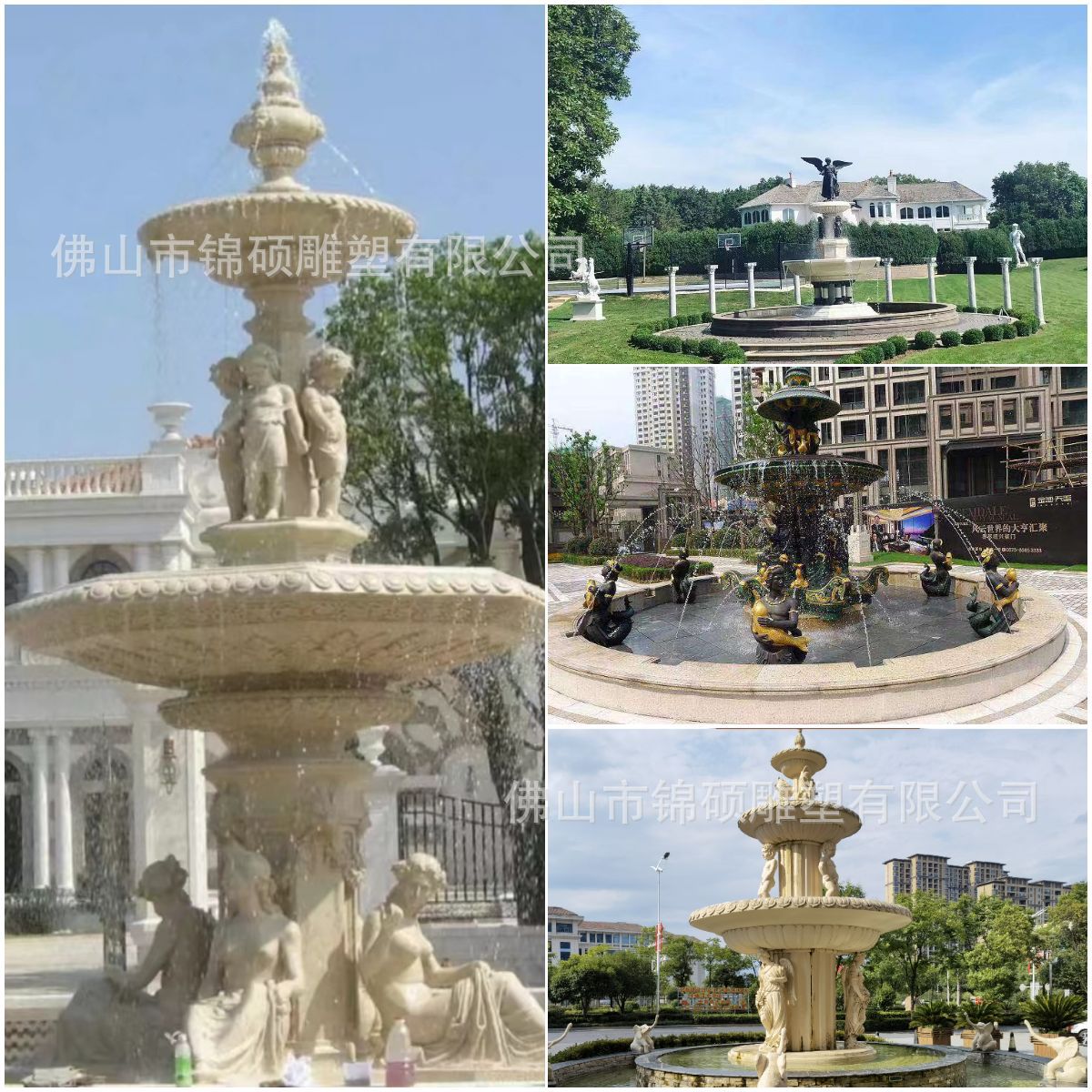 절묘한 사암 조각 분수 실내 창조적 인 유럽 물 풍경 장식 조명 풍경 장식 분수