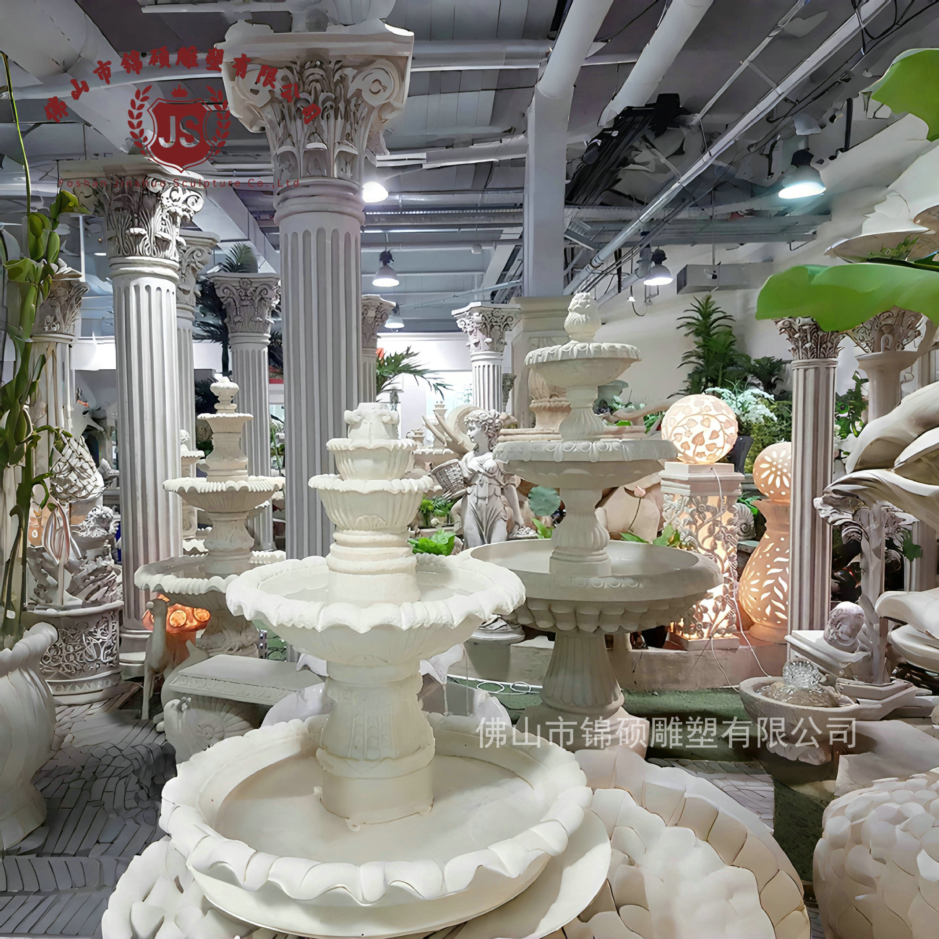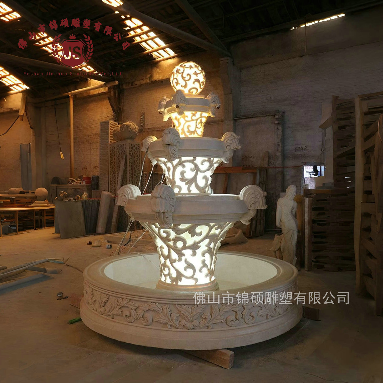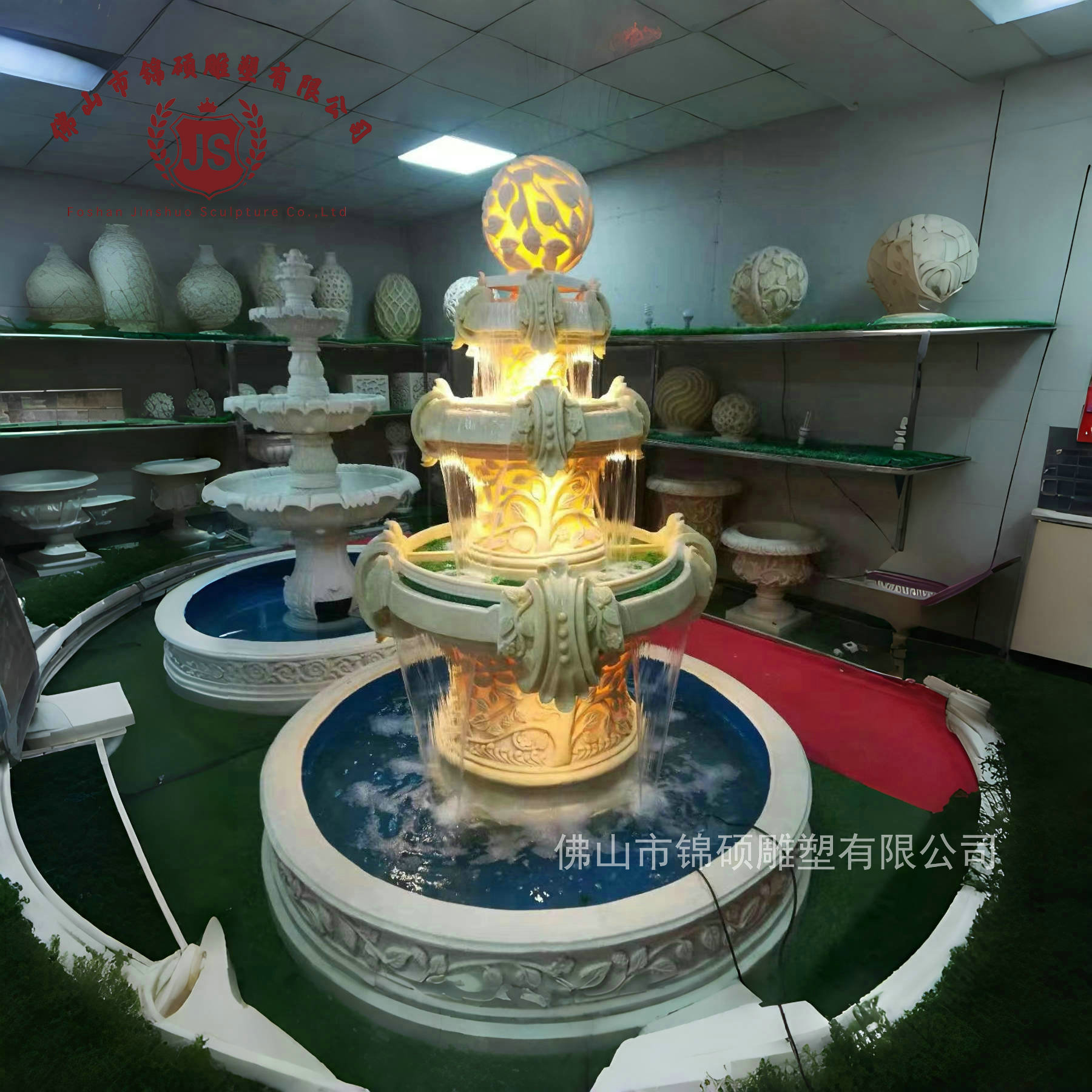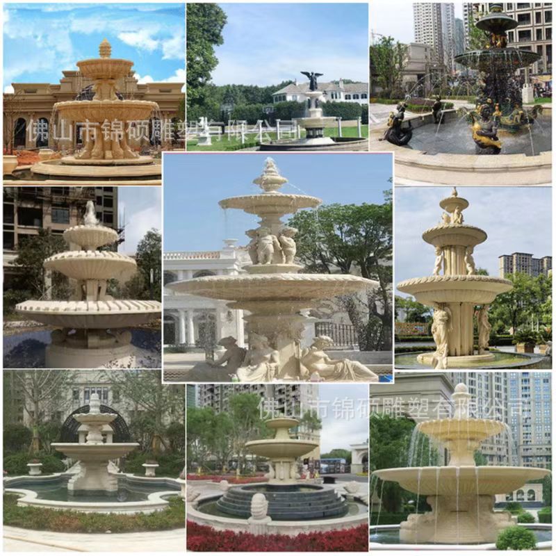 절묘한 사암 조각 분수 실내 창조적 인 유럽 물 풍경 장식 조명 풍경 장식 분수스토어 가기
