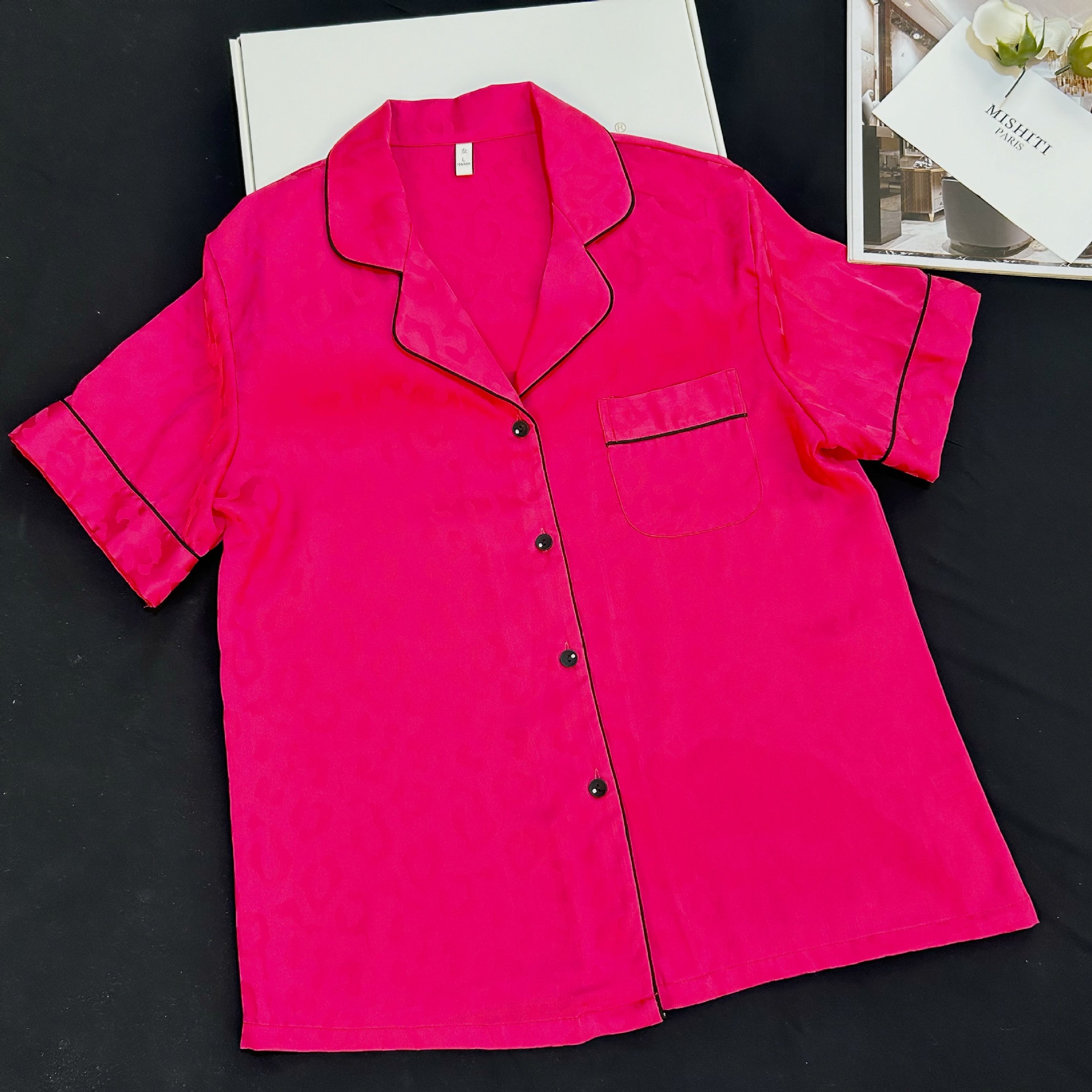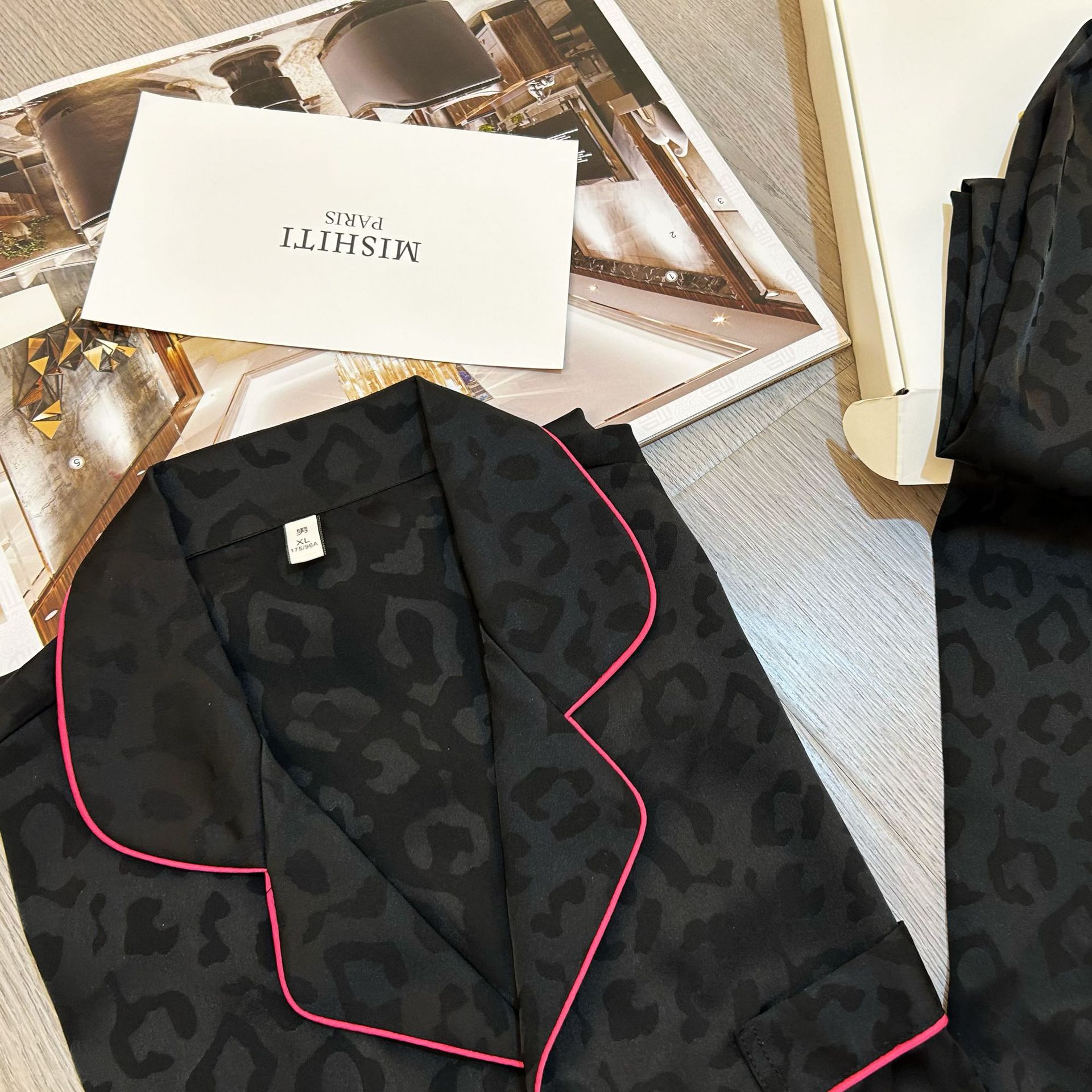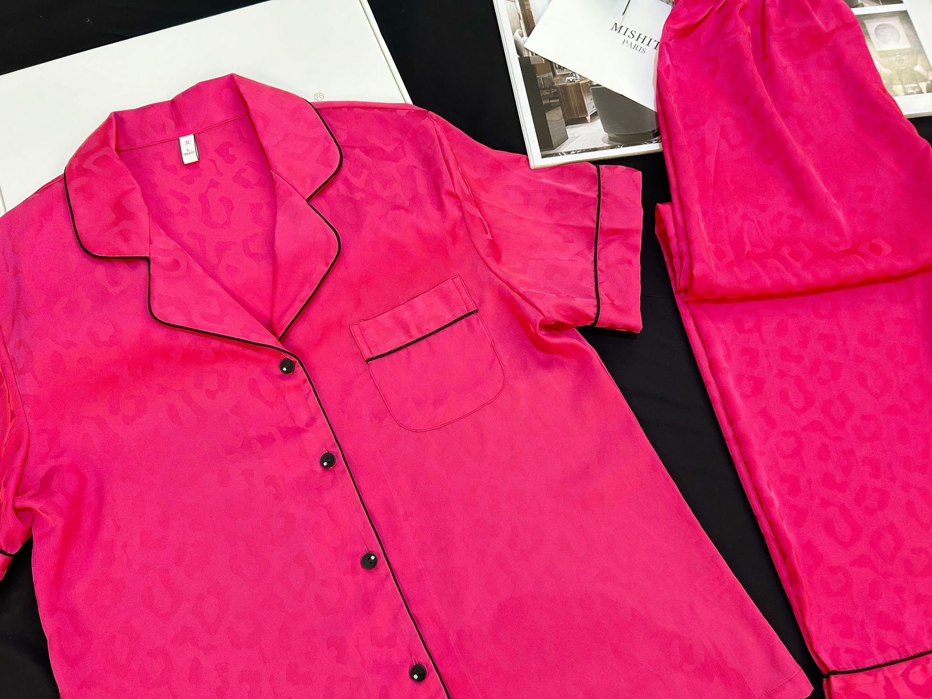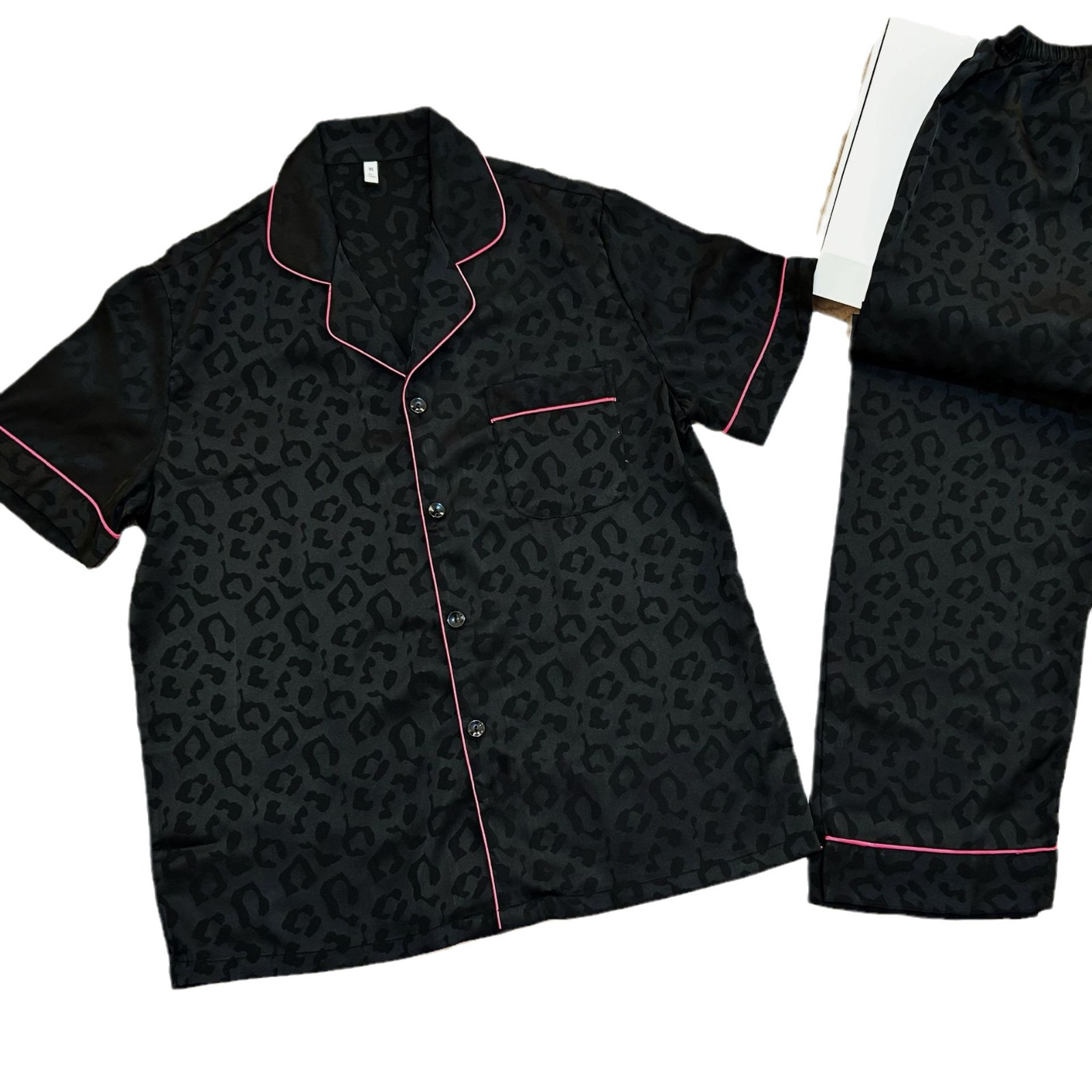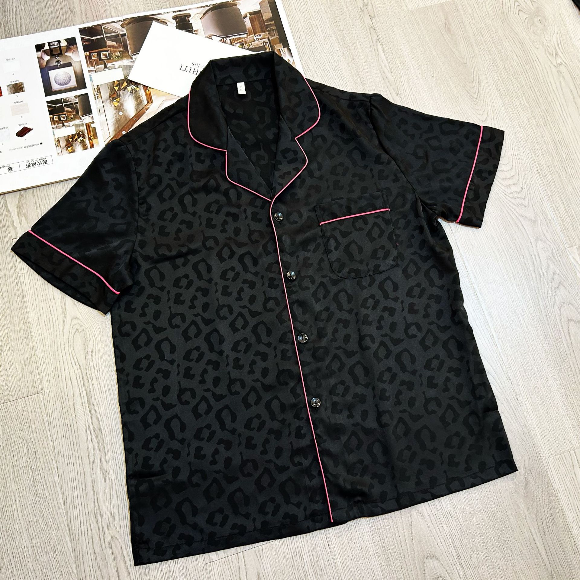 대외 무역 도매 레오파드 무늬 자카드 남성과 여성의 얼음과 눈 실크 파자마 짧은 소매 바지가 작은 빨간 책 국경 간 집 옷을 떨립니다.스토어 가기