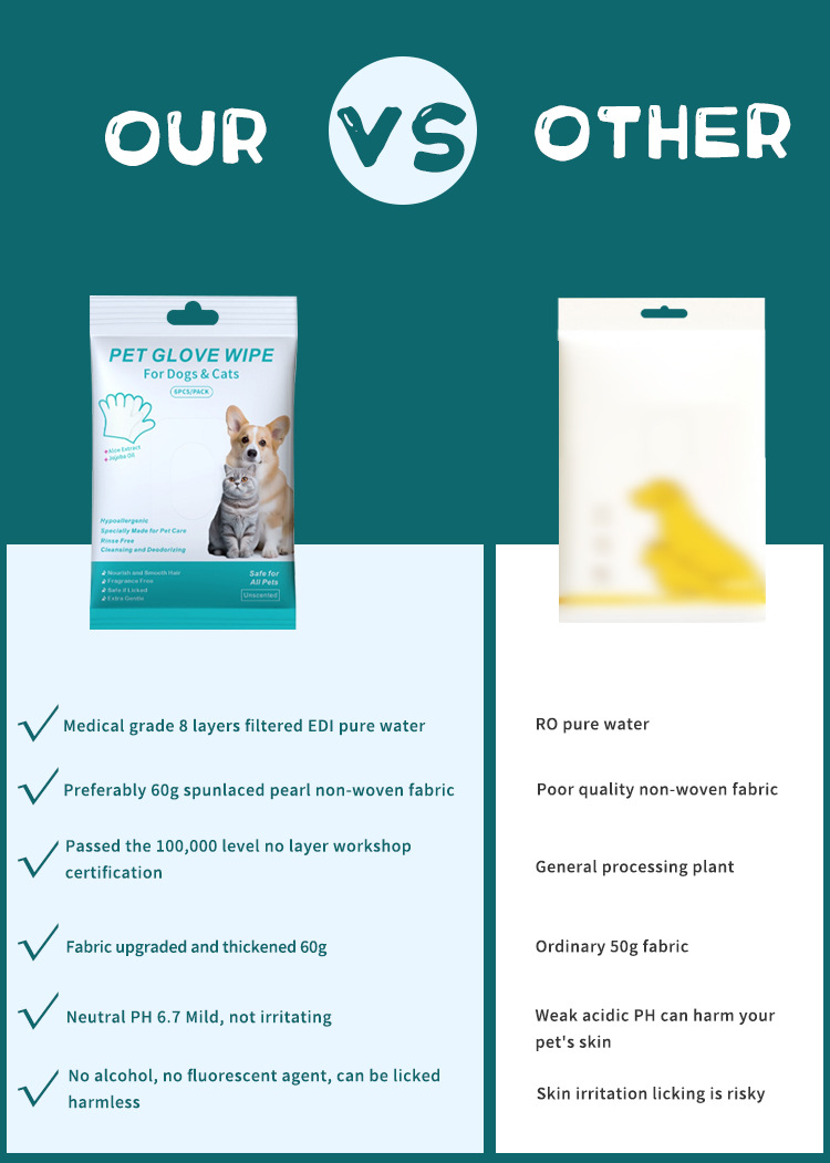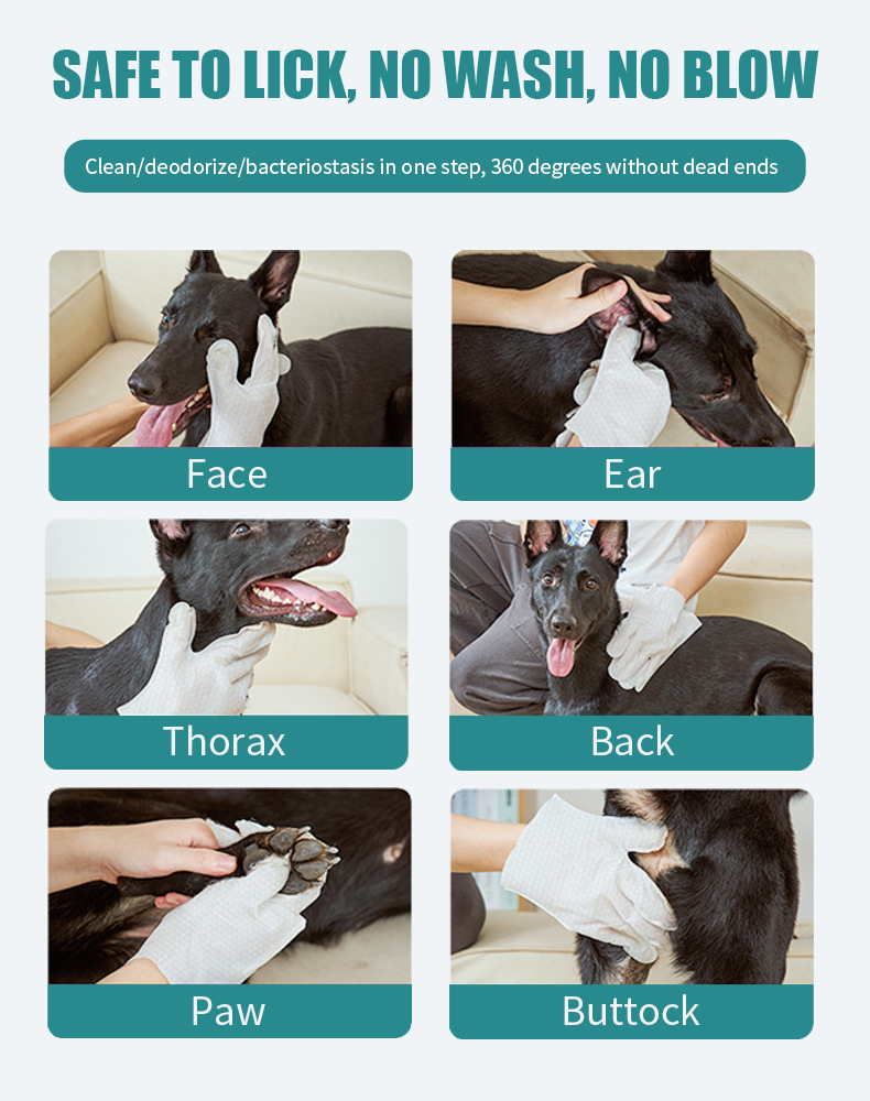애완 동물 일회용 스펀레이스 부직포 진주 패턴 청소 및 뷰티 도그를 위한 아마존 국경 세척 없는 장갑